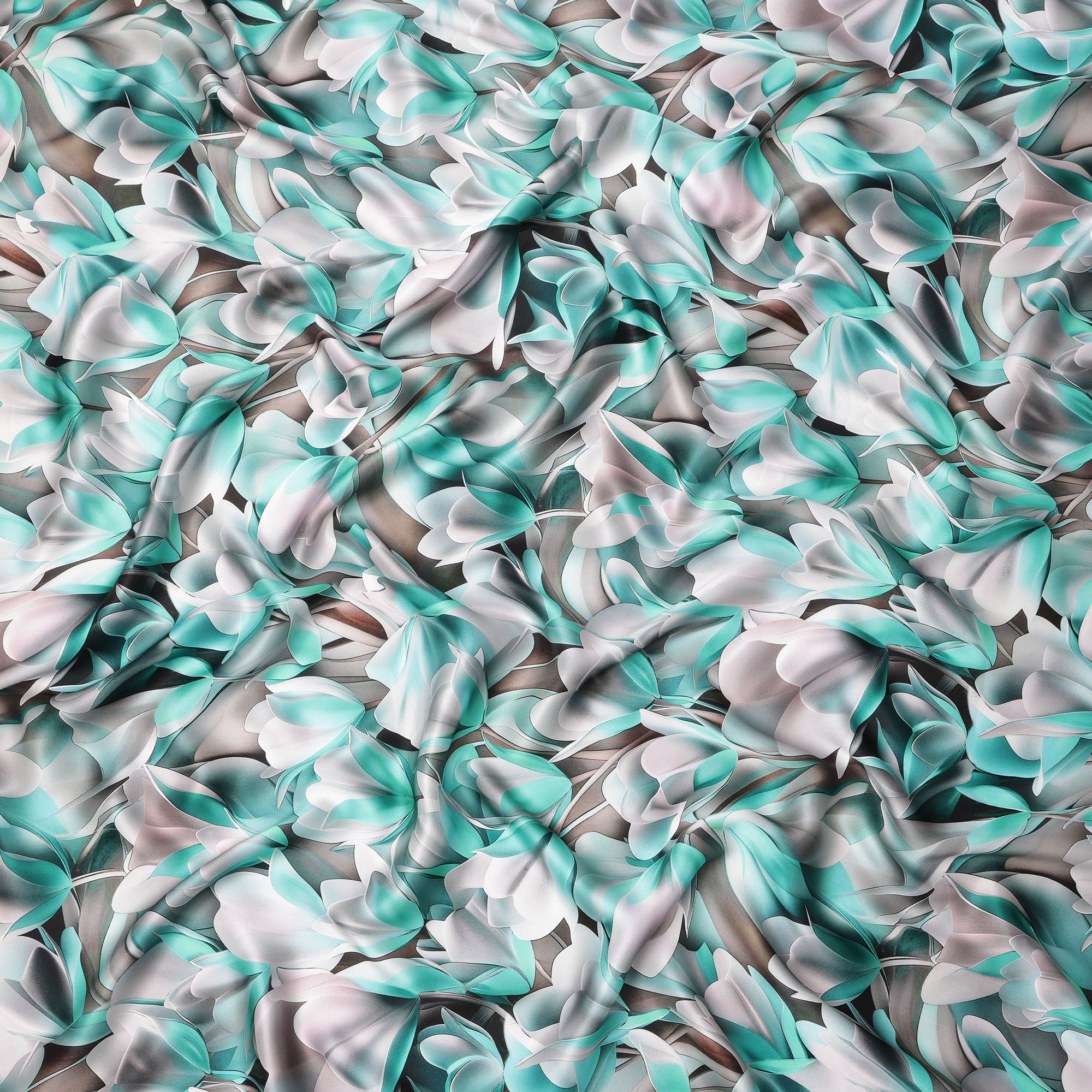 طباعة زهور تجريدية باللونين الأزرق والأبيض على قماش ساتان حريري إيطالي فاخر، عرض 140 سم، إيطاليا - D24777