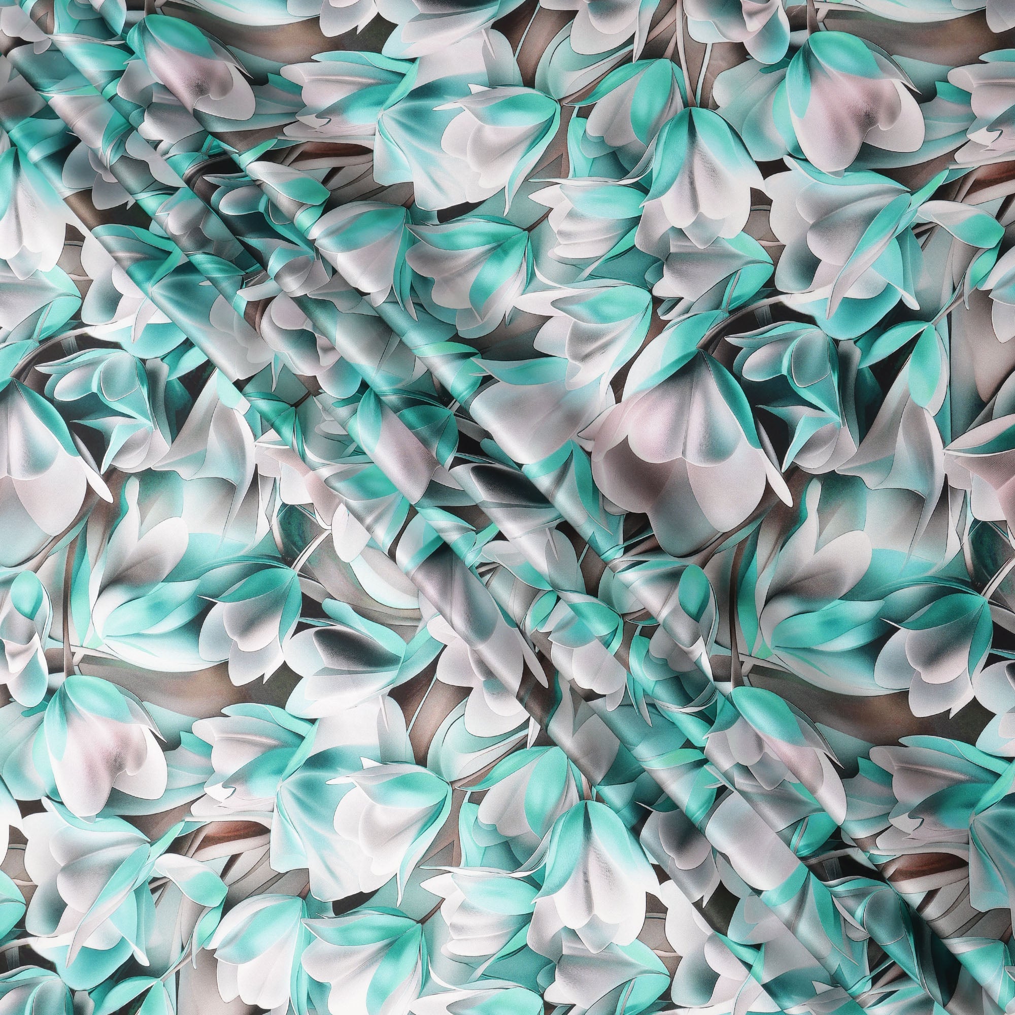 قماش ساتان حريري إيطالي فاخر مع طباعة زهور تجريدية باللونين الأزرق والأبيض