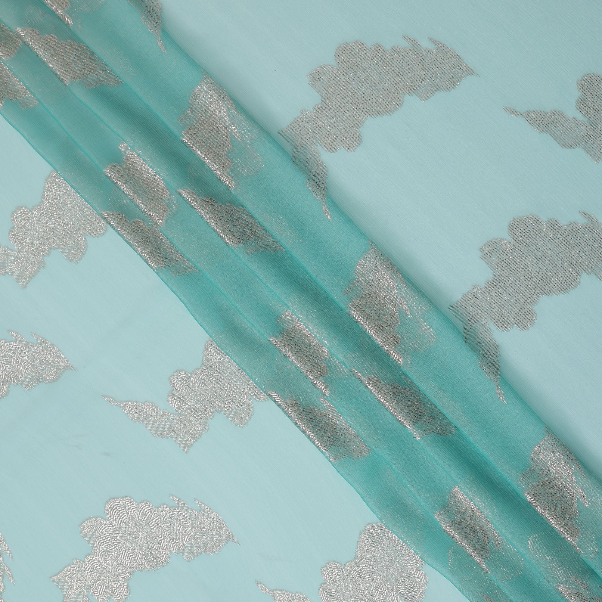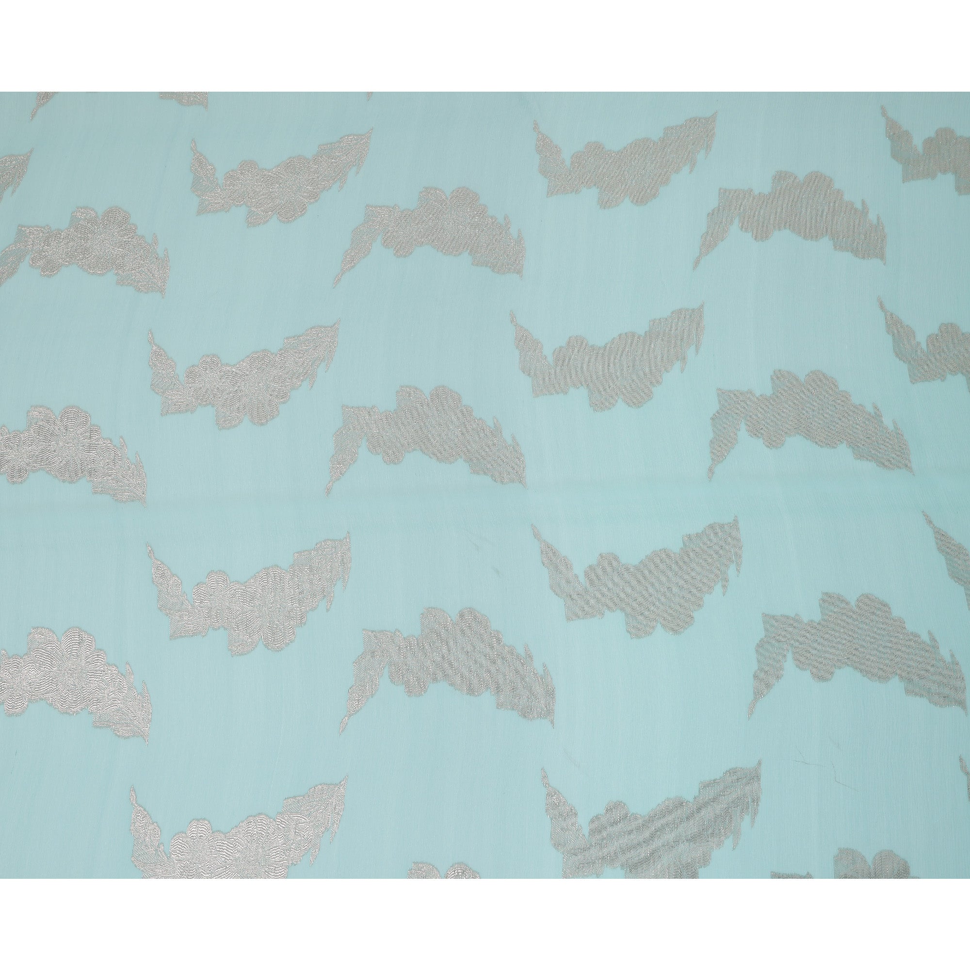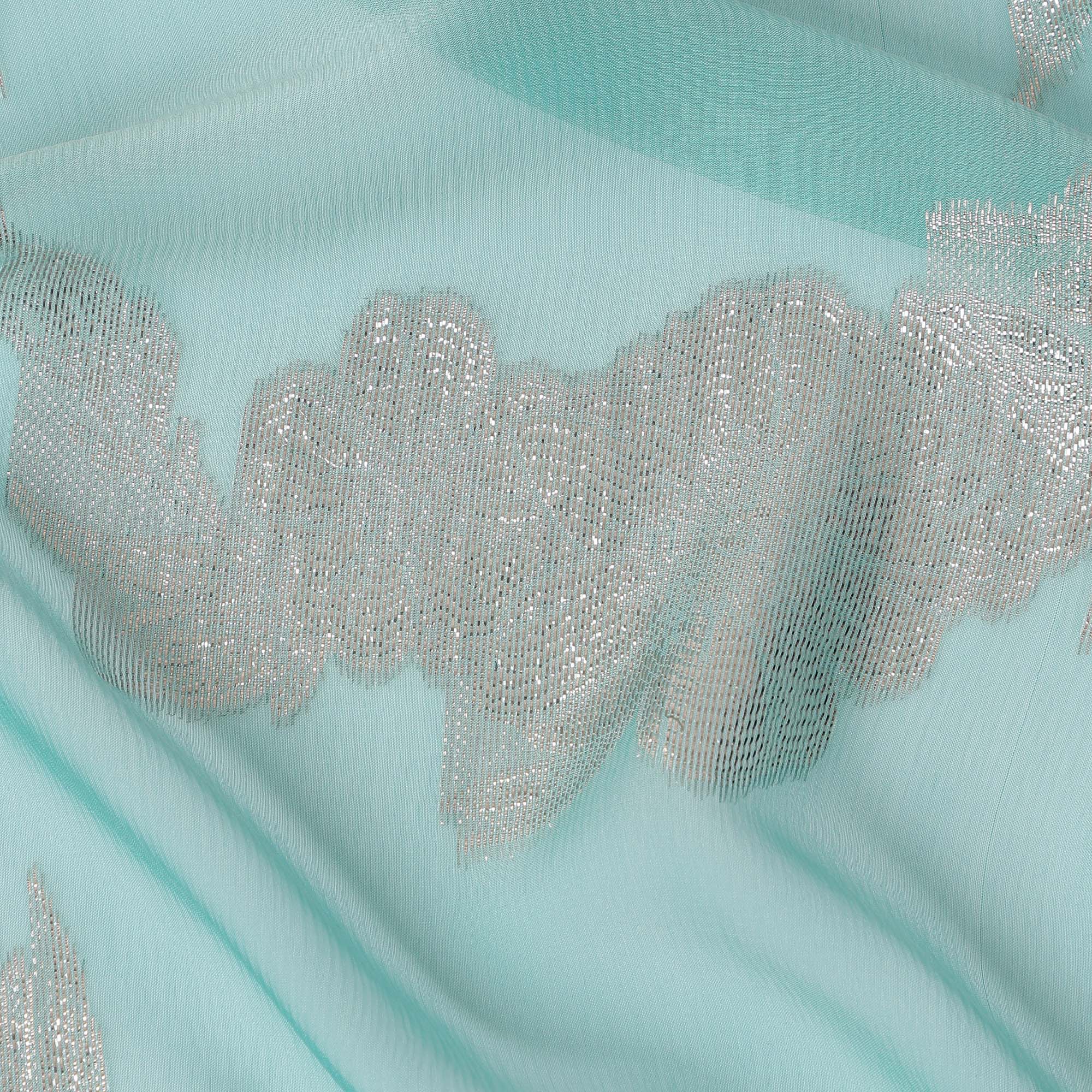 • Aqua Blue Abstract Metallic Lurex Design Premium French Silk Chiffon Fabric, 110 Cms Width, Made in France-D25741