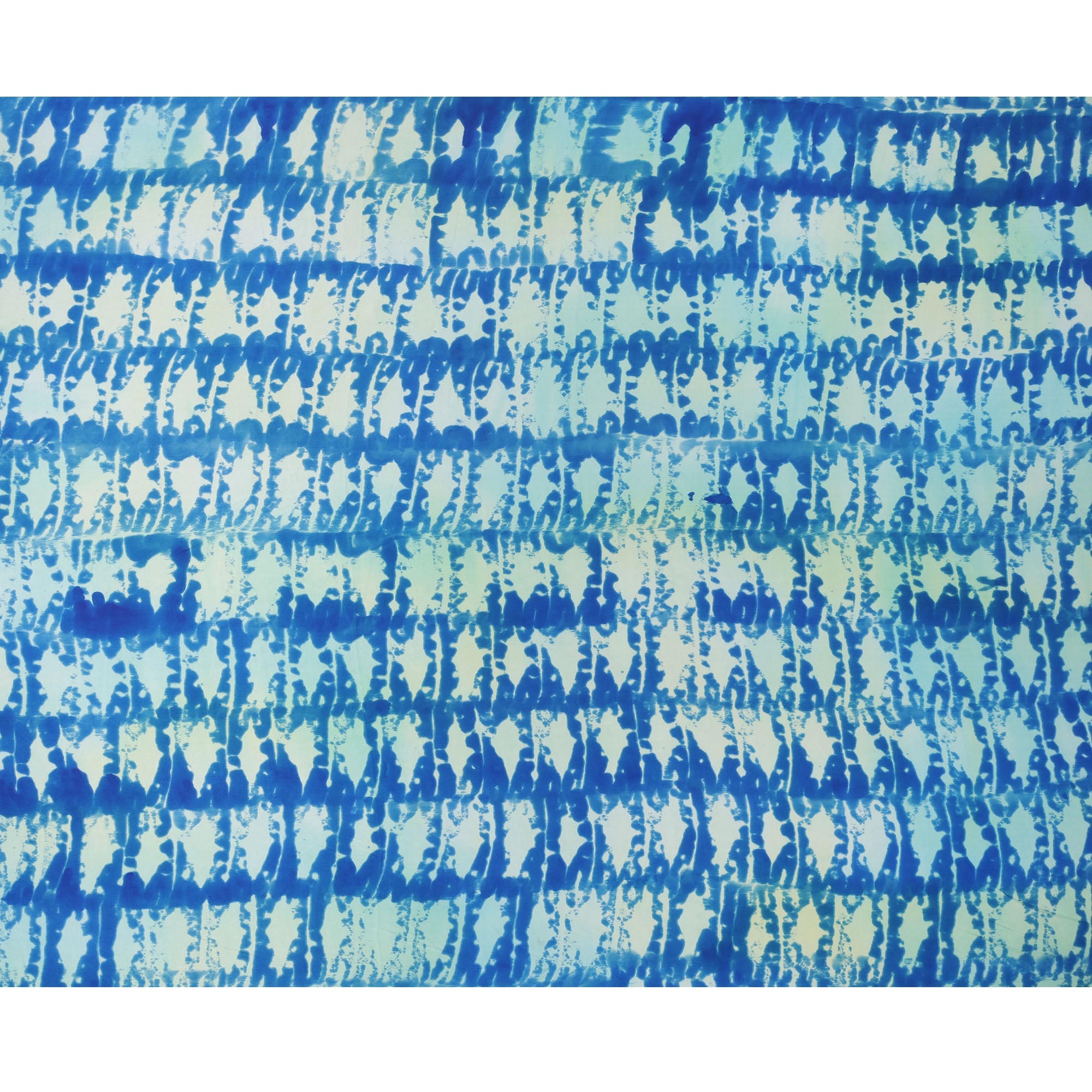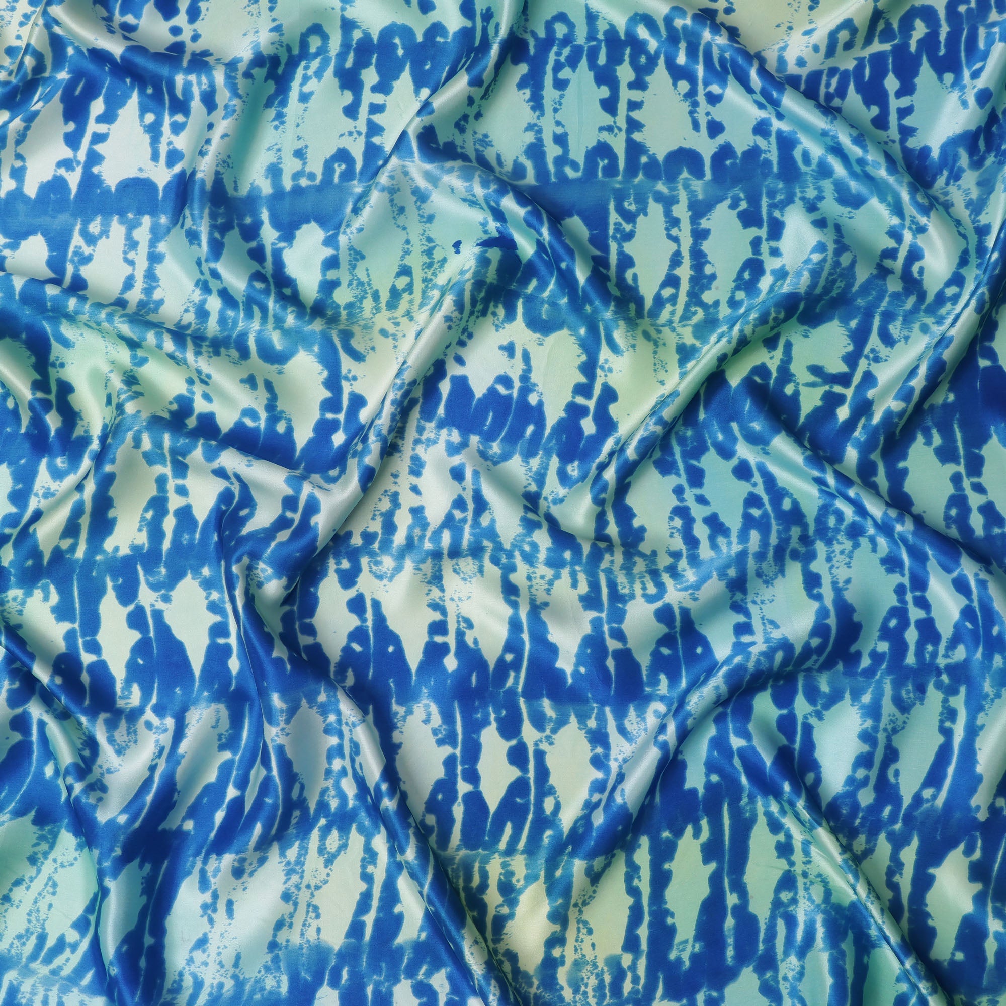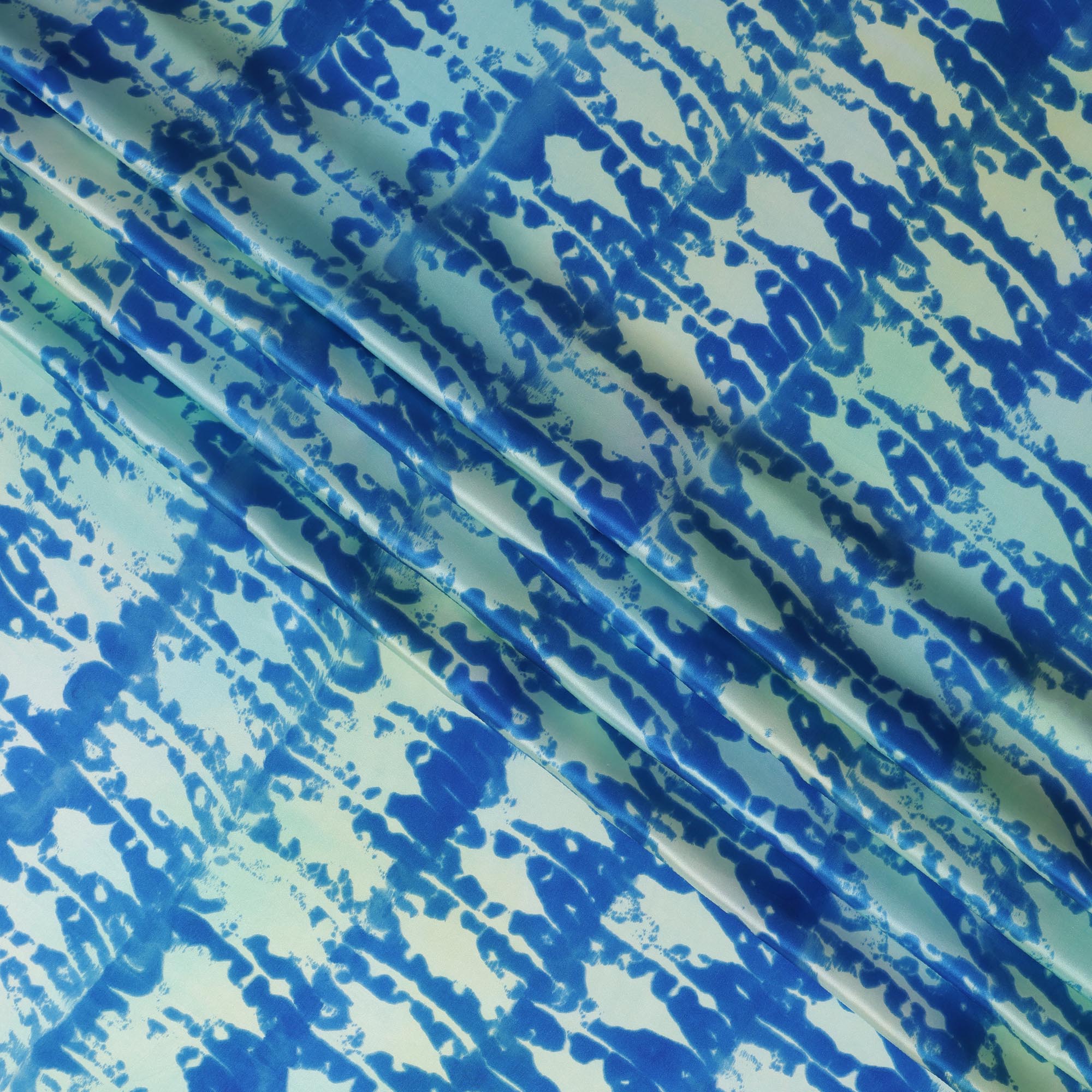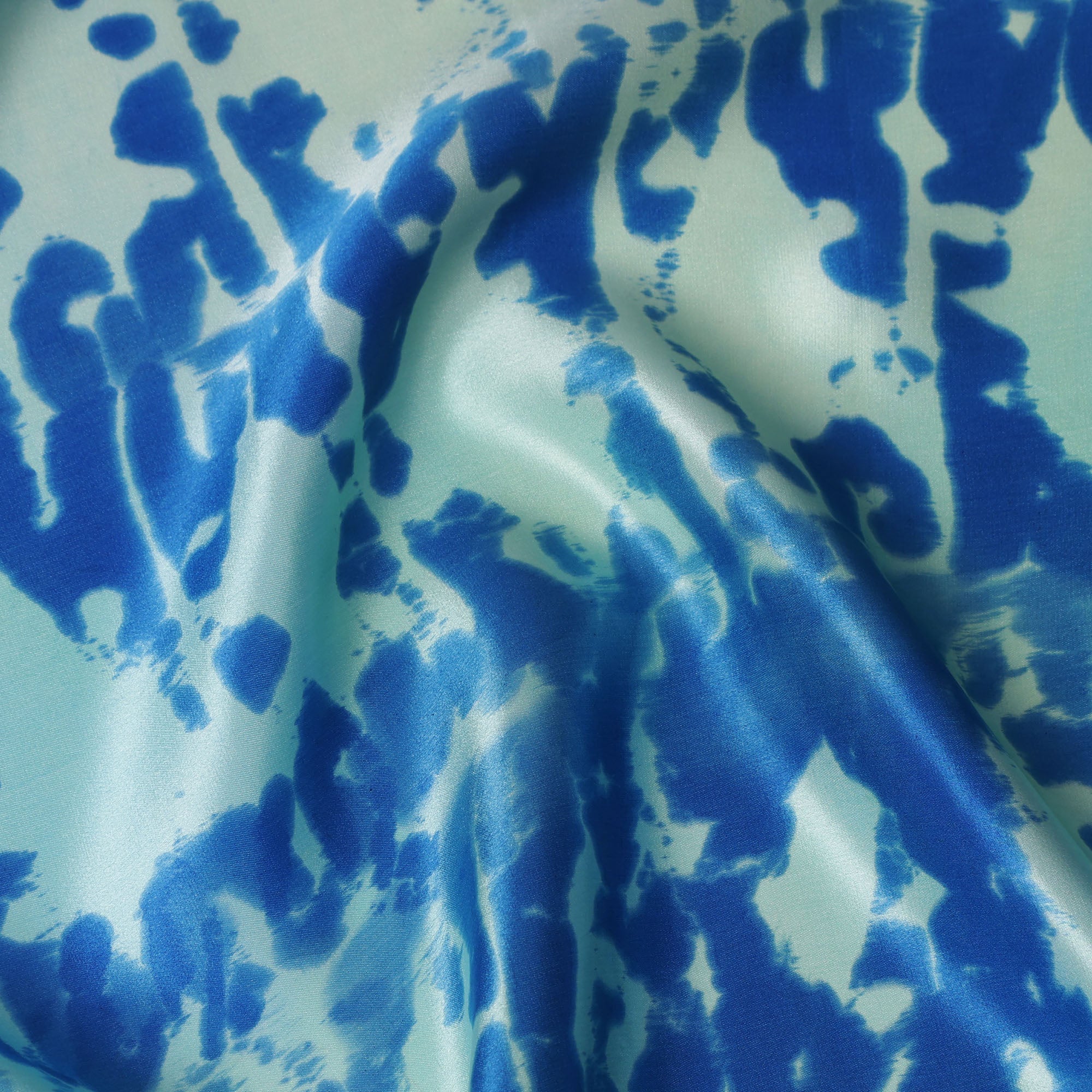طباعة صبغية باللون الأزرق المائي والنيلي على ساتان حريري فاخر