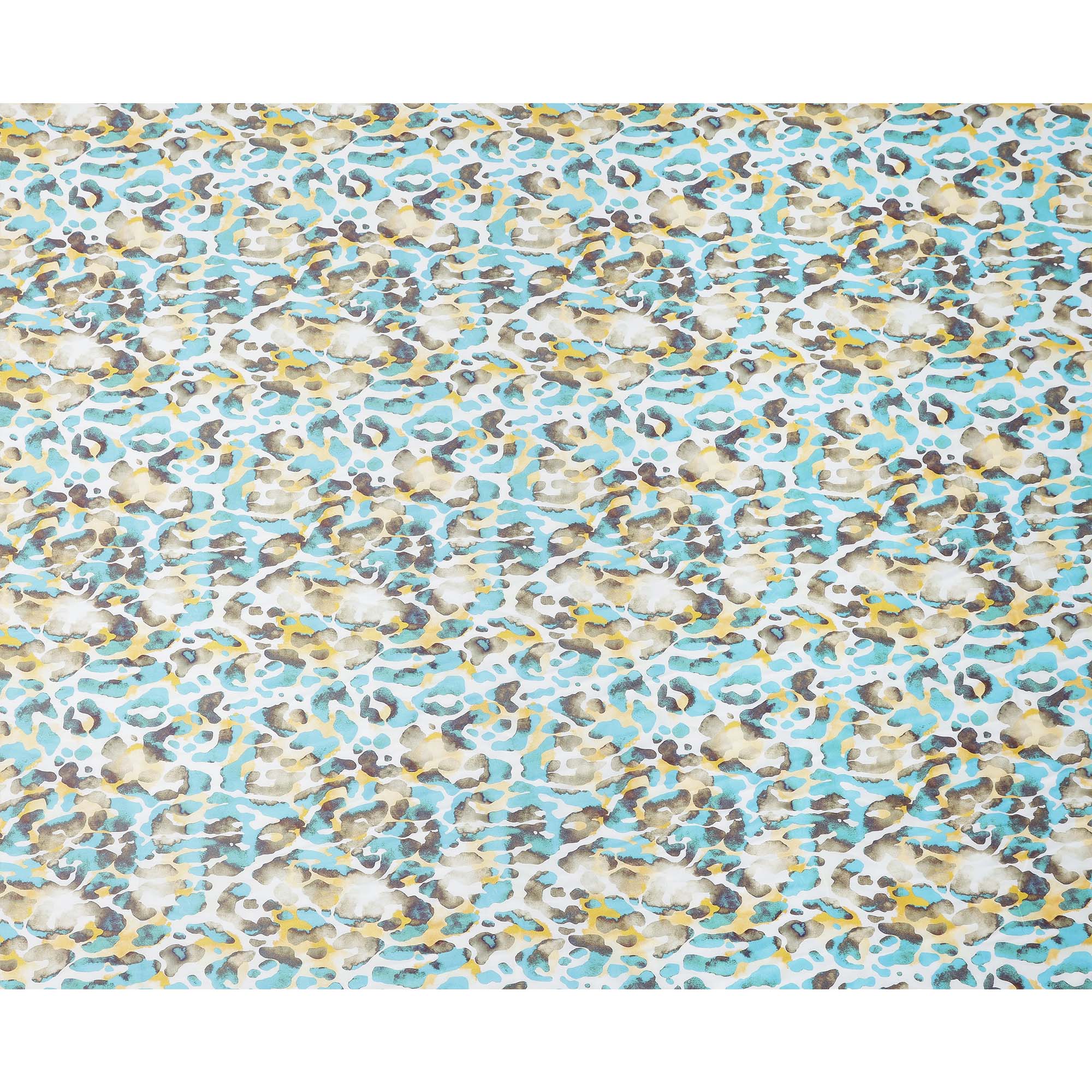 Aqua Blue and Yellow Abstract Animal Print Pure Cotton Satin Fabric, 140 Cms Width, Made in India-D26026