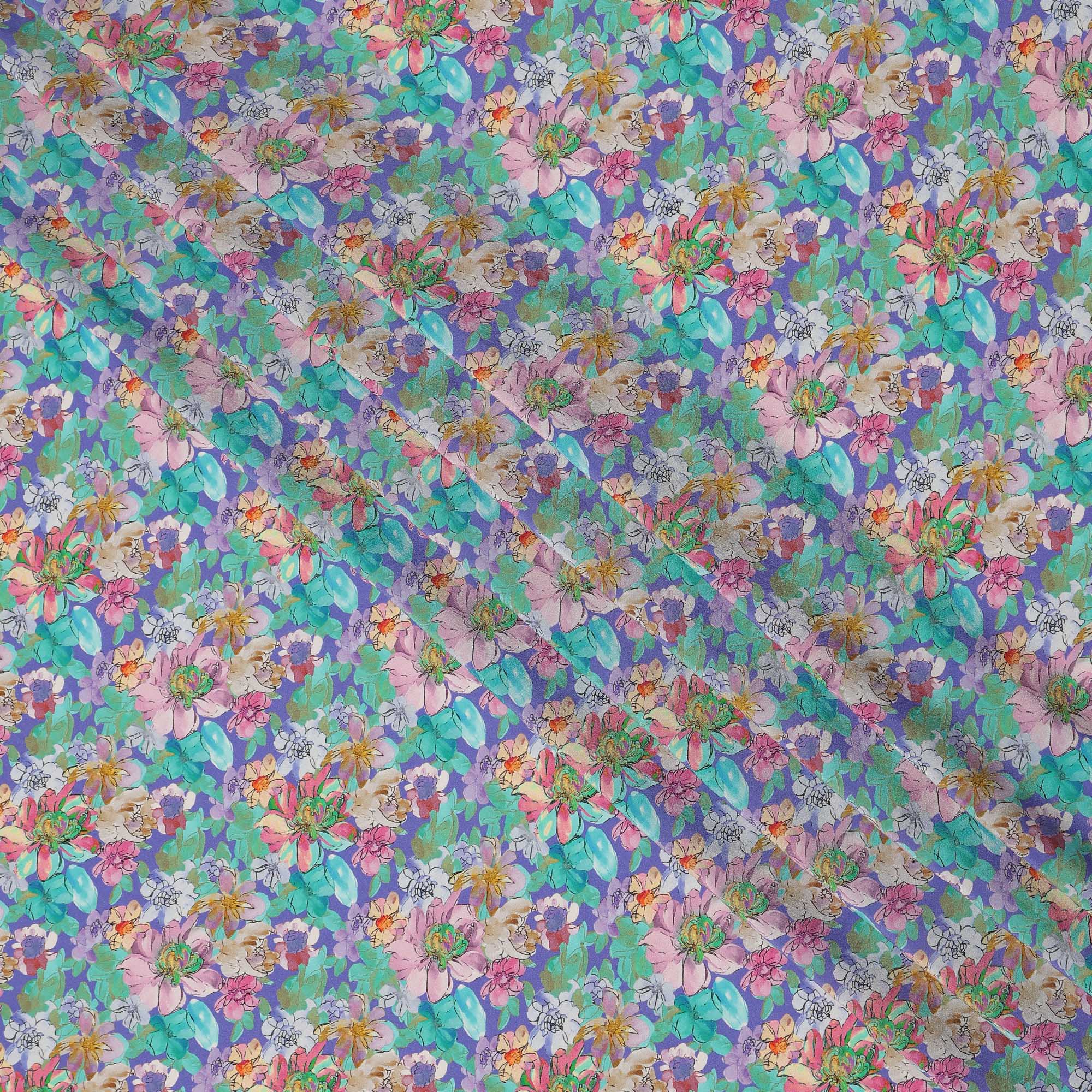 This premium silk crepe fabric showcases a refreshing aqua green base beautifully layered with dense multicolor floral prints in soft pinks, lilac, ivory, yellow, and hints of blue, creating a lively yet graceful color harmony. The allover floral design feels artistic and contemporary while retaining a timeless elegance that suits both ethnic and modern silhouettes. Crafted from high-quality silk crepe, the fabric is lightweight, breathable, and fluid, offering a smooth texture with an elegant natural drape. Its soft fall makes it ideal for sarees, dresses, skirts, blouses, and designer fusion wear, ensuring comfort without compromising on style. The rich color depth and fine print clarity reflect refined Indian craftsmanship, making it a versatile choice for everyday elegance or statement creations. Buy online and shop online to experience premium silk crepe fabric that blends vibrant color play with superior fabric quality.