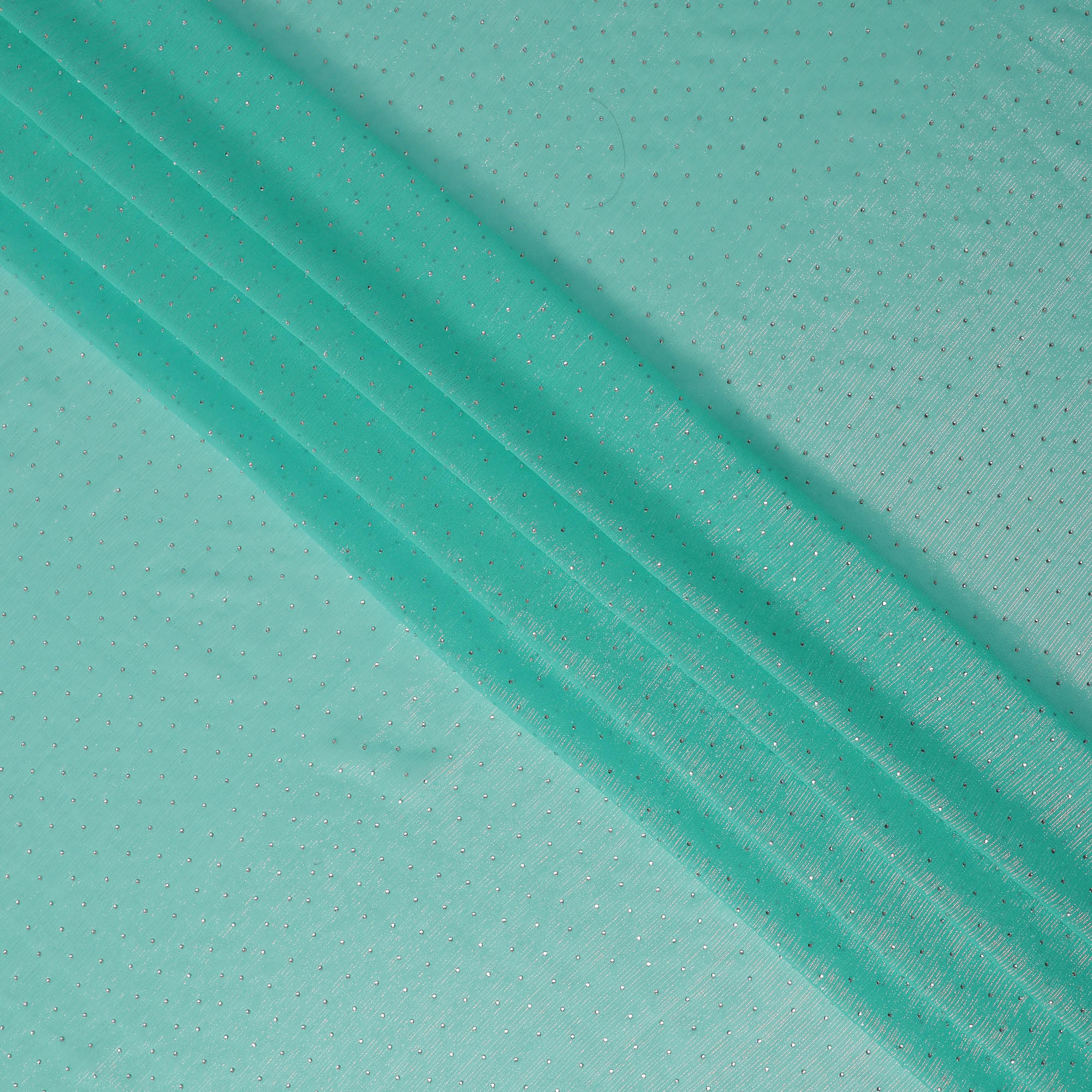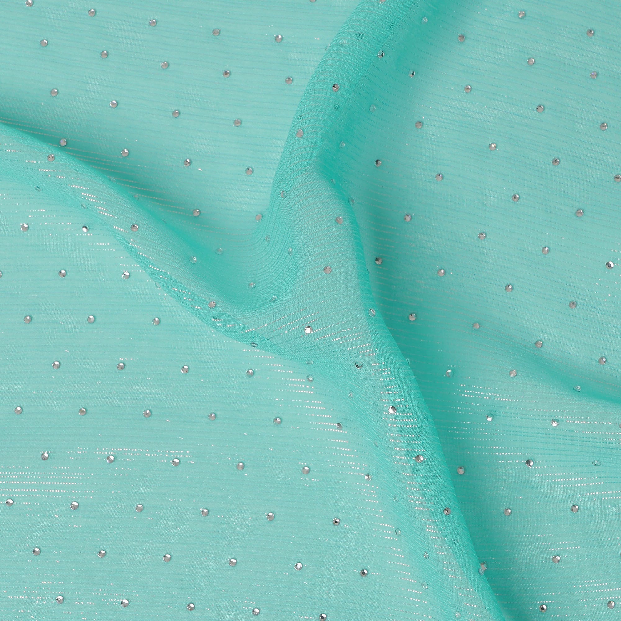 Aqua Green Synthetic Chiffon Traditional Sudanese Thobe with Stone Work, 4.5 Mtrs Piece, Width 110 Cms, Made in India-D26455