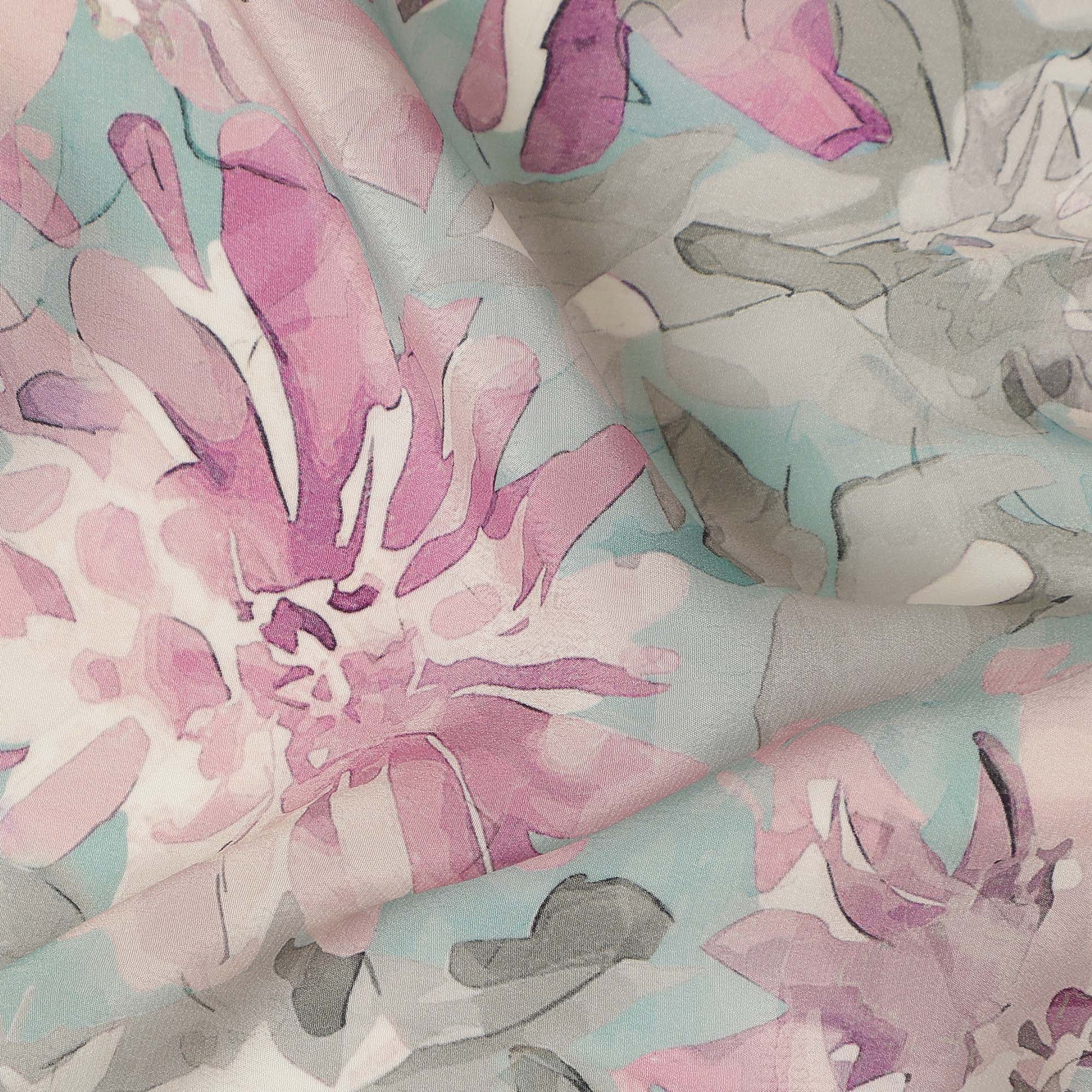 Aqua Pink Floral Abstract Print Viscose Crepe Fabric 110 Cms Width India-D27730
