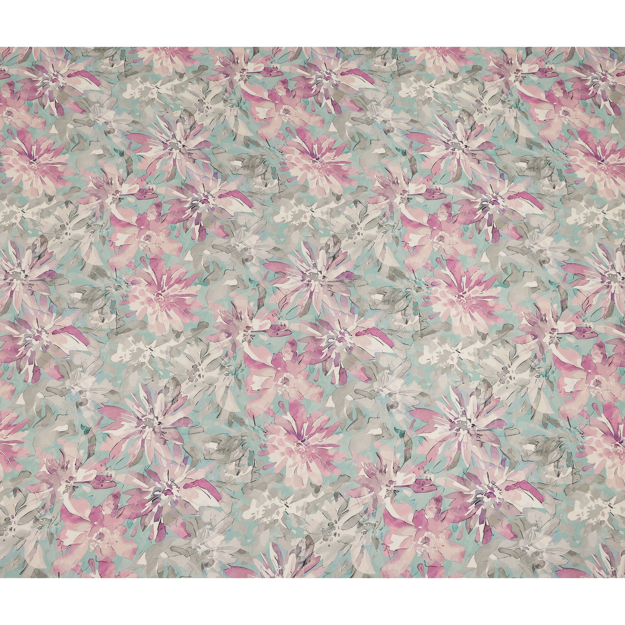 Aqua pink base with elegant abstract floral print for a fresh feminine look.