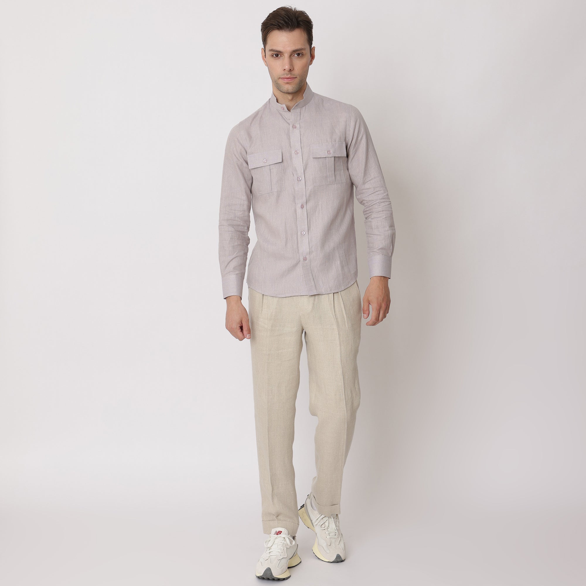 استمتع بحرفية راقية مع قميص الكتان الخالص الفاخر بلون البيج الفاتح، المصمم لعشاق الفخامة والراحة. مصنوع في الإمارات العربية المتحدة من الكتان الخالص 100%، يتميز هذا القميص بتهوية ممتازة وشعور خفيف، مما يجعله مثاليًا للأجواء الدافئة والارتداء على مدار العام. يضفي لون البيج الفاتح الراقي لمسة من الأناقة البسيطة، مثالية للمناسبات الكاجوال وشبه الرسمية. يتميز هذا القميص بياقة ماندرين، وجيوب صدر عملية، وأزرار فاخرة، ويجمع بين الأصالة والعصرية. مصمم بدقة عالية وتشطيب مثالي، ليضمن لك أناقة لا مثيل لها مع كل ارتداء، مما يجعله إضافة لا غنى عنها لأي خزانة ملابس.