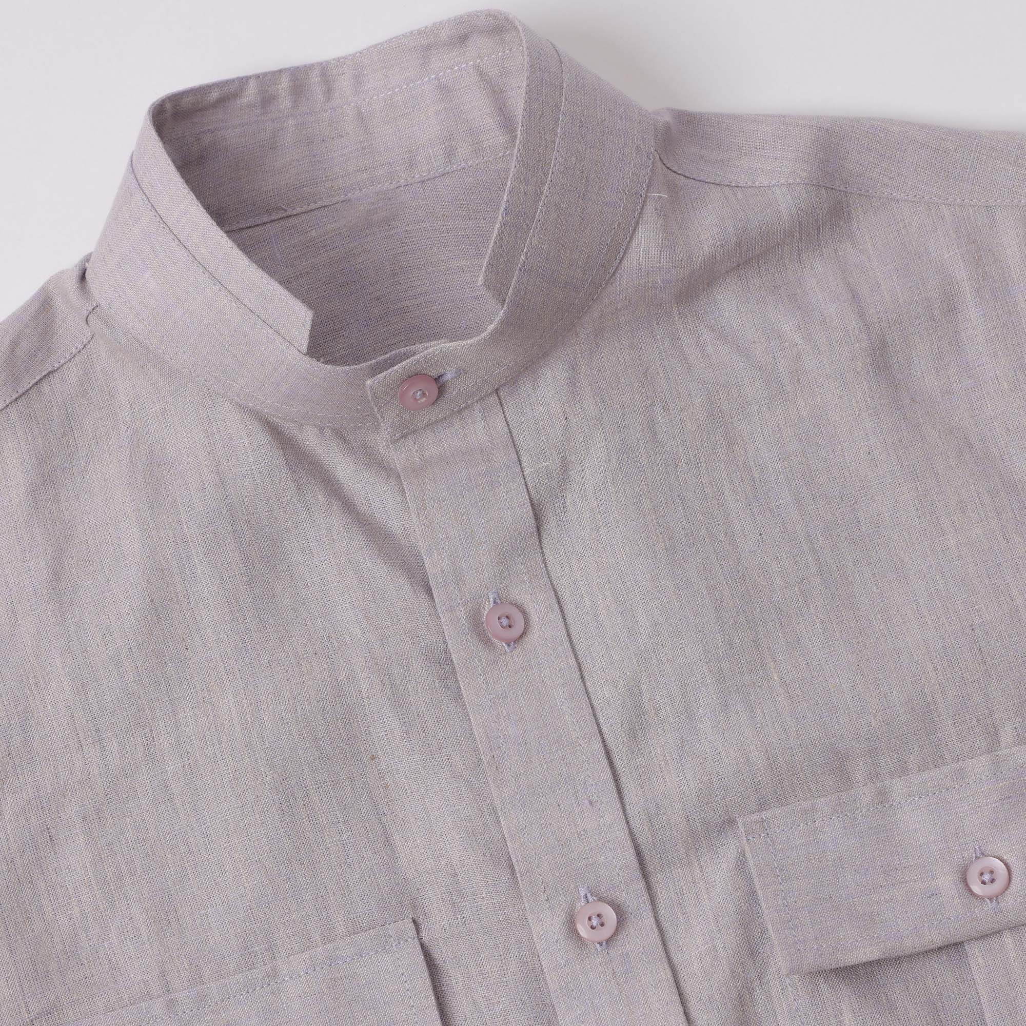 قميص من الكتان النقي الفاخر بلون أرجواني فاتح، بياقة صينية، صنع في الإمارات العربية المتحدة - D22009