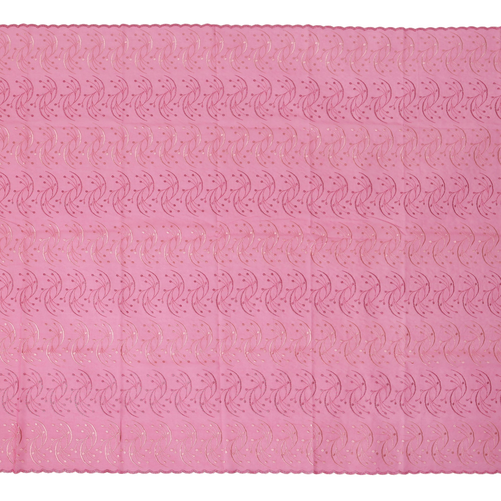 This Baby Pink Traditional Sudanese Thobe fabric is crafted from premium pure cotton voile, offering a soft, airy, and breathable texture that makes it ideal for warm climates and elegant cultural wear. The charming baby pink base is beautifully enhanced with delicate rose pink and gold embroidery arranged in swirling vine patterns with dotted detailing, giving the fabric a graceful flow and an artisanal touch that reflects fine Indian craftsmanship. With its generous 4.5-meter length and 140 cm width, this material provides ample fabric to create a flowing, full-length Sudanese thobe that drapes effortlessly and adds a touch of feminine sophistication. The pure cotton voile ensures exceptional comfort, smoothness against the skin, and long-lasting durability, while the color-retentive embroidery maintains its brightness and elegance over time. Perfect for festive gatherings, cultural celebrations, and refined everyday styling, this embroidered thobe fabric effortlessly blends tradition with contemporary charm. Ideal for customers looking to buy online or shop online for premium ethnic fabric, it promises versatility, premium quality, and timeless beauty suitable for any occasion.