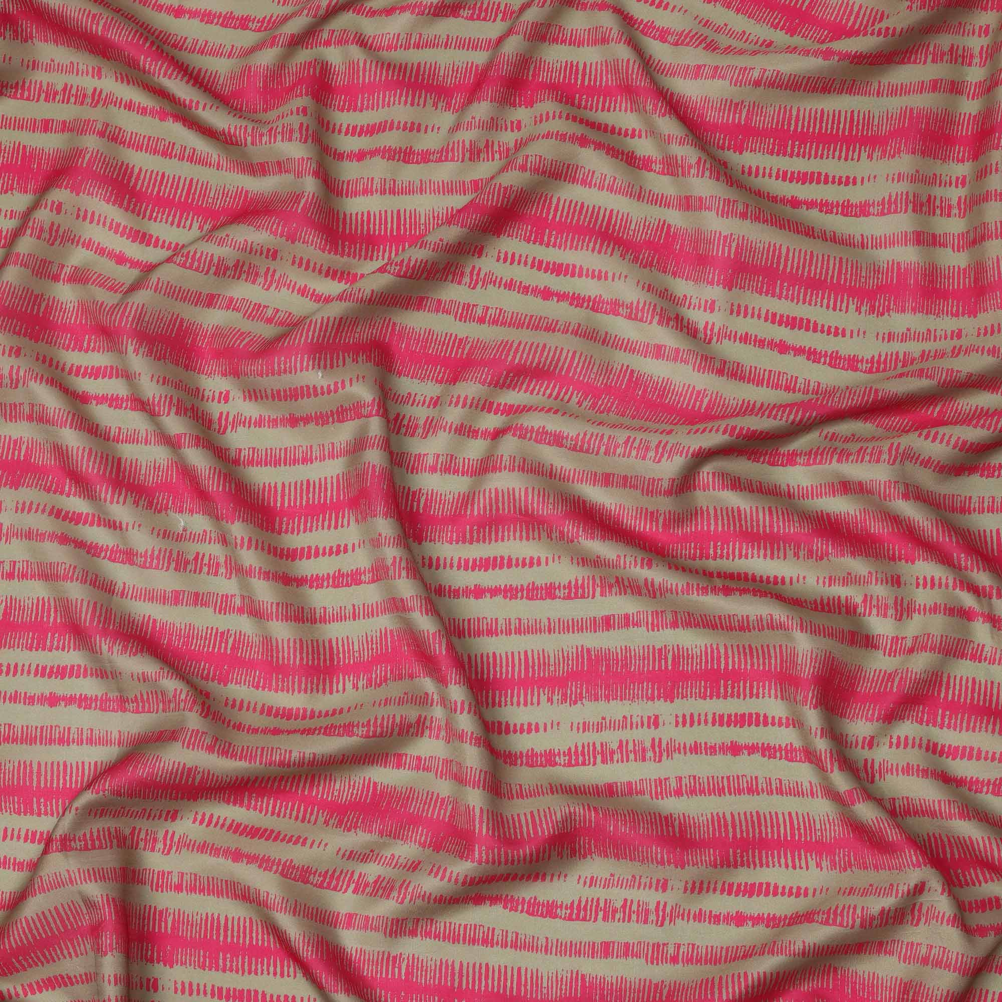 قماش كريب فيسكوز بطبعة خطوط تجريدية باللونين البيج والوردي، عرض 110 سم، صنع في الهند - D23592