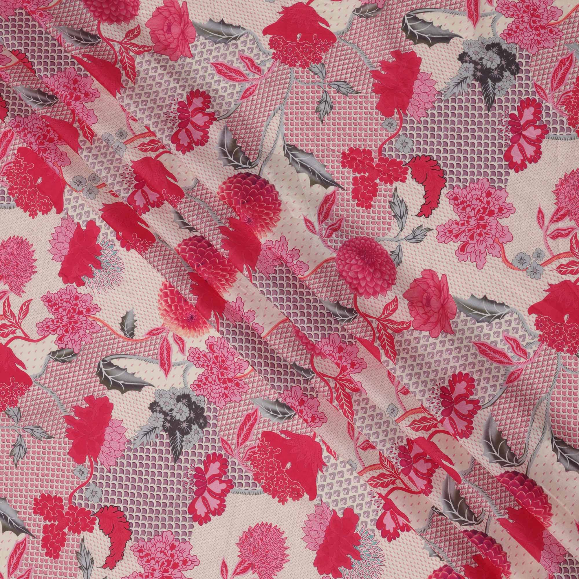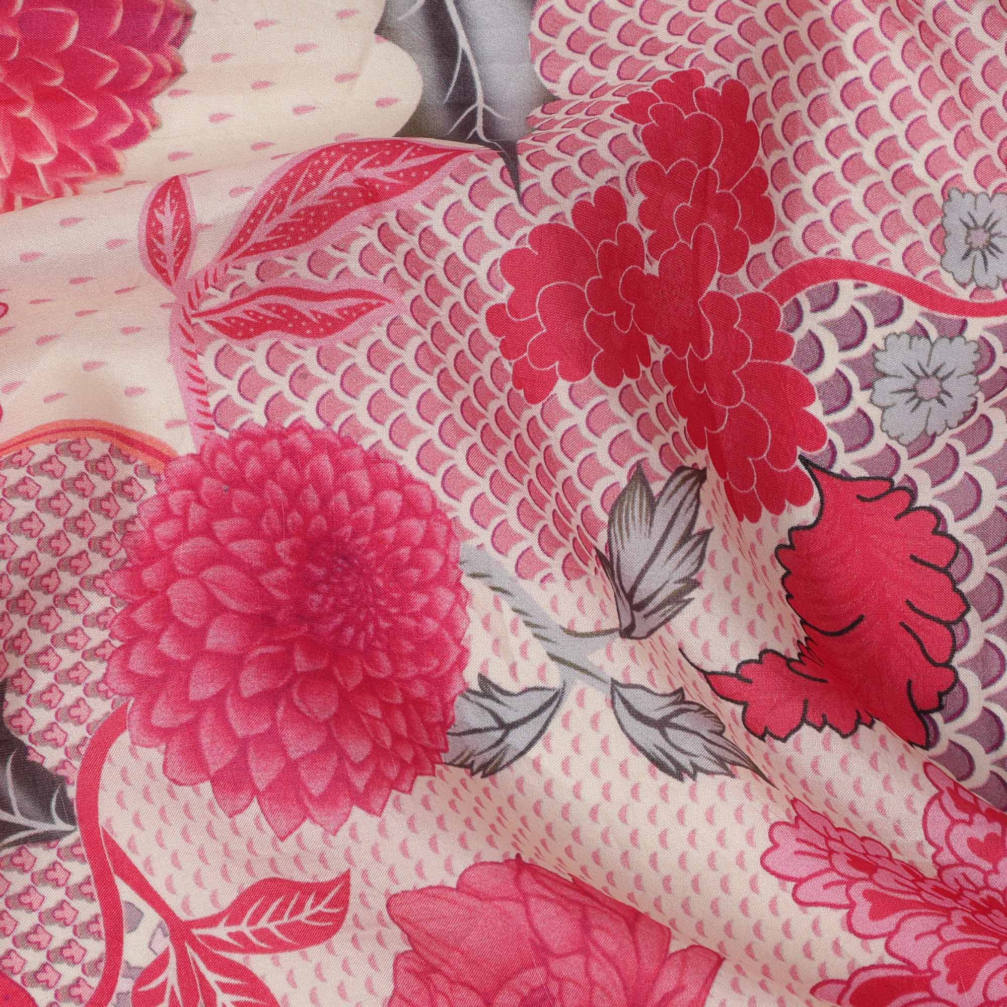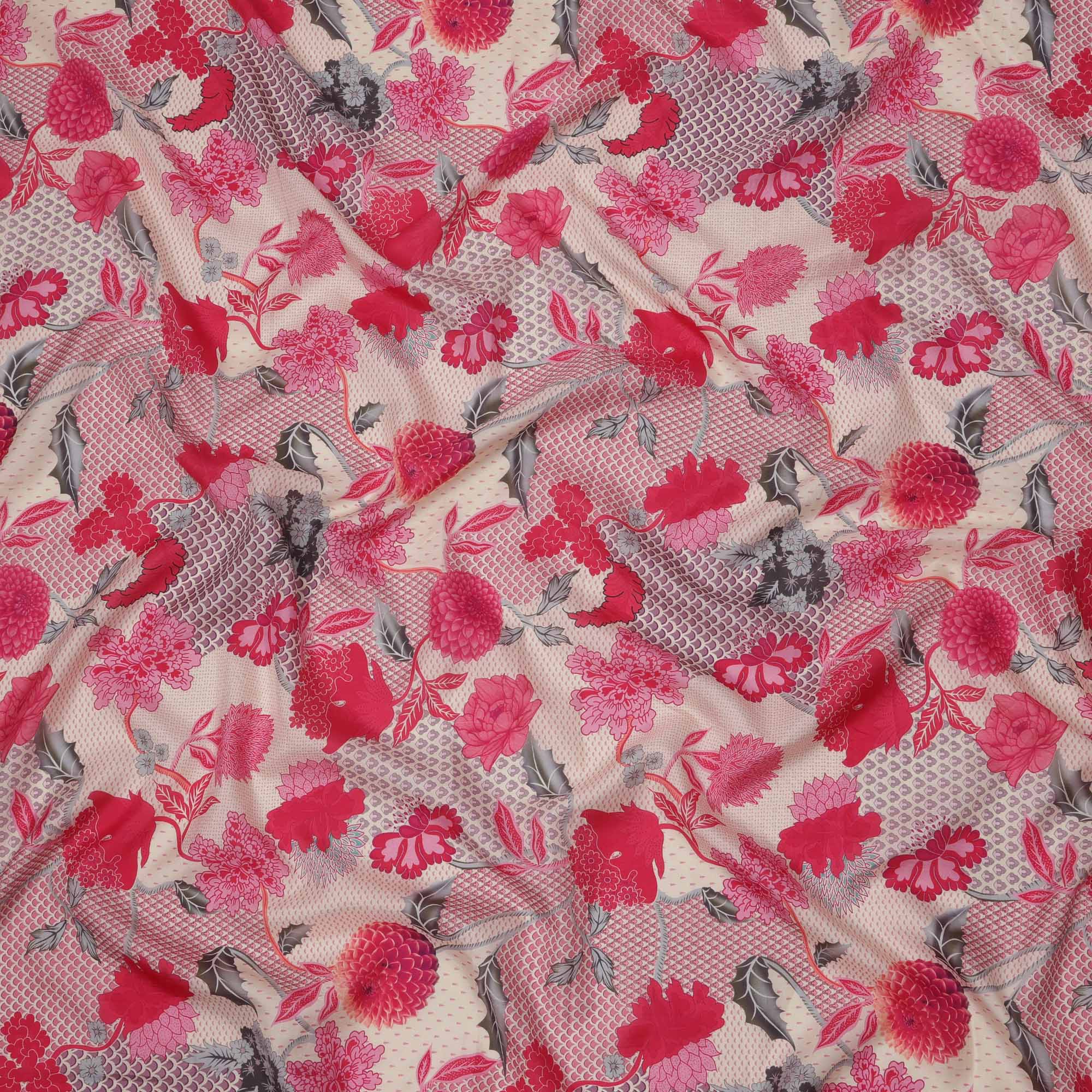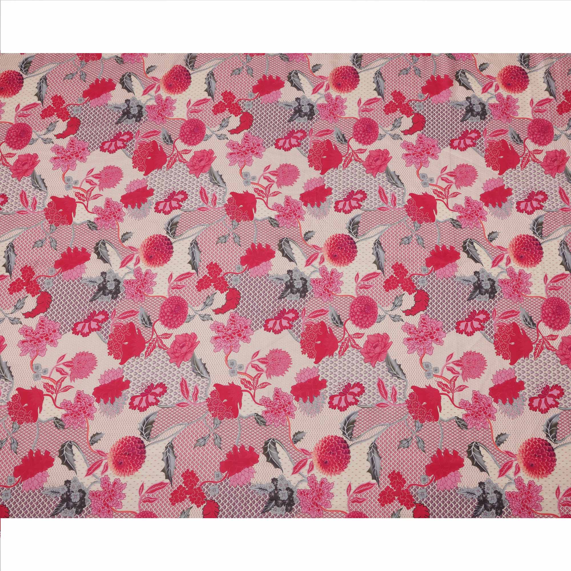 قماش كريب فيسكوز بطبعة زهور رقمية باللونين البيج والوردي، عرض 110 سم، صنع في الهند - D23589
