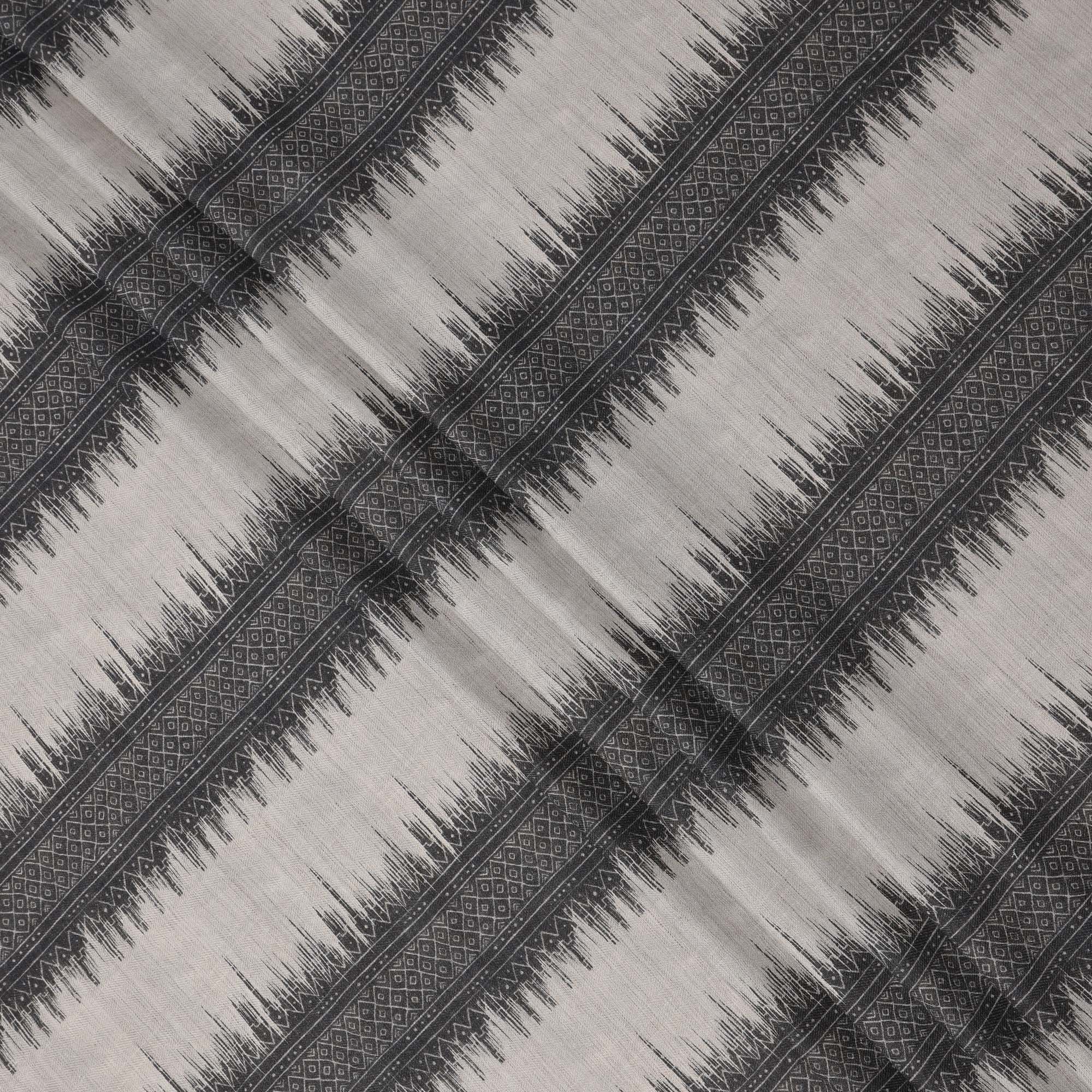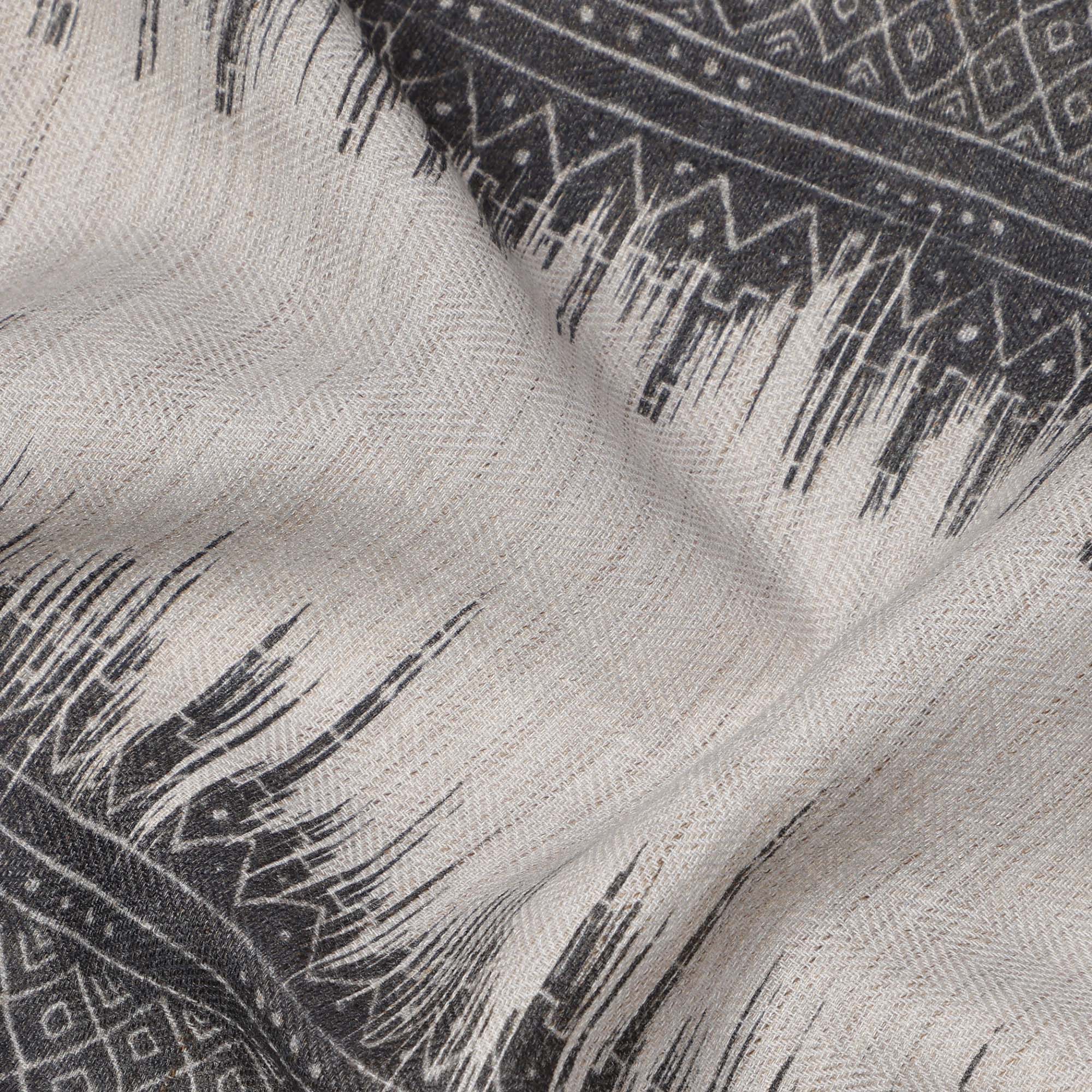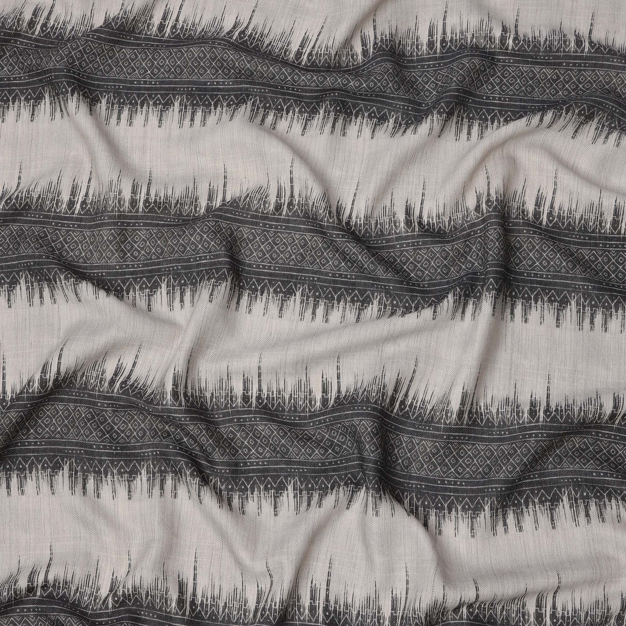 قماش فوال قطني بيج بطباعة رقمية بخطوط هندسية مستوحاة من الطراز القبلي، 110 سم، الهند - D23860