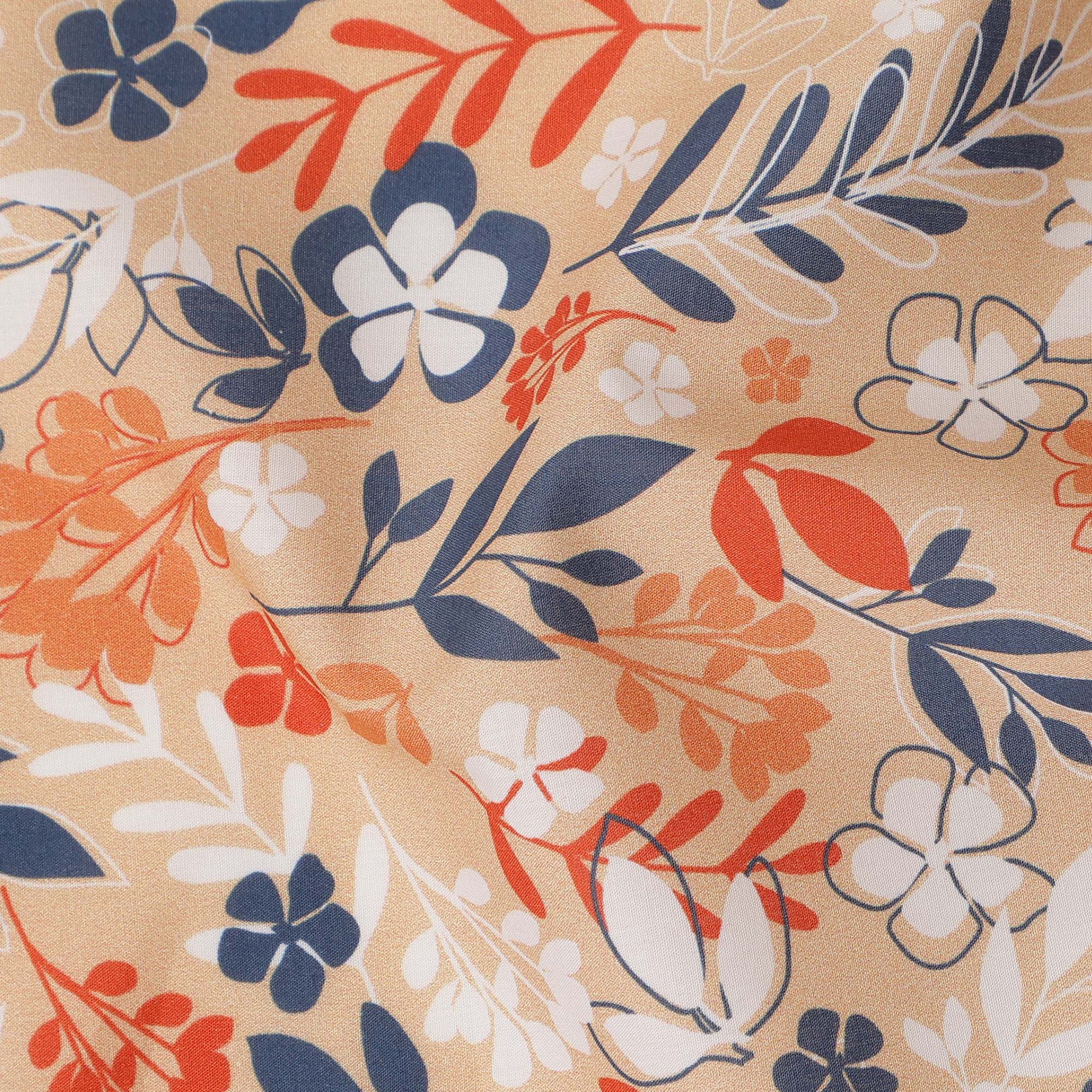 This beige floral botanical printed cotton voile fabric is a soft, lightweight, and breathable textile ideal for designers, tailors, and home sewing enthusiasts who prefer understated elegance with everyday comfort. Made from fine cotton voile, it features a smooth texture and excellent airflow, making it perfect for warm climates and long hours of wear. The neutral beige base paired with delicate floral and leafy motifs in warm tones creates a versatile and timeless look suitable for dresses, blouses, kurtis, scarves, and creative craft applications. Its fluid drape allows garments to fall naturally without stiffness, enhancing comfort and ease of movement. Easy to cut and stitch, this fabric works well for both beginners and professionals. With a generous 150 cms width, it supports efficient cutting and minimal fabric wastage, while its Spain origin reflects reliable quality and refined textile craftsmanship.