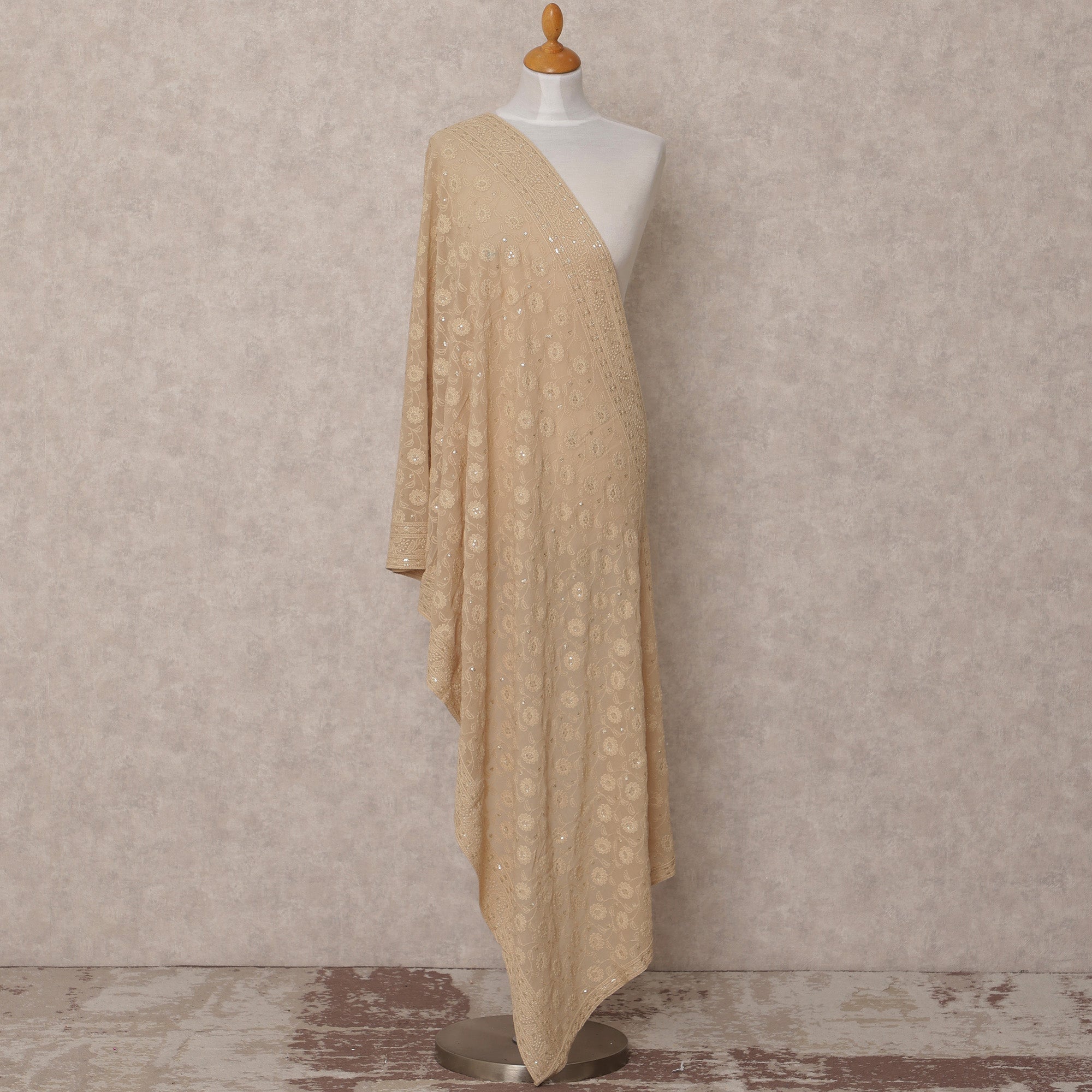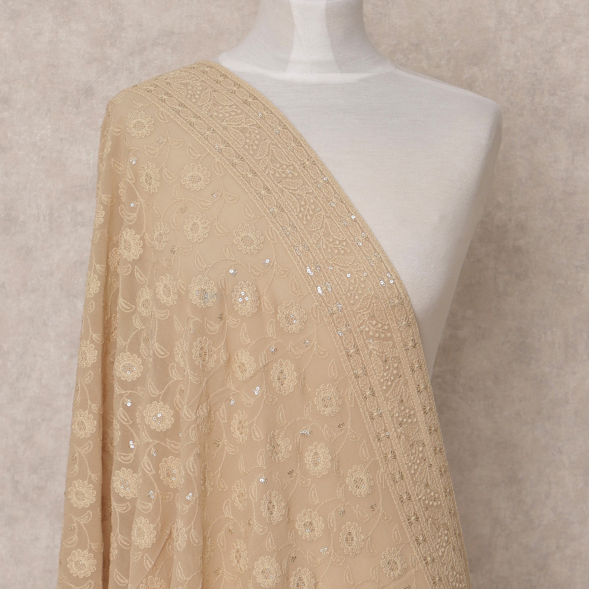 دوباتا جورجيت صناعي مطرزة بالورود باللون البيج مع تفاصيل الترتر، مقاس 210×90 سم، الهند - D24839