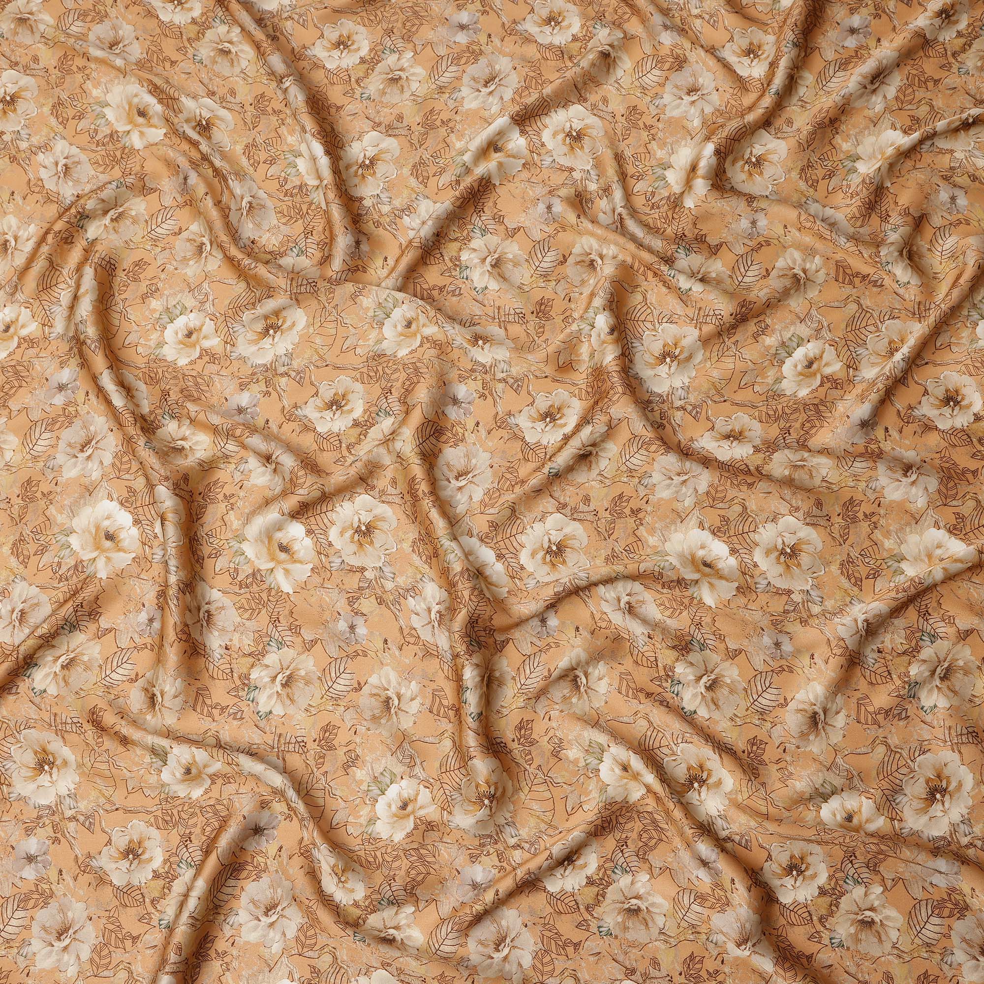 Premium Beige Floral Leaf Print Pure Silk Crepe Fabric made in India