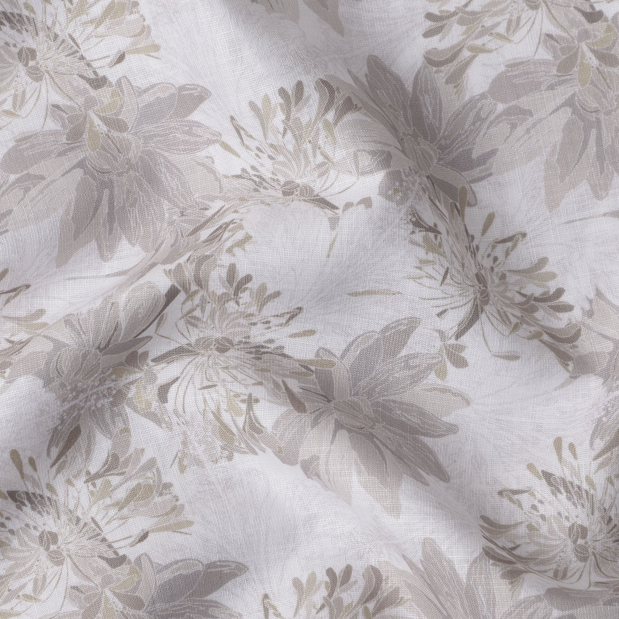 قماش كتان مخلوط بطبعة زهور بيج، بنمط نباتي رقيق، عرض 140 سم، صنع في الهند - D23220