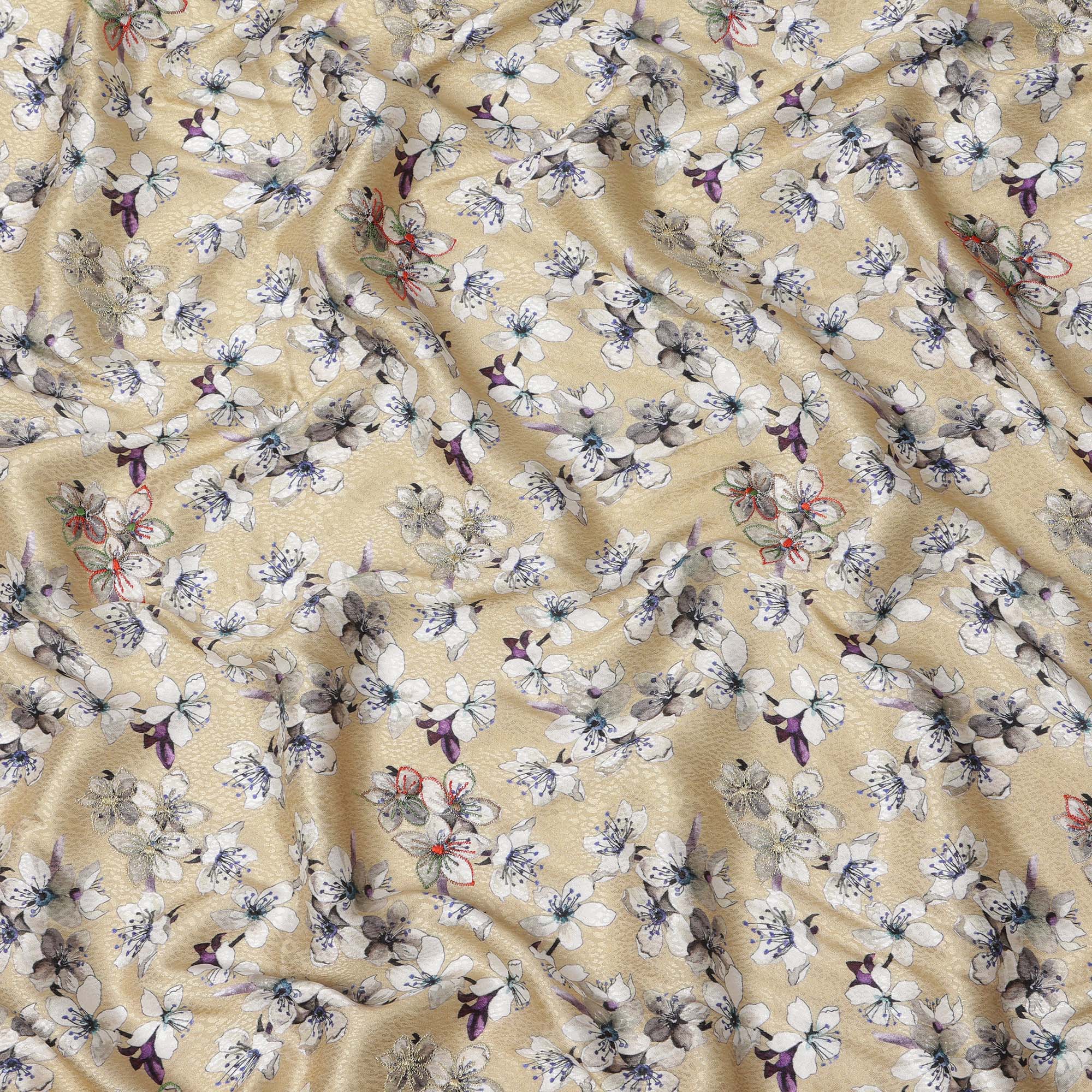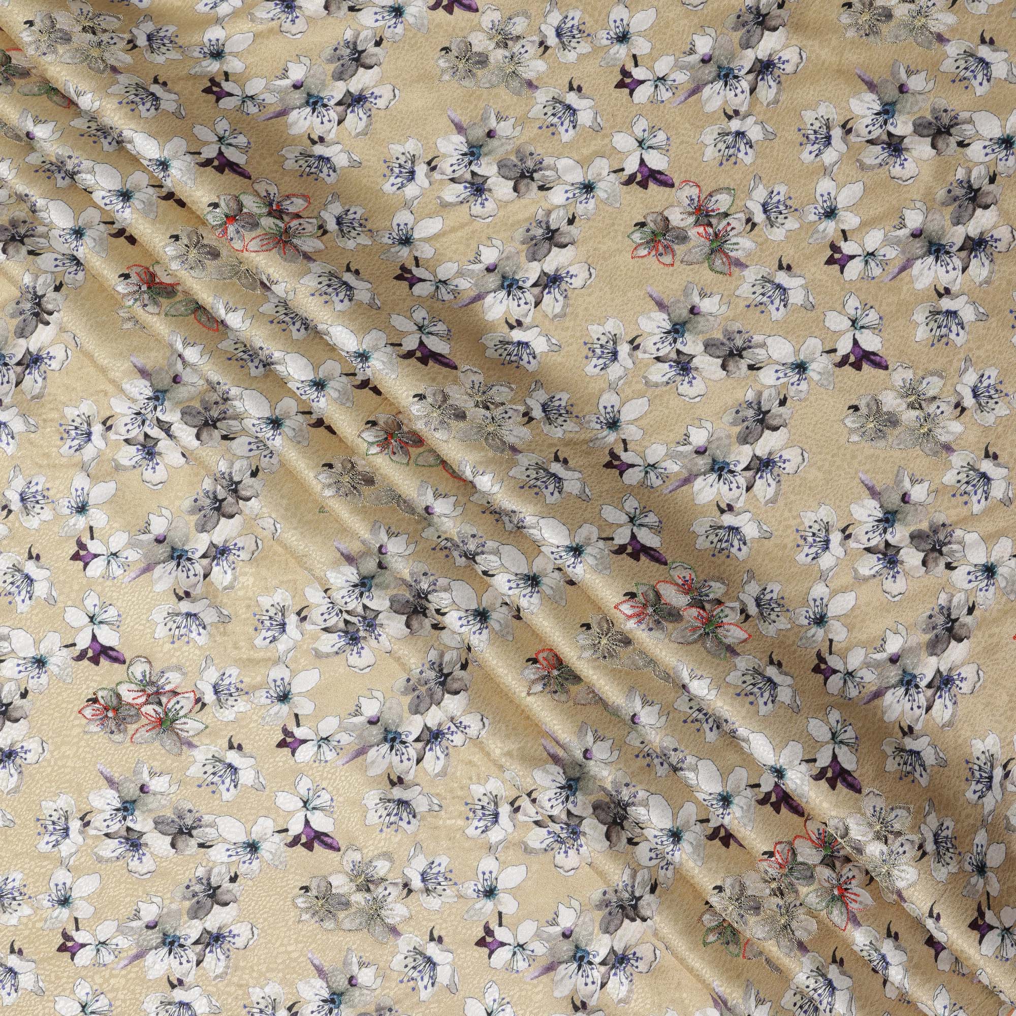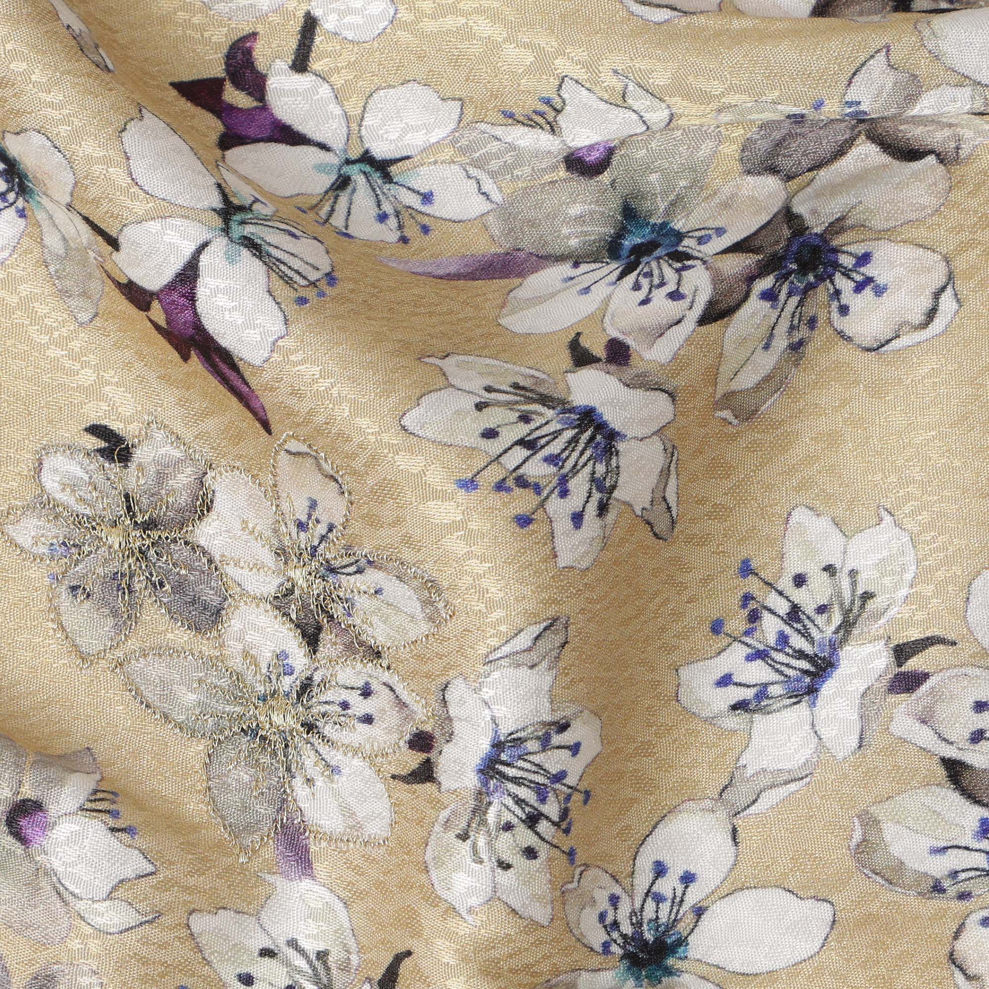 قماش فيسكوز بيج مطبوع عليه زهور ومطرز بخيوط متعددة الألوان، 110 سم، الهند - D23842