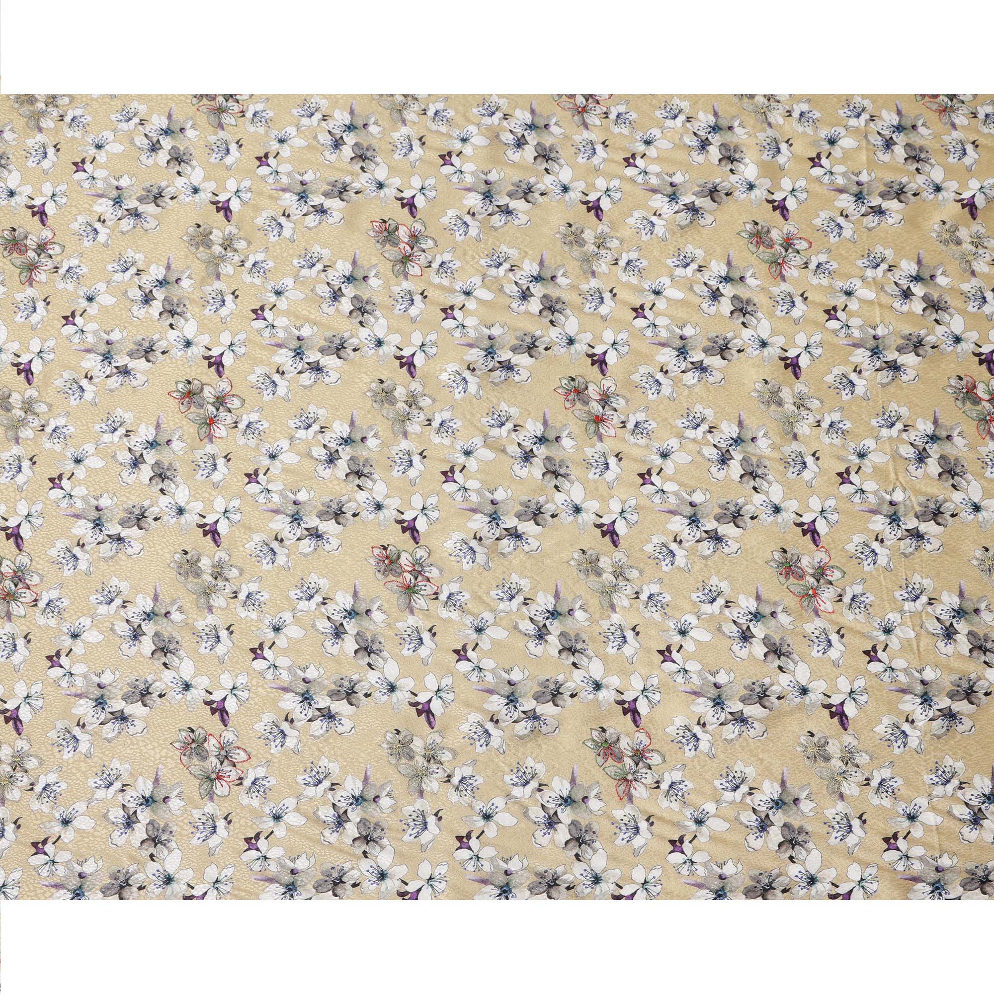 هذا القماش الفيسكوز البيج ينبض بالأناقة والسحر بطبعته الزهرية الشاملة، التي تتميز بأزهار بيضاء ورمادية وأرجوانية ناعمة، تكملها لمسات رقيقة من التطريز بخيوط حمراء وخضراء. يمنحه التناغم الدقيق بين العناصر المطبوعة والمطرزة نسيجًا متعدد الطبقات، أنيقًا وغنيًا بصريًا. خفيف الوزن وناعم، ينساب بسلاسة، مما يجعله مثاليًا للساري الأنيق، والفساتين المريحة، والأزياء العرقية المعاصرة. يوفر عرضه البالغ 110 سم مرونةً تلبي مختلف احتياجات التصميم. صُنع في الهند، وهو مثالي لمن يرغب في شراء فيسكوز عالي الجودة، يسمح بمرور الهواء، بتفاصيل حرفية، عبر الإنترنت.