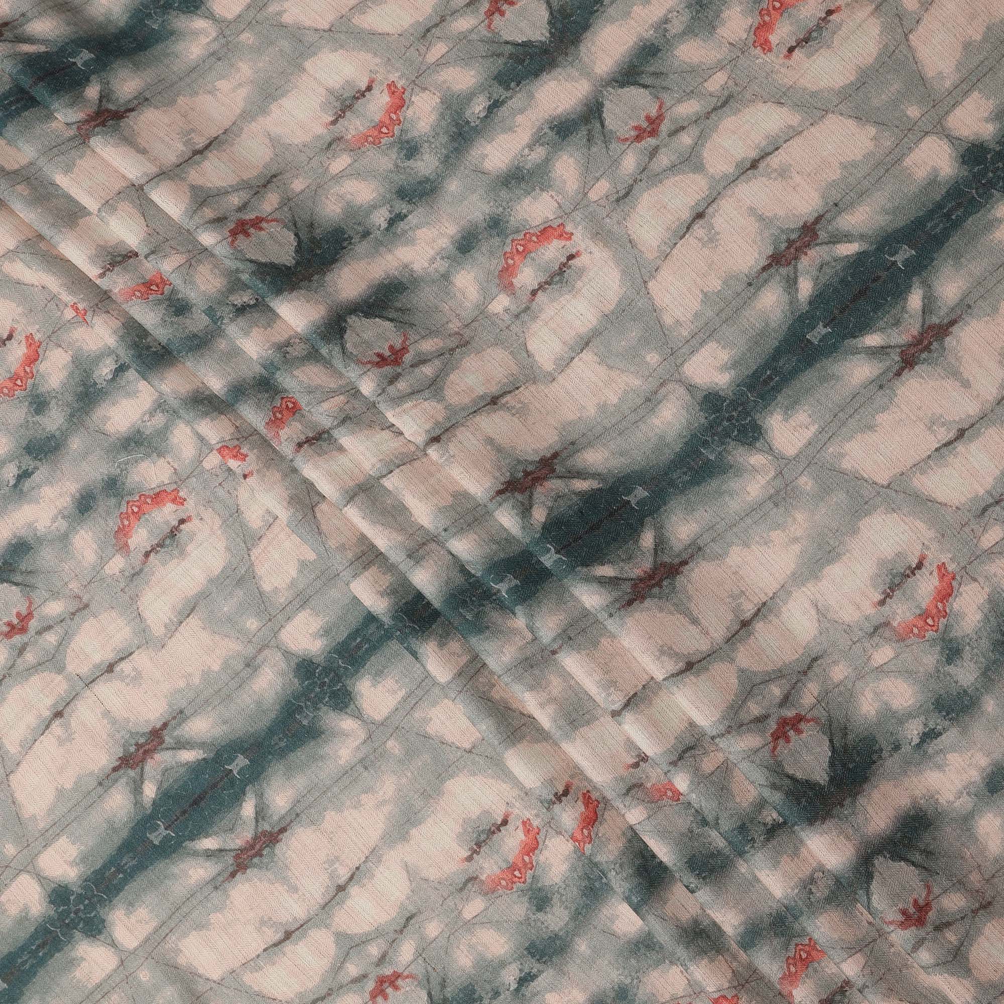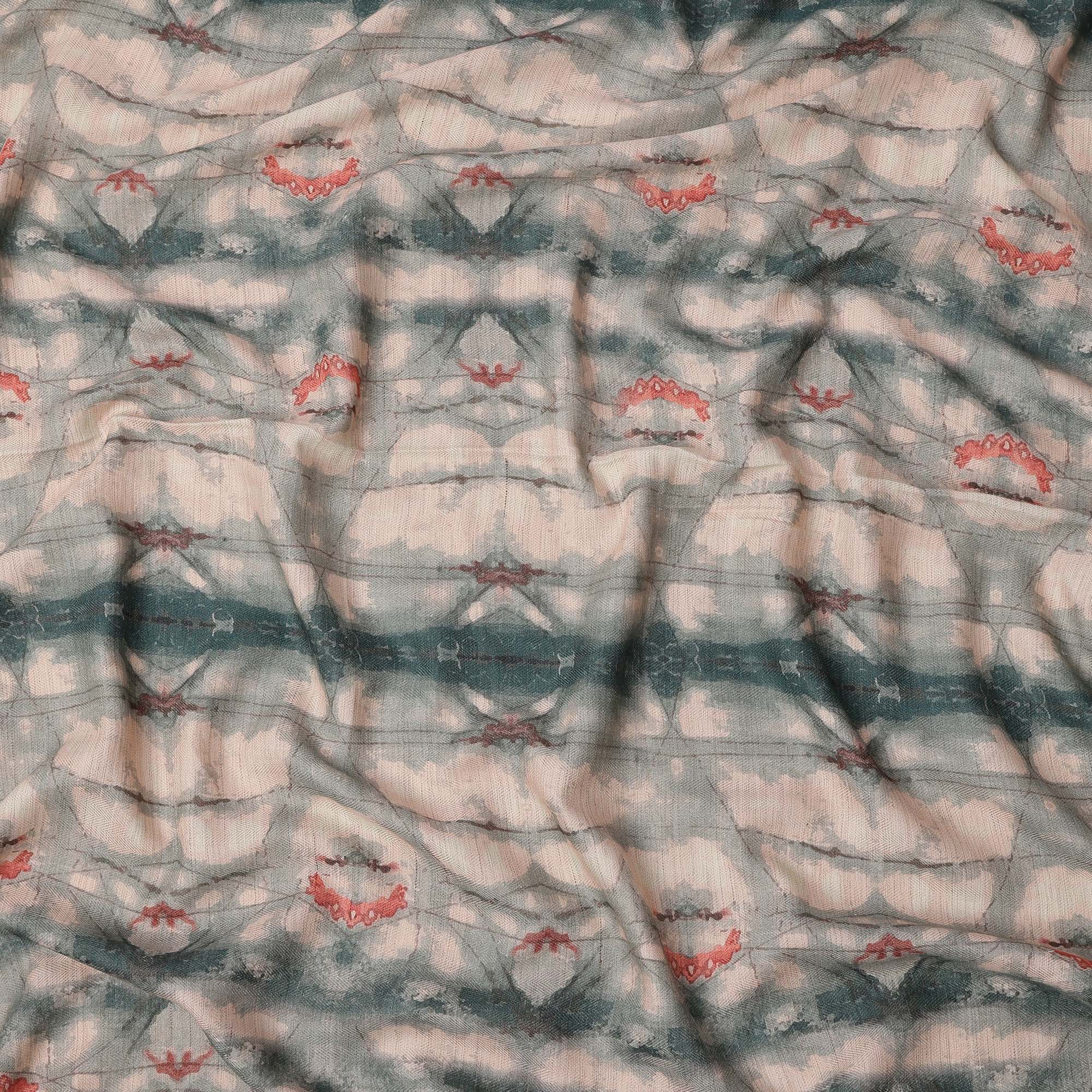 قماش فيسكوز كتان مخلوط باللون البيج والأخضر بطبعة تجريدية مستوحاة من شيبوري، عرض 110 سم، صنع في الهند - D25104