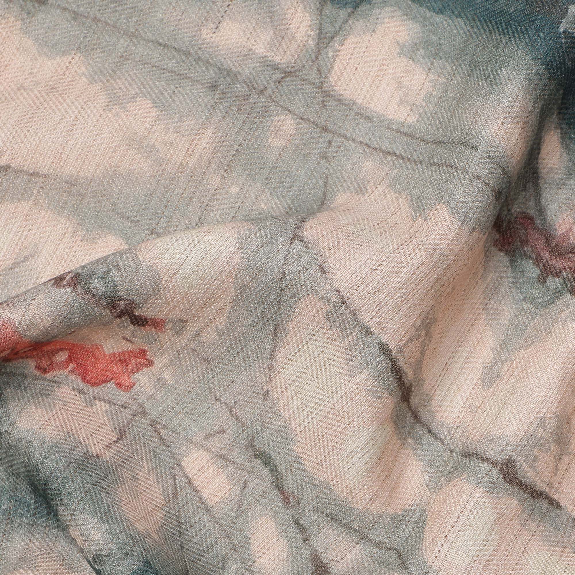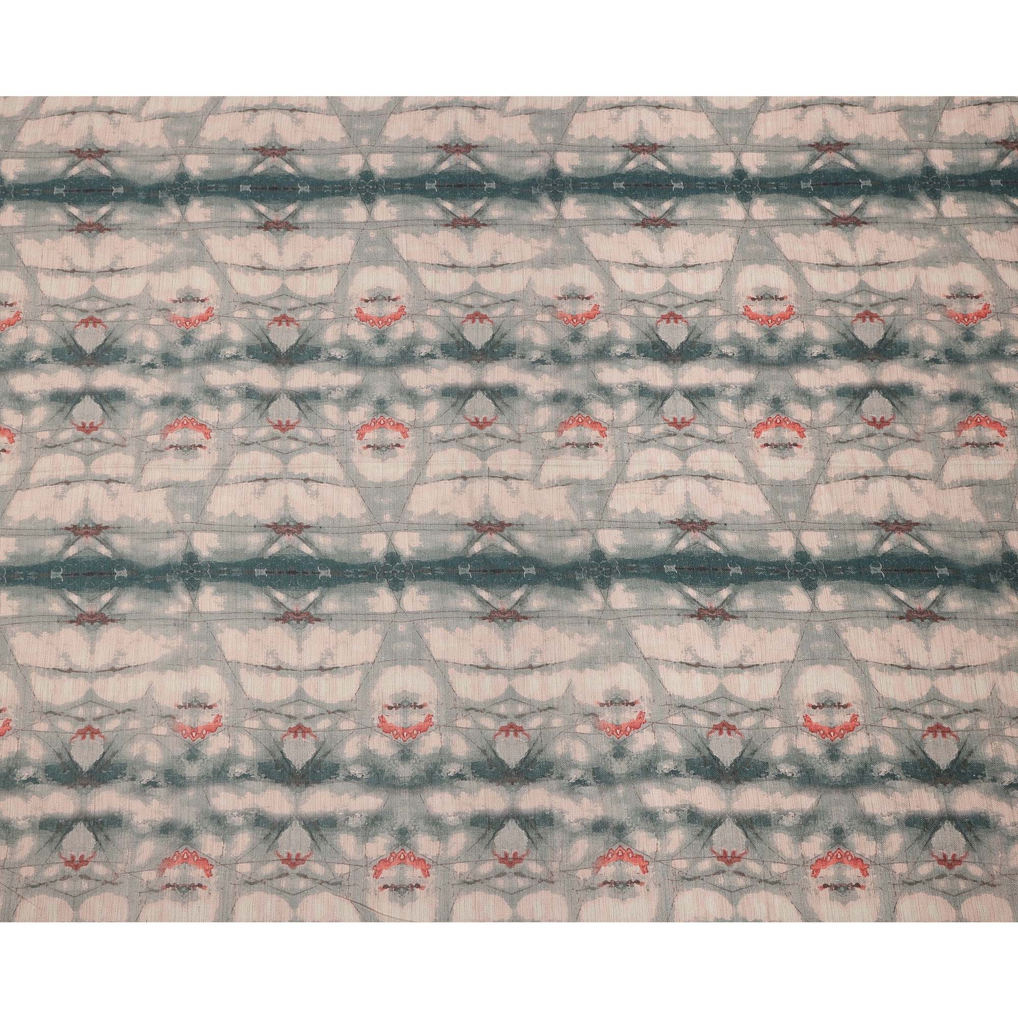 قماش من مزيج الكتان والفيسكوز باللون البيج والأخضر مع طبعة تجريدية مستوحاة من أسلوب شيبوري