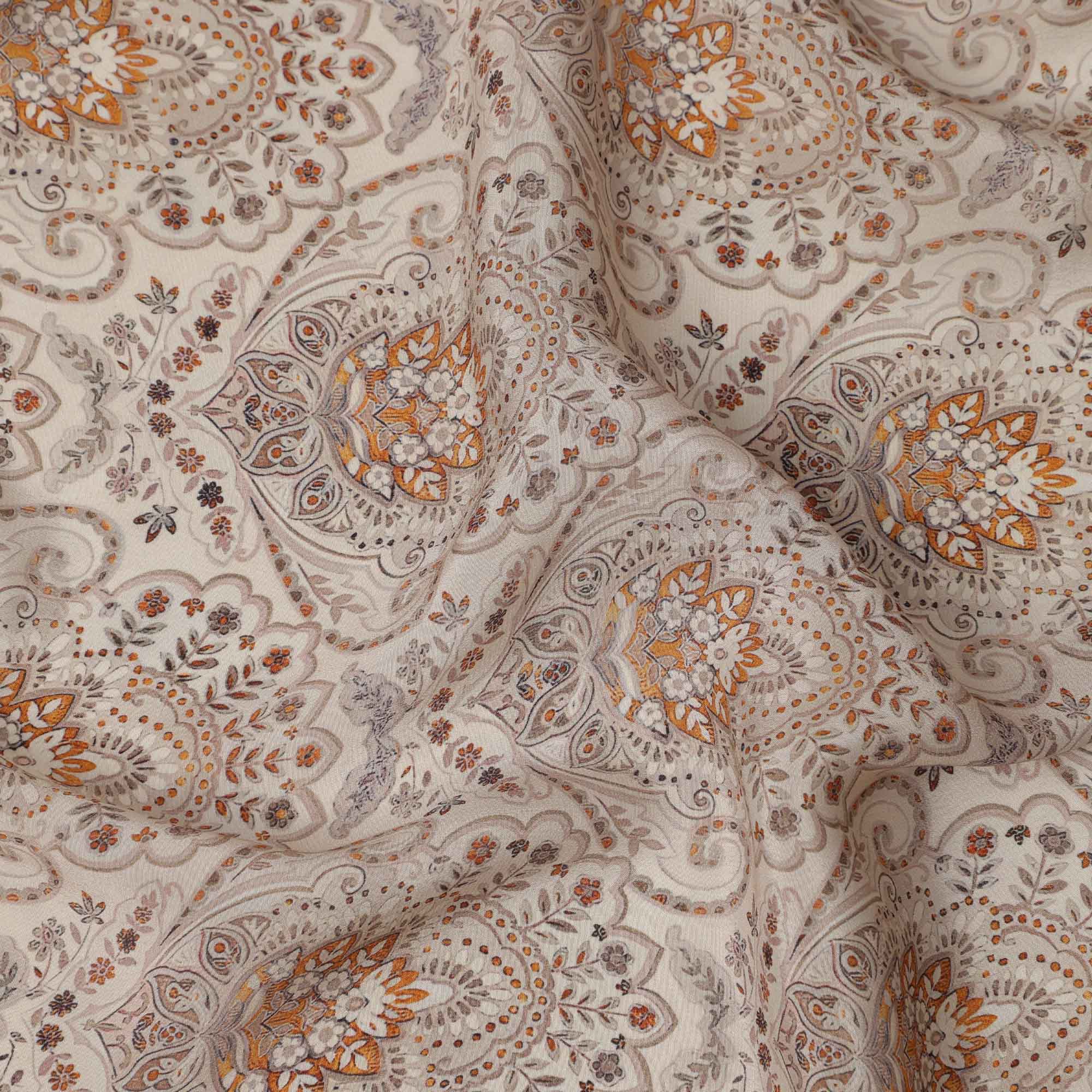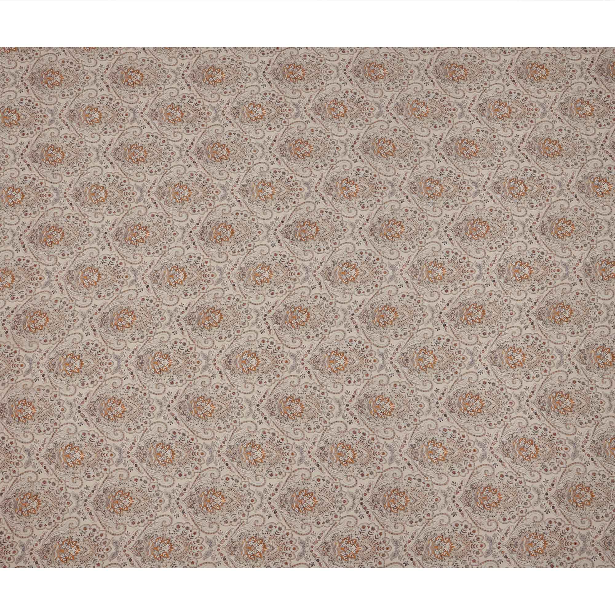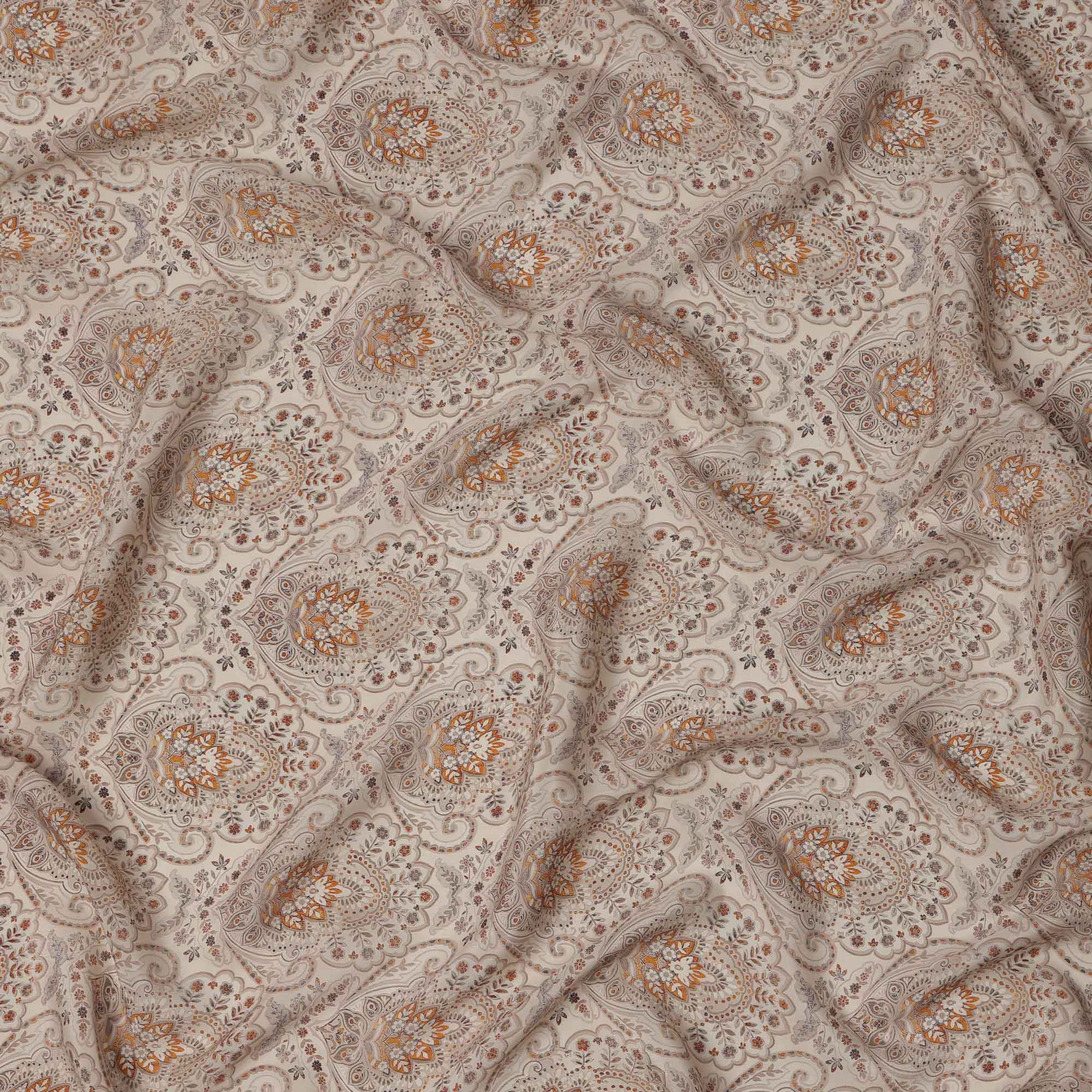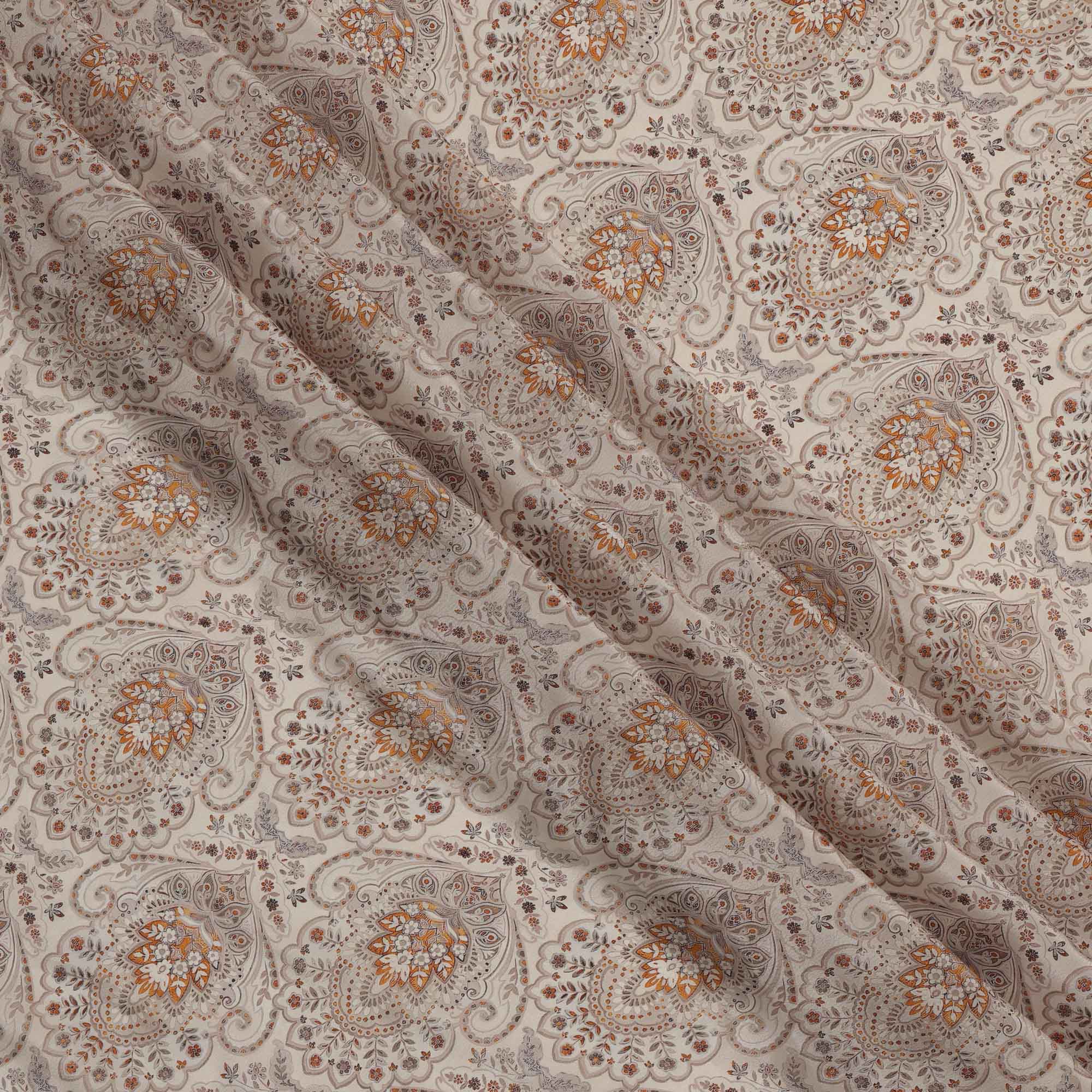 قماش كريب فيسكوز بيج مطبوع عليه زخارف مغولية، تصميم زهور بوتي تقليدي بلمسات من الصدأ والبني، عرض 110 سم، صنع في الهند - D23453