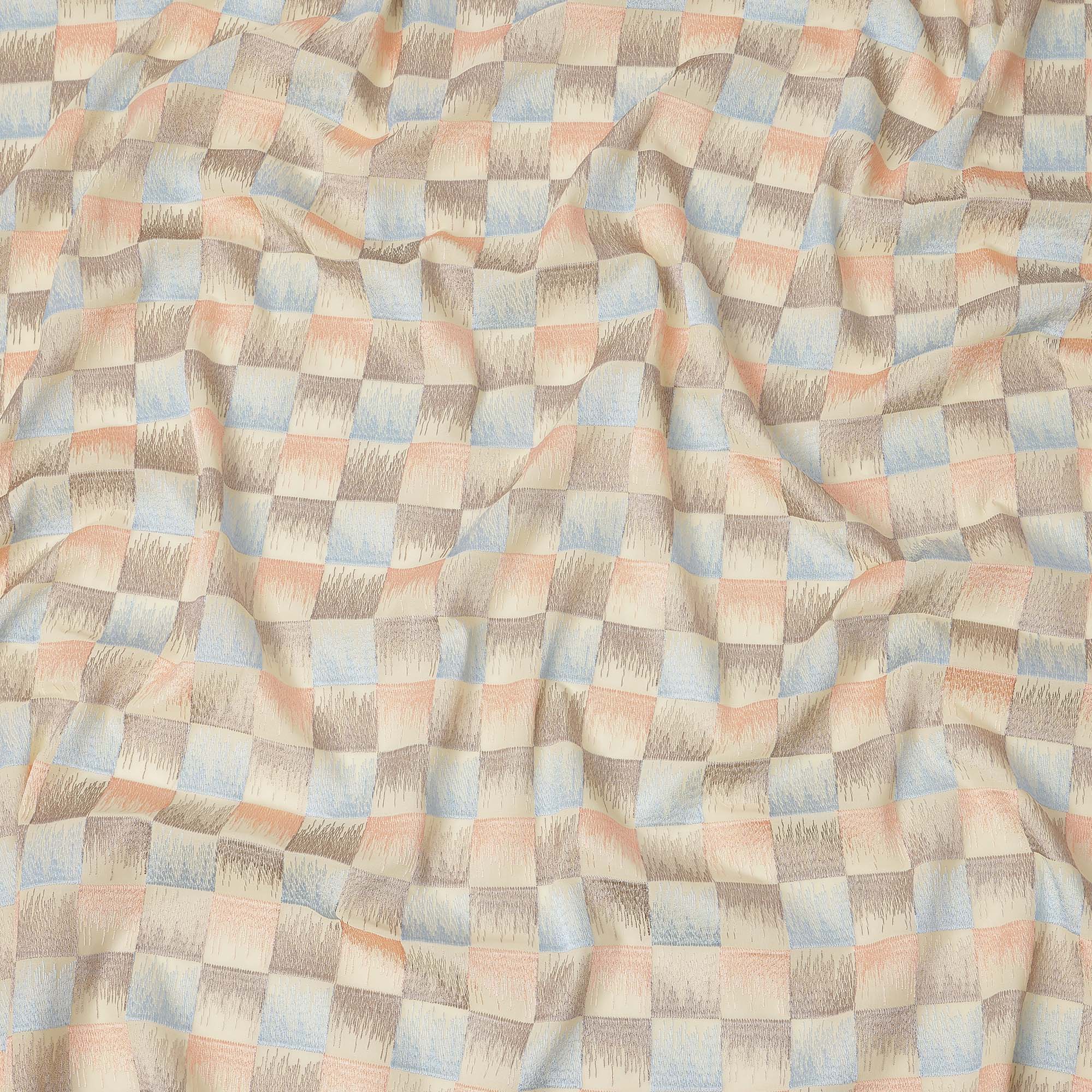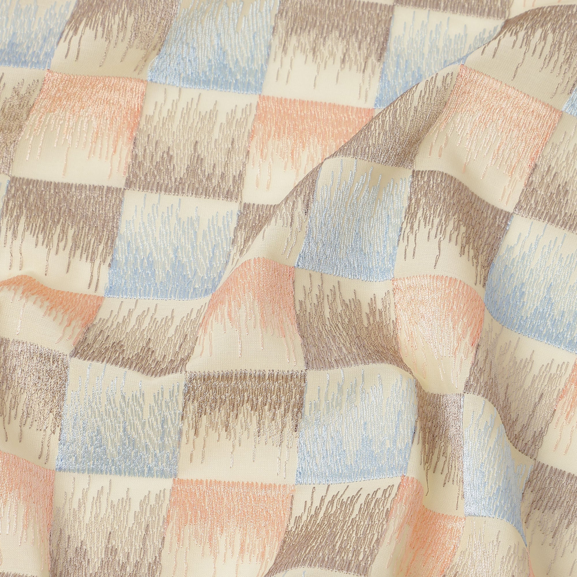 قماش تطريز من القطن الفوال بنقشة مربعات متعددة الألوان، لون بيج، عرض 110 سم، الهند - D25319