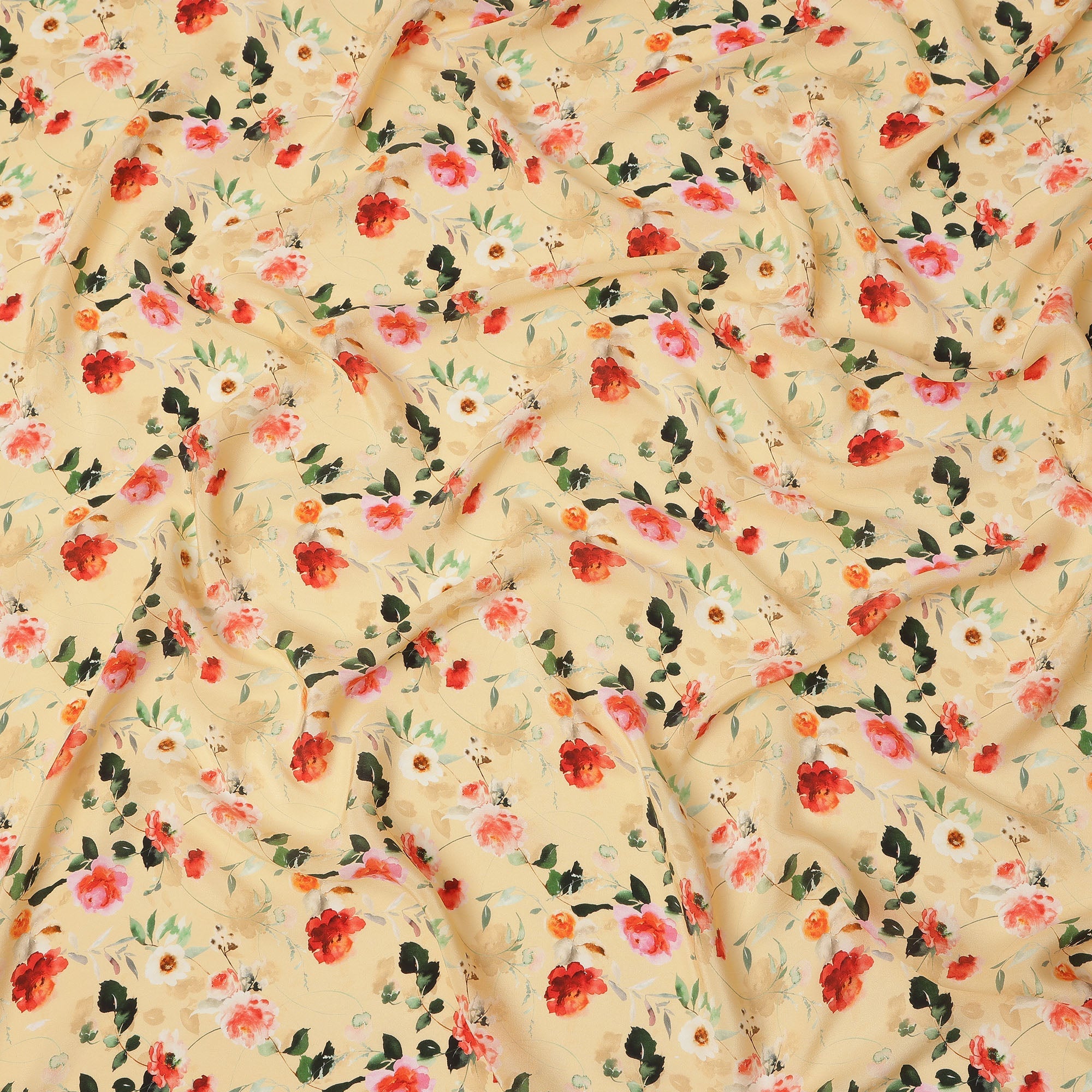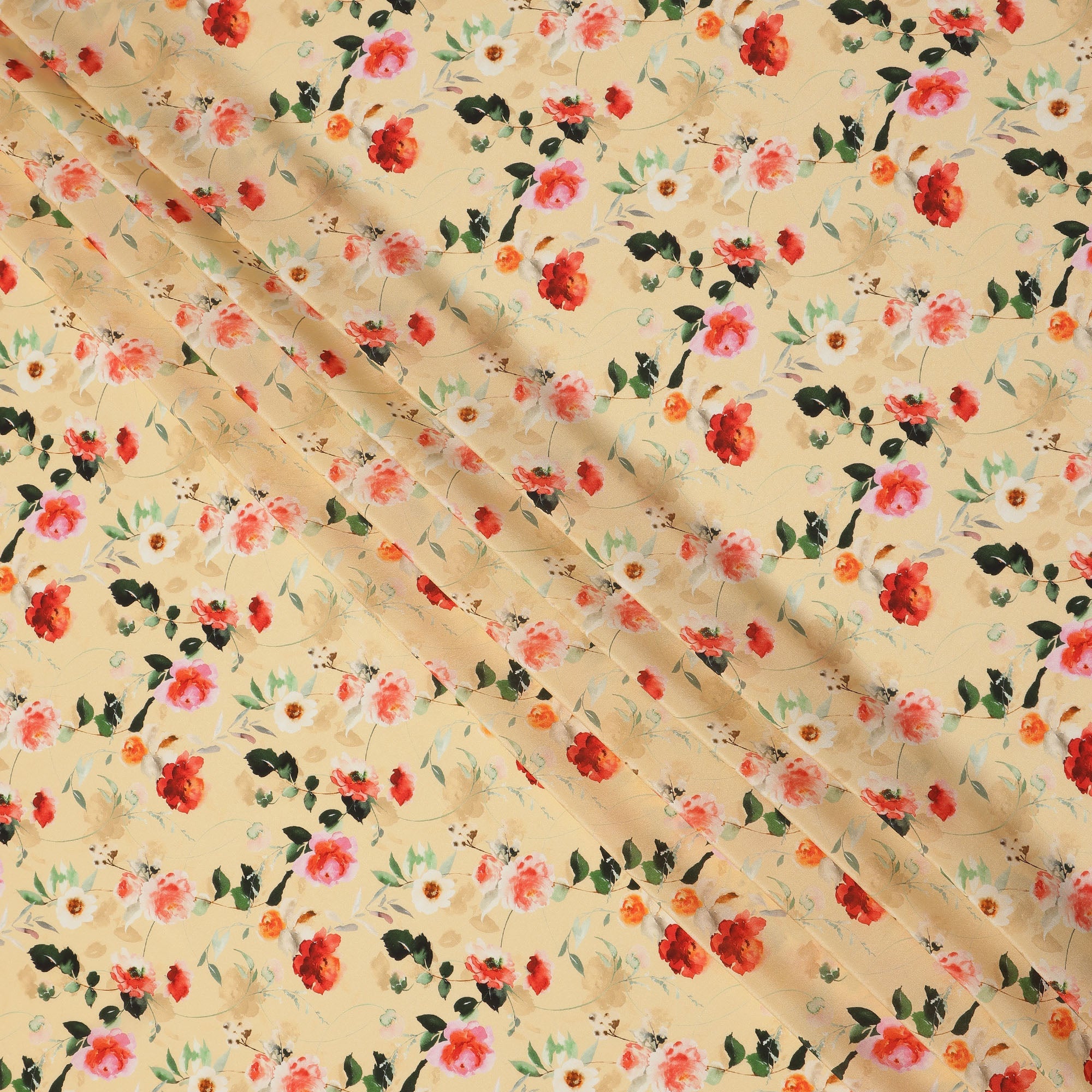 • Beige Multicolor Floral Print Pure Silk Crepe Fabric, Width 110 Cms, Made in India-D26082