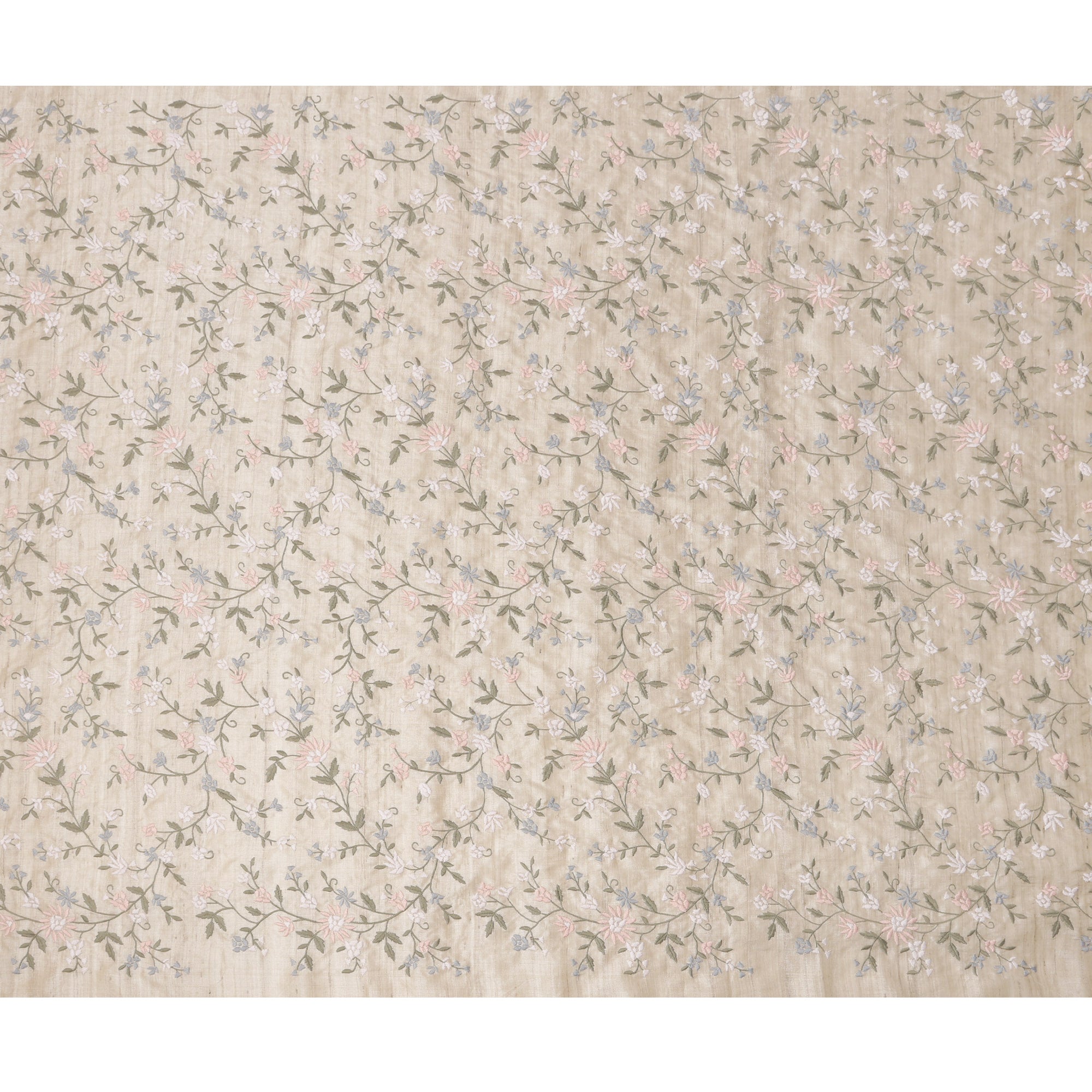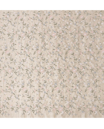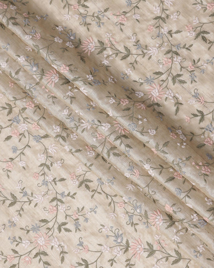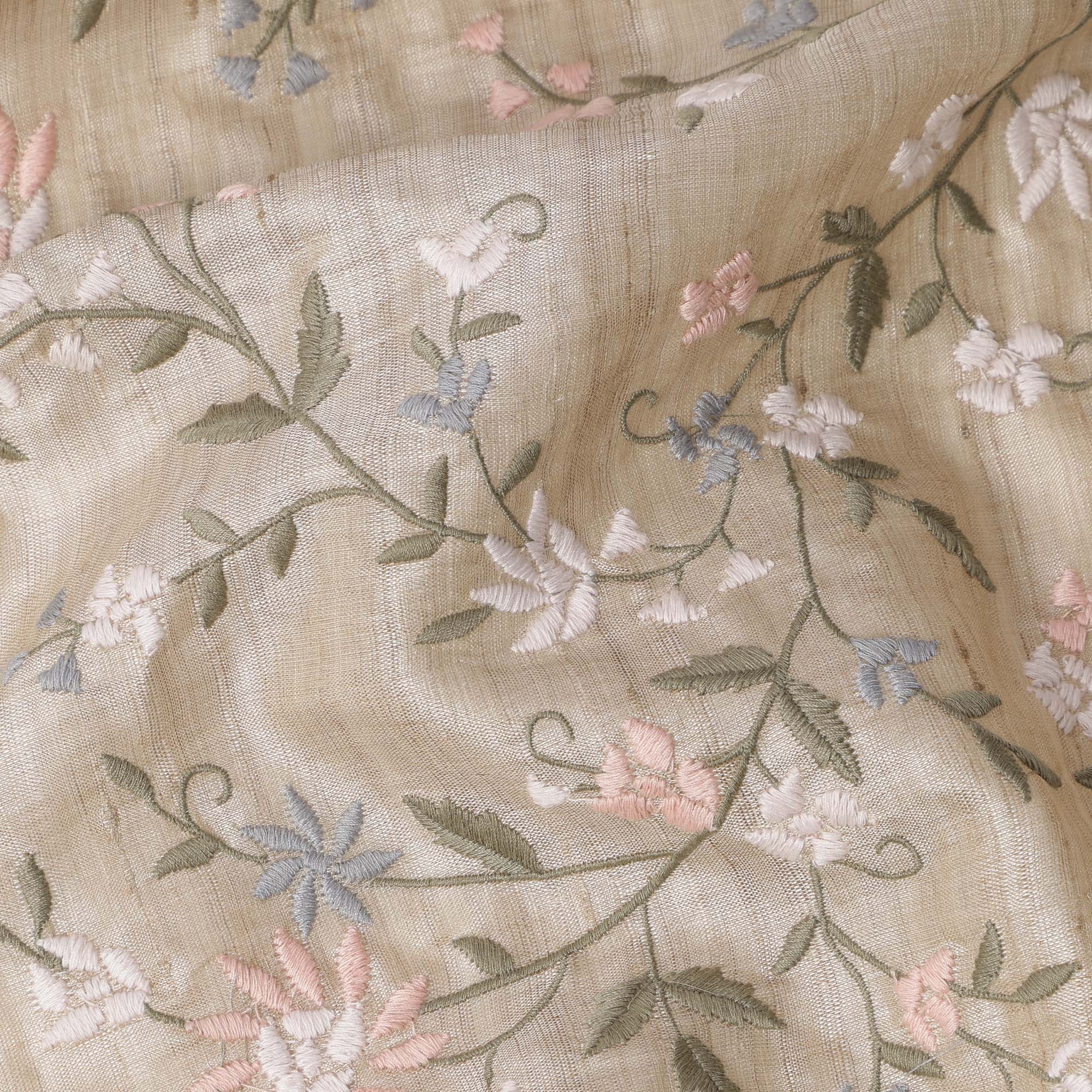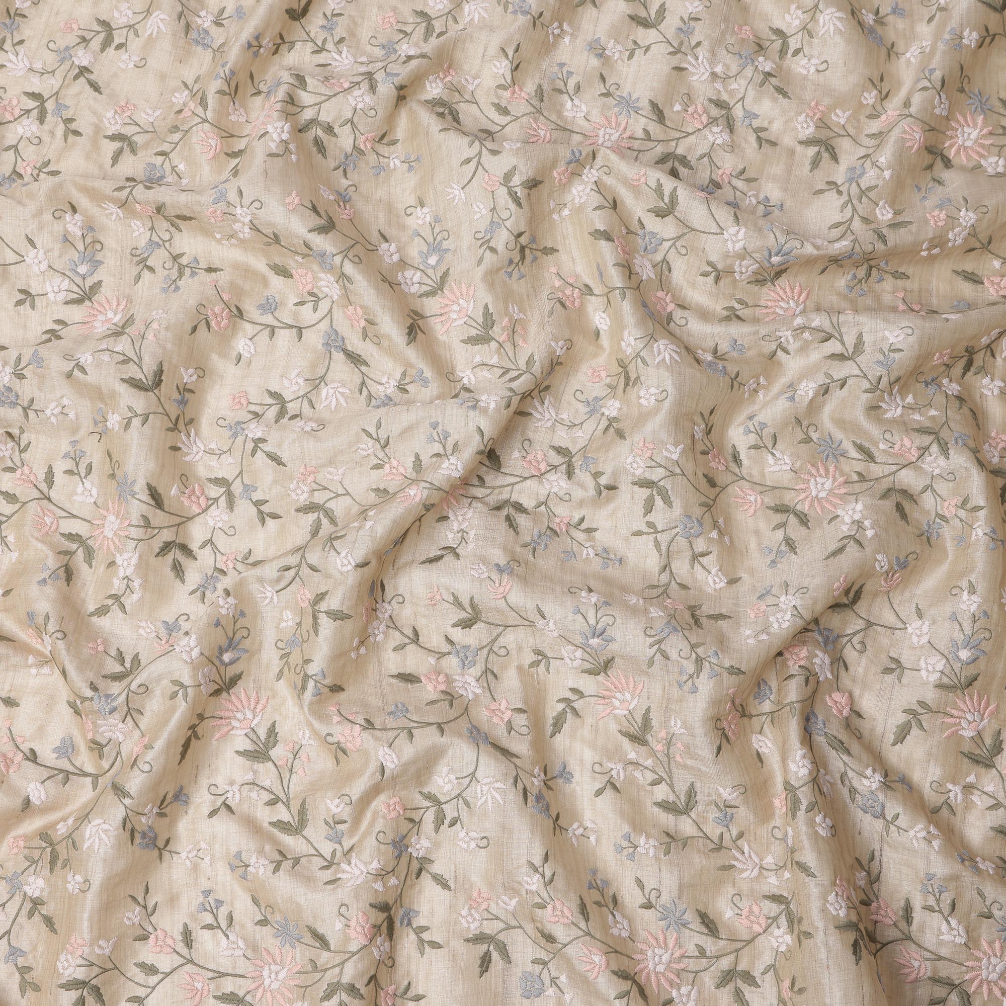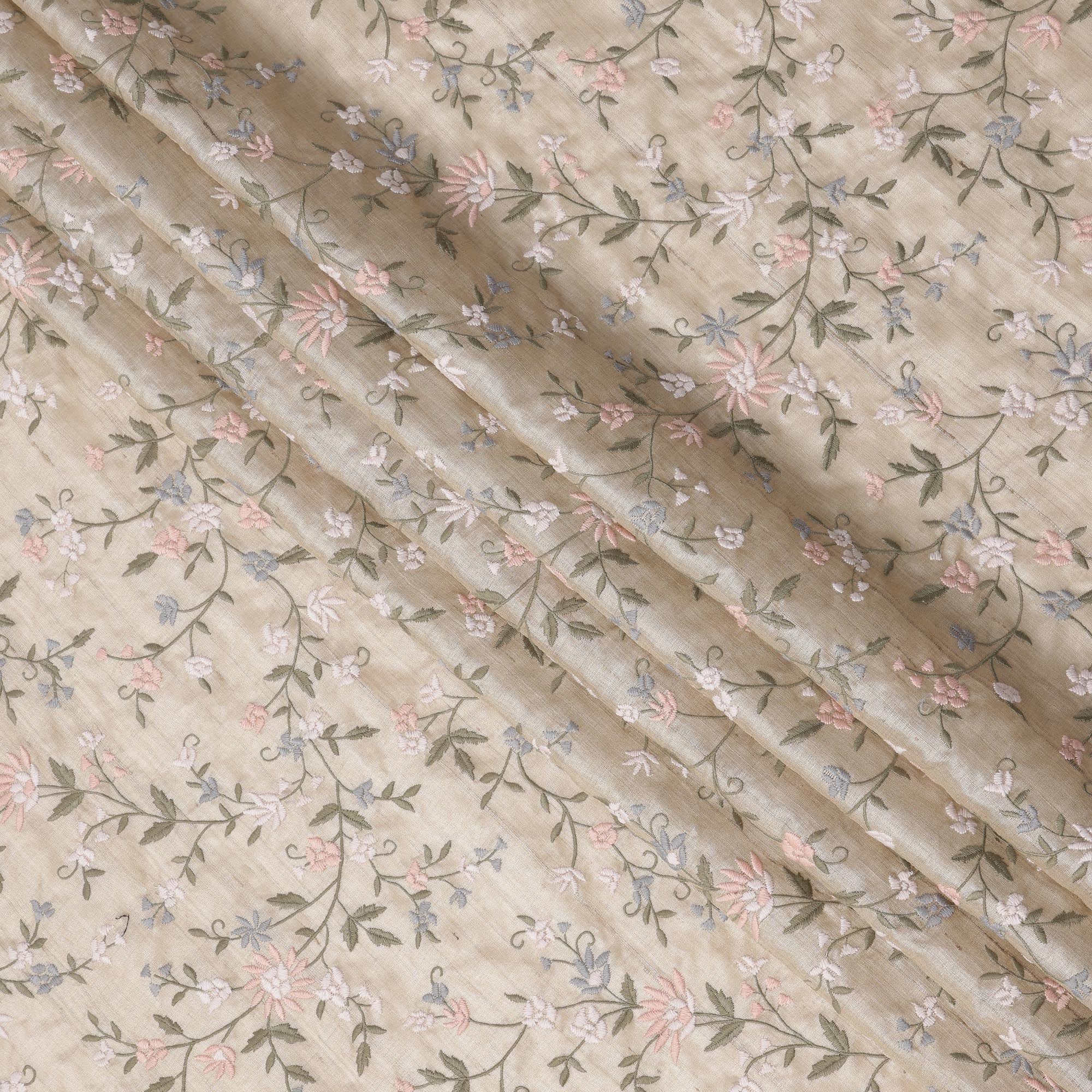 قماش حرير توسار مطرز بنقشة زهور الباستيل البيج، عرض 110 سم، صنع في الهند - D23368