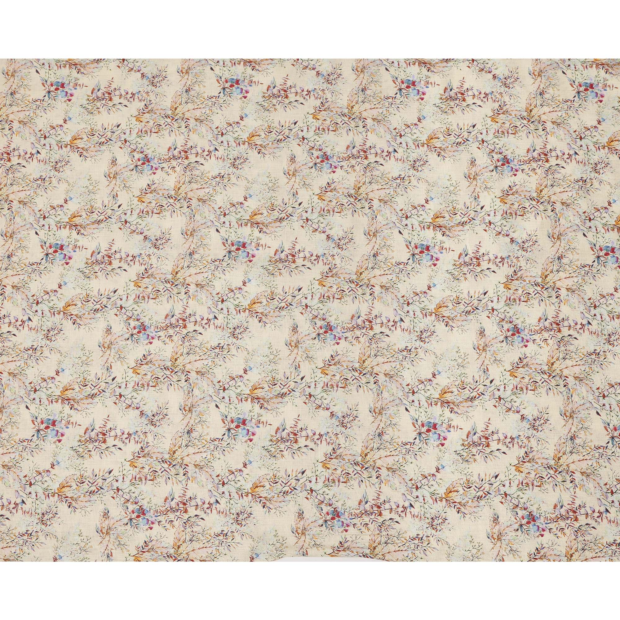 قماش كتان نقي باللون البيج مع طبعة زهور كرمة متعددة الألوان