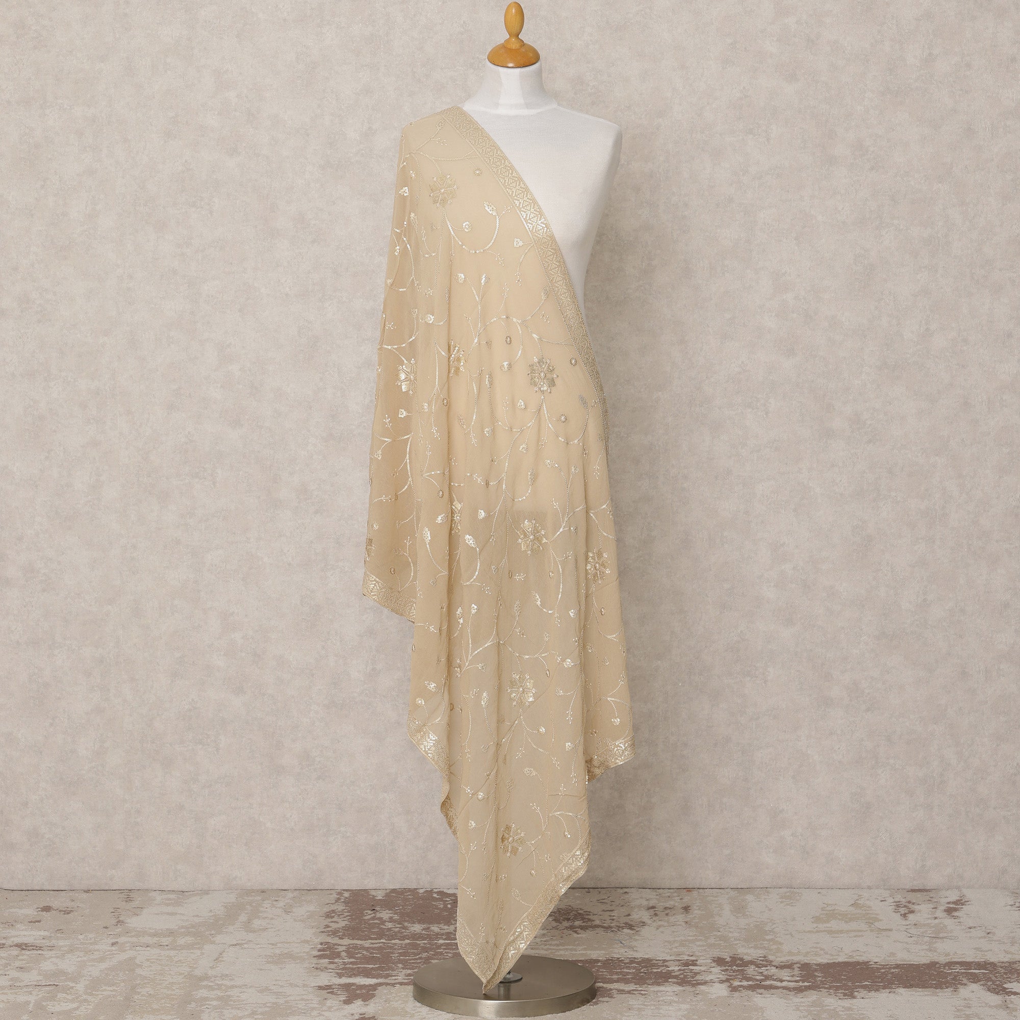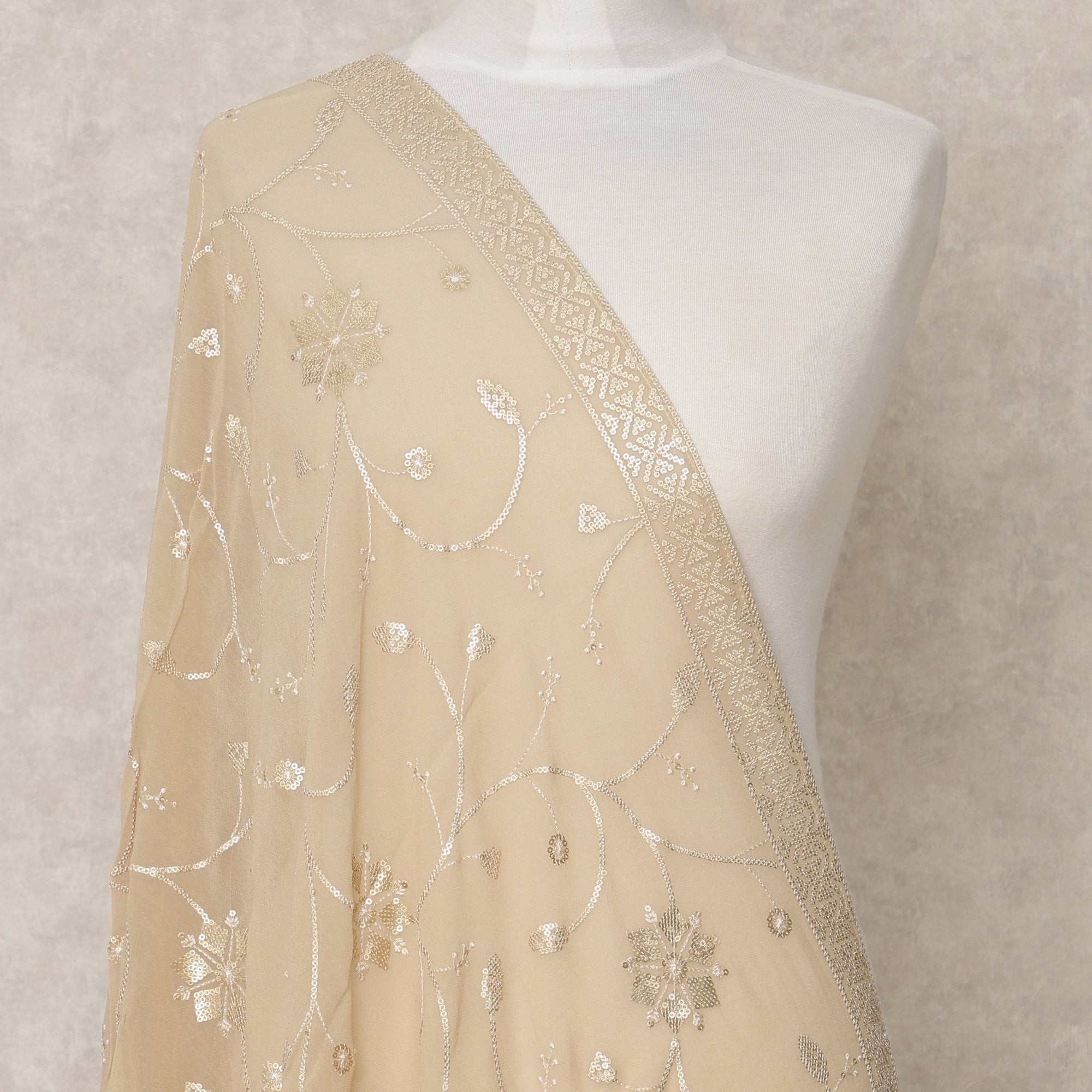 دوباتا من قماش جورجيت صناعي بيج مزين بتطريز زهور من الترتر، 210 × 80 سم، صنع في الهند - D24098