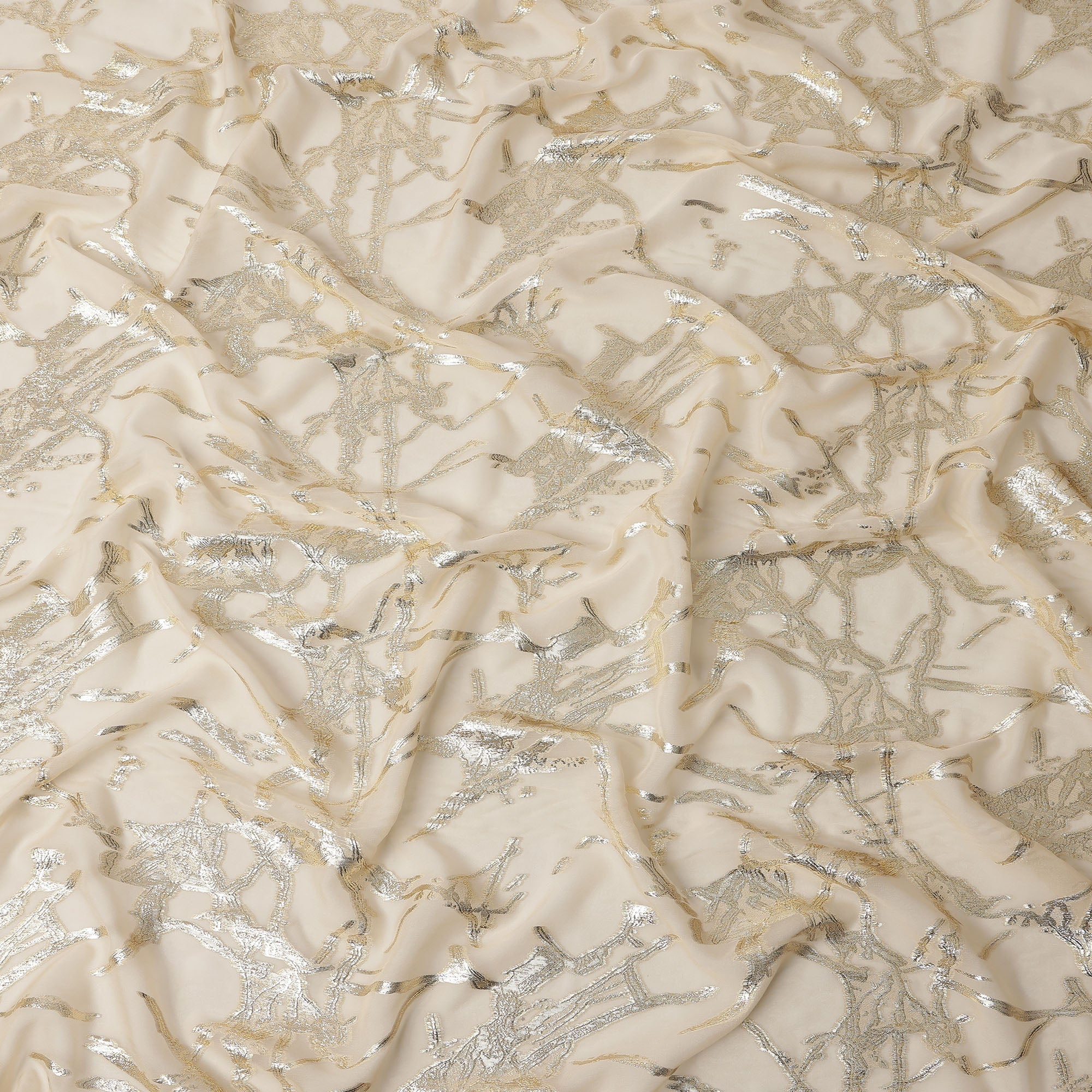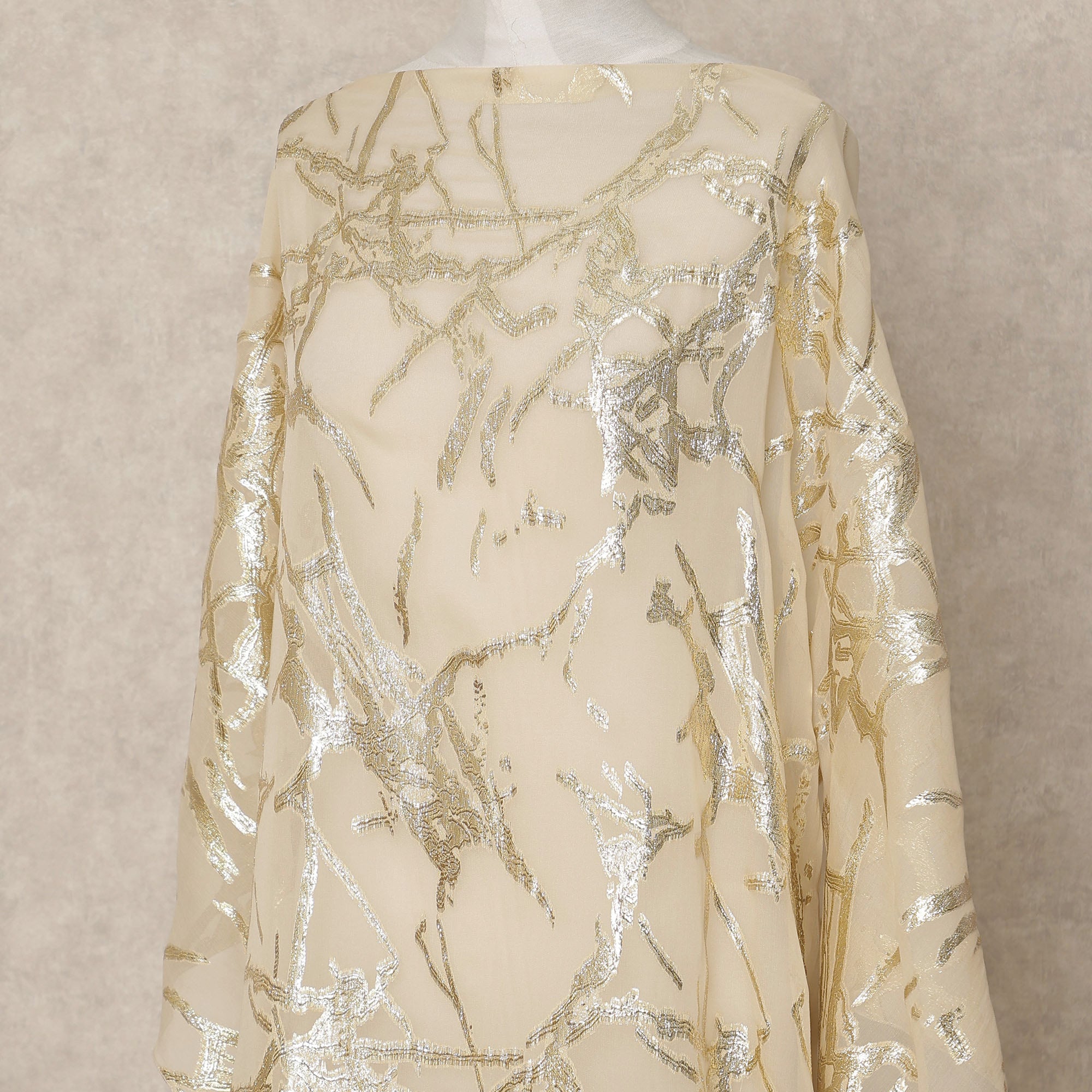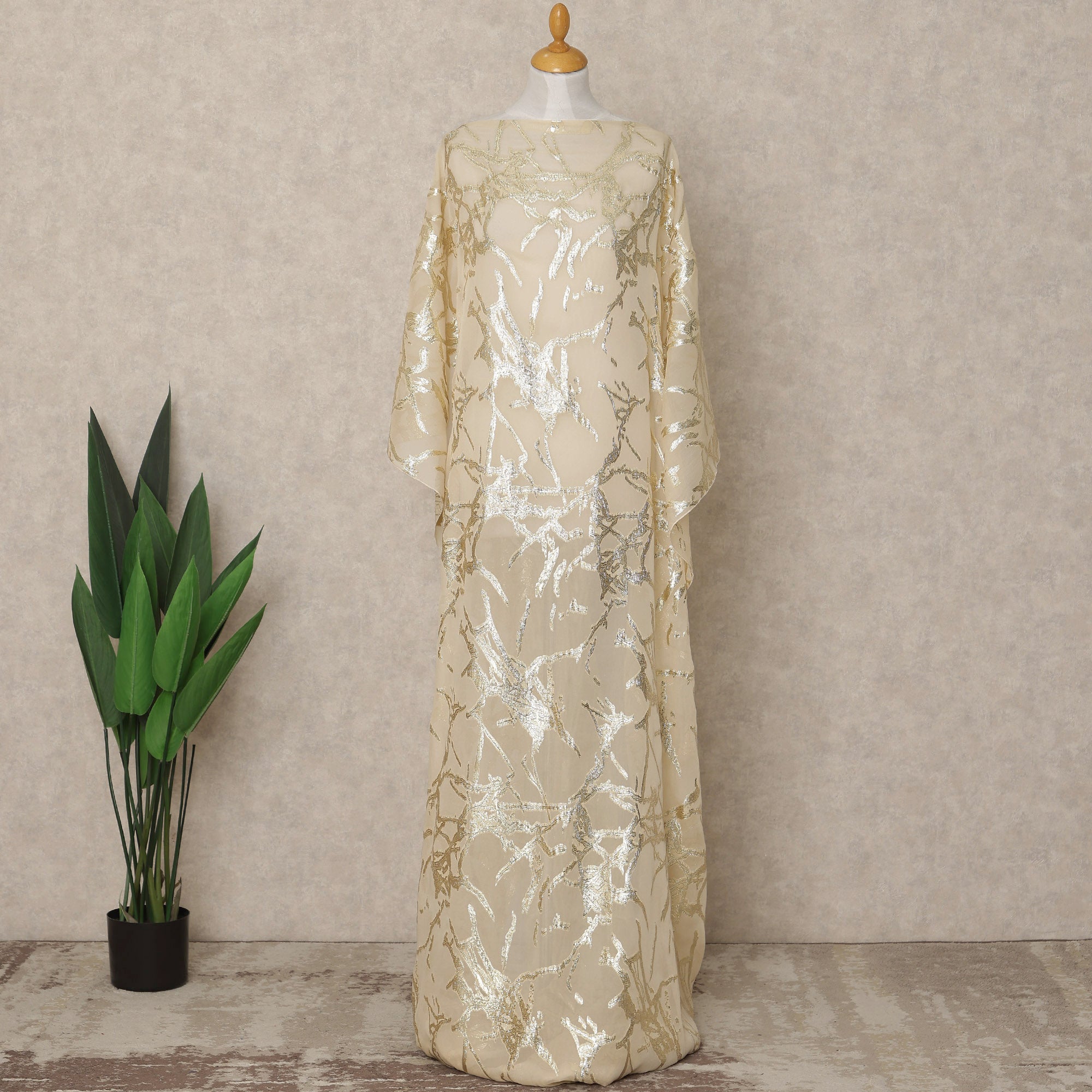 Beige Traditional Somali Silk Chiffon Dirac Fabric with Metallic Lurex, 3.5 Mtrs Piece, Width 140 Cms, Made in South Korea-D26481