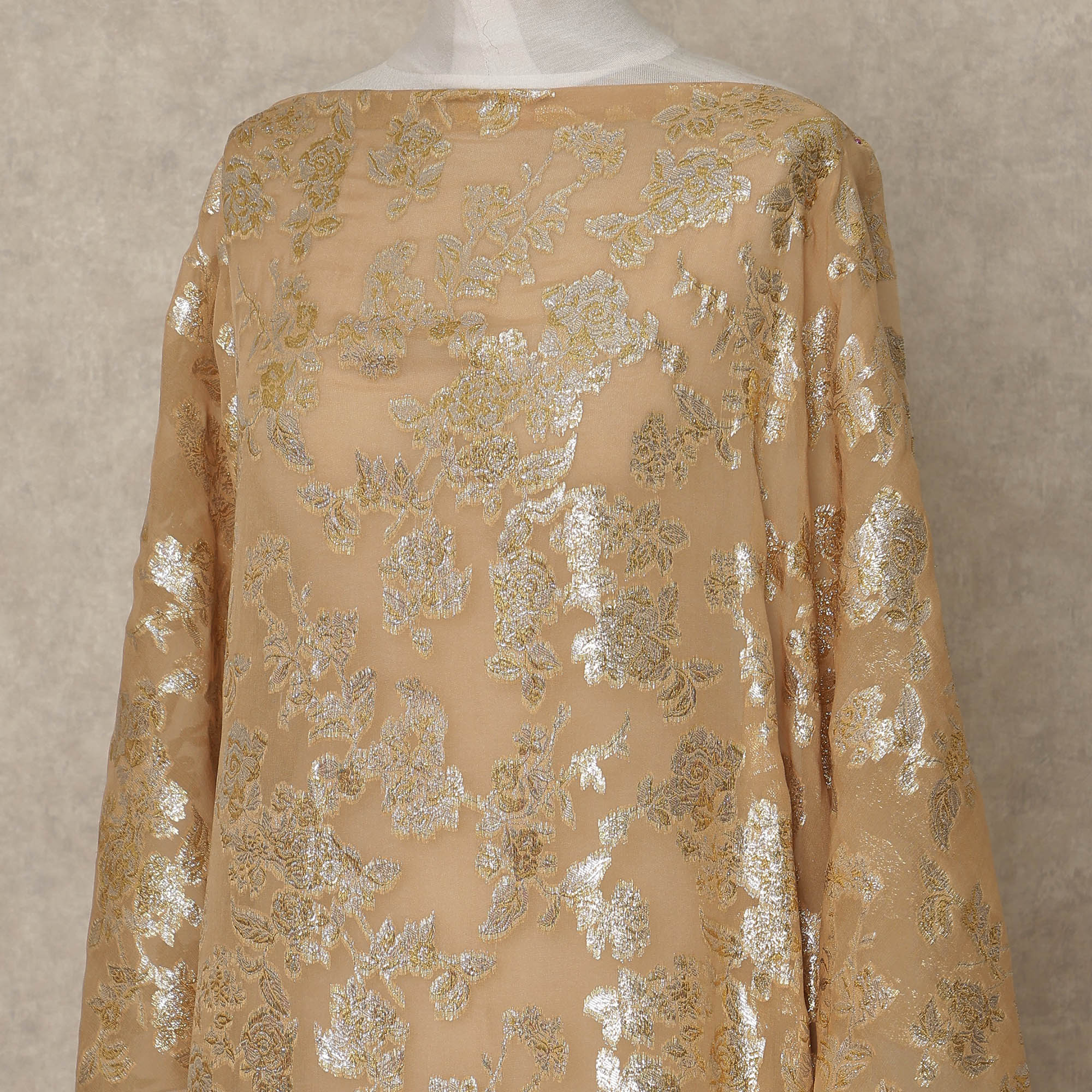 Beige Traditional Somali Silk Chiffon Dirac Fabric with Metallic Lurex, 3.5 Mtrs Piece, Width 140 Cms, Made in South Korea-D26485