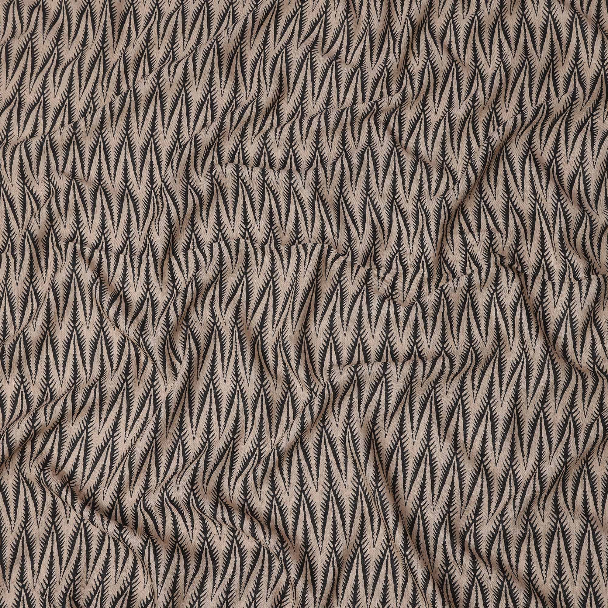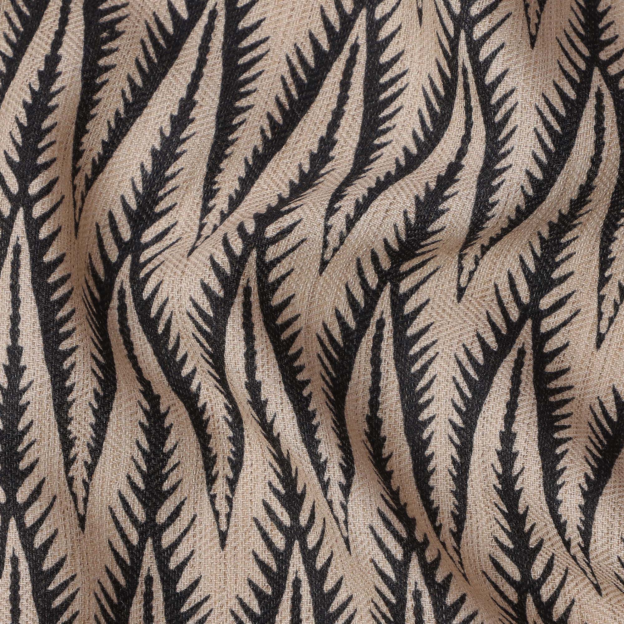 قماش من مزيج الكتان والفيسكوز باللون البيج مع طباعة بنمط أوراق الشجر باللون الأسود