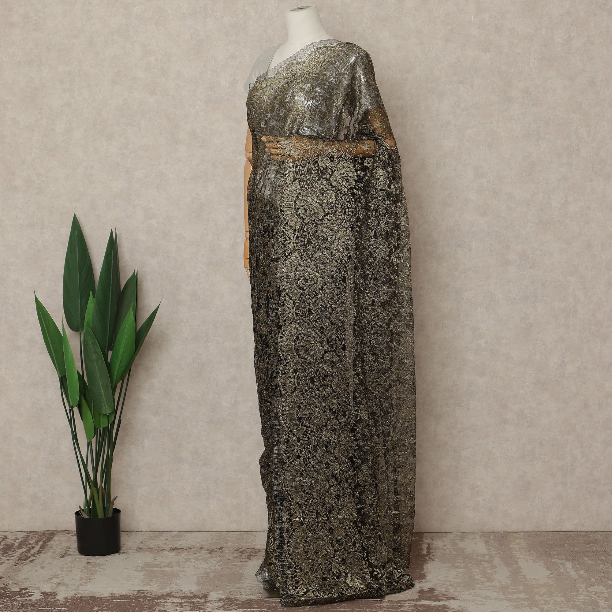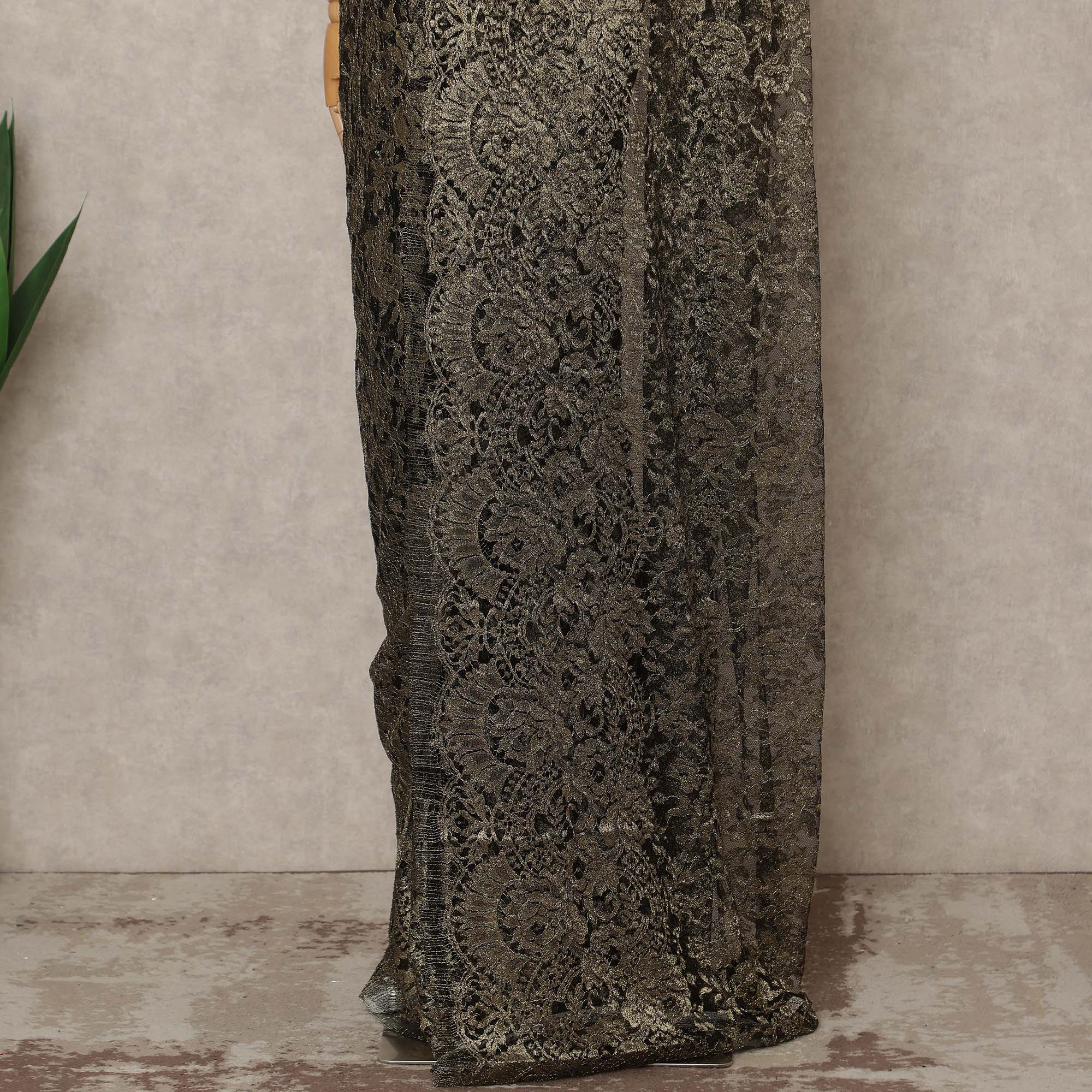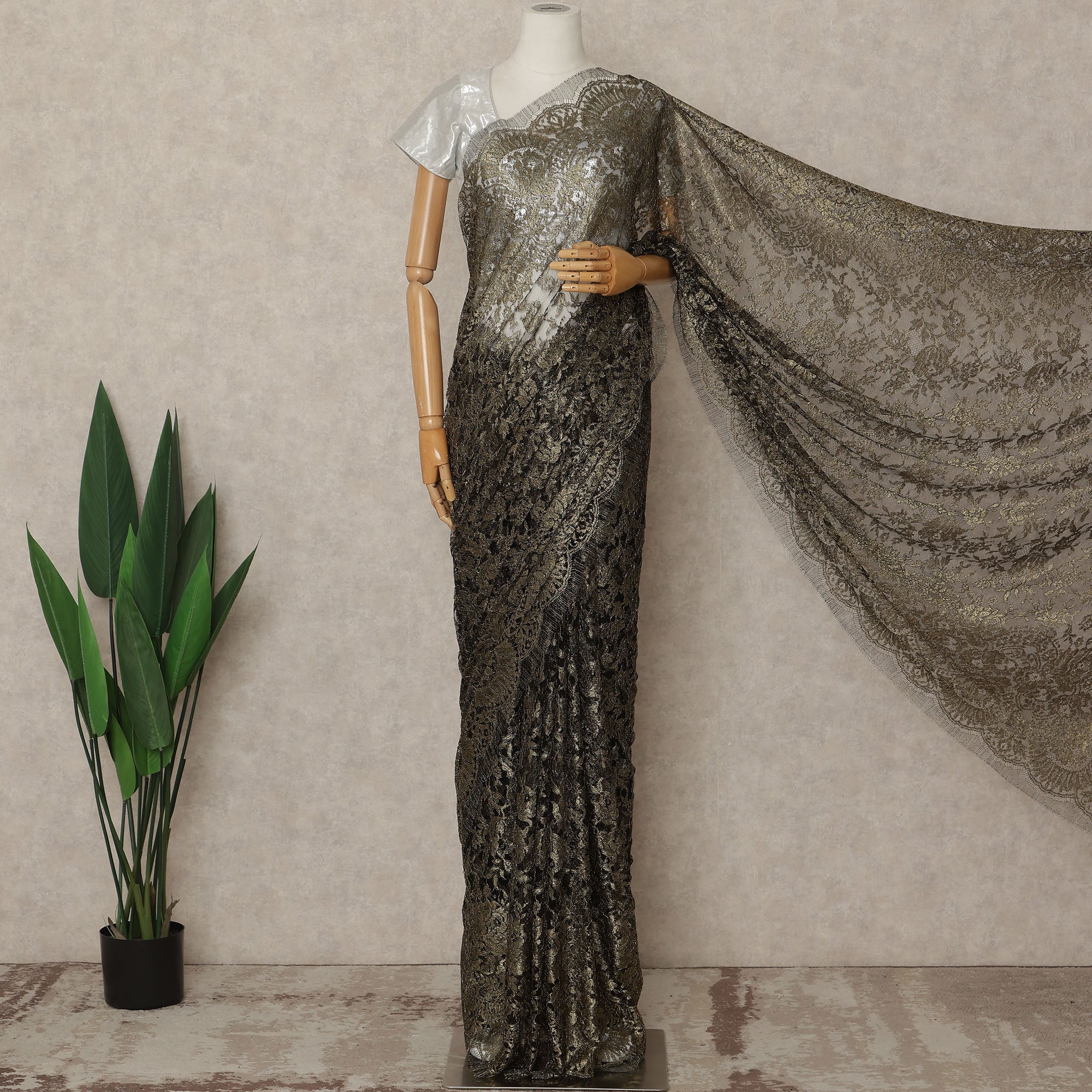 Black And Antique Gold Premium French Metallic Chantilly Saree Lace 5.5 Mtrs 110 Cms Width France-D27769