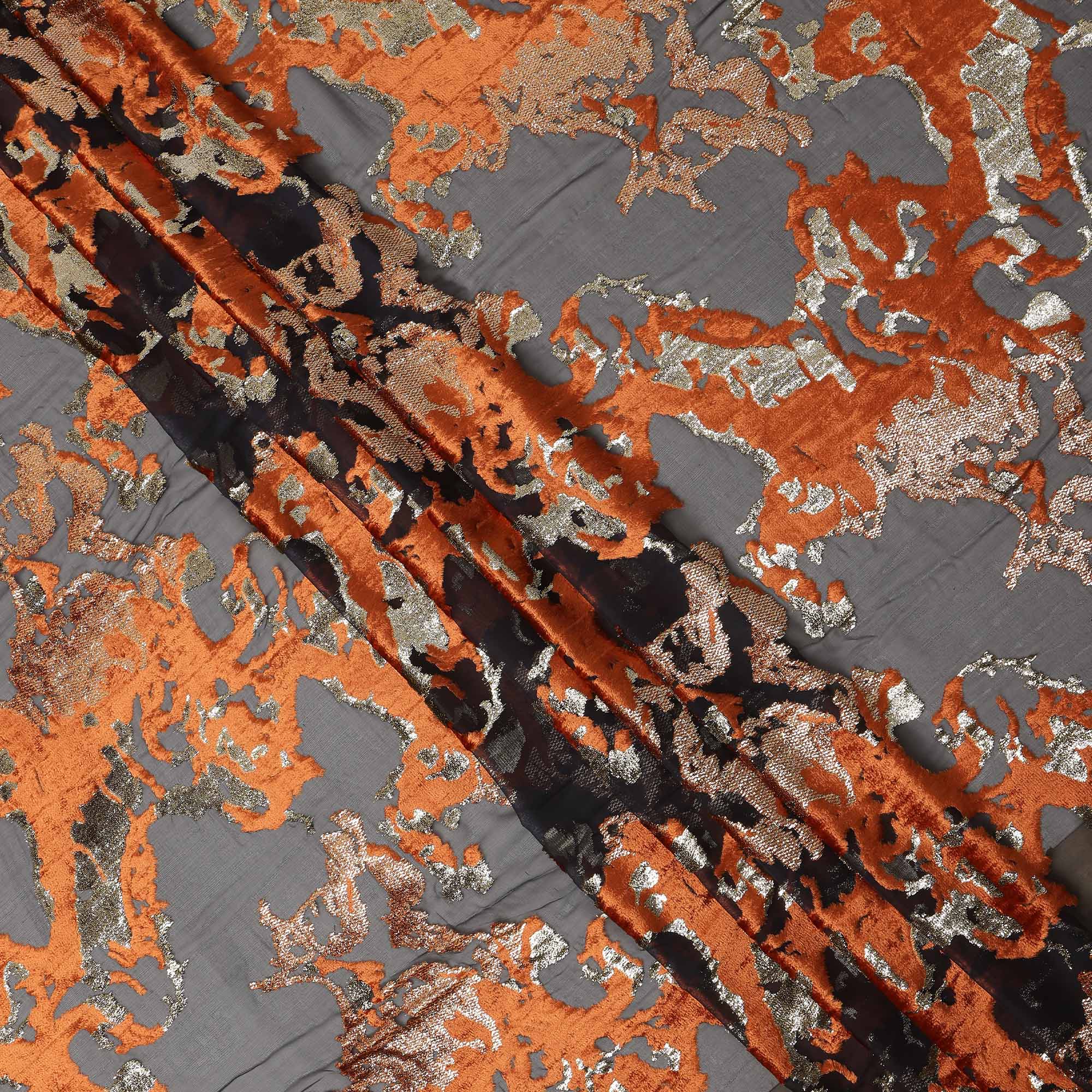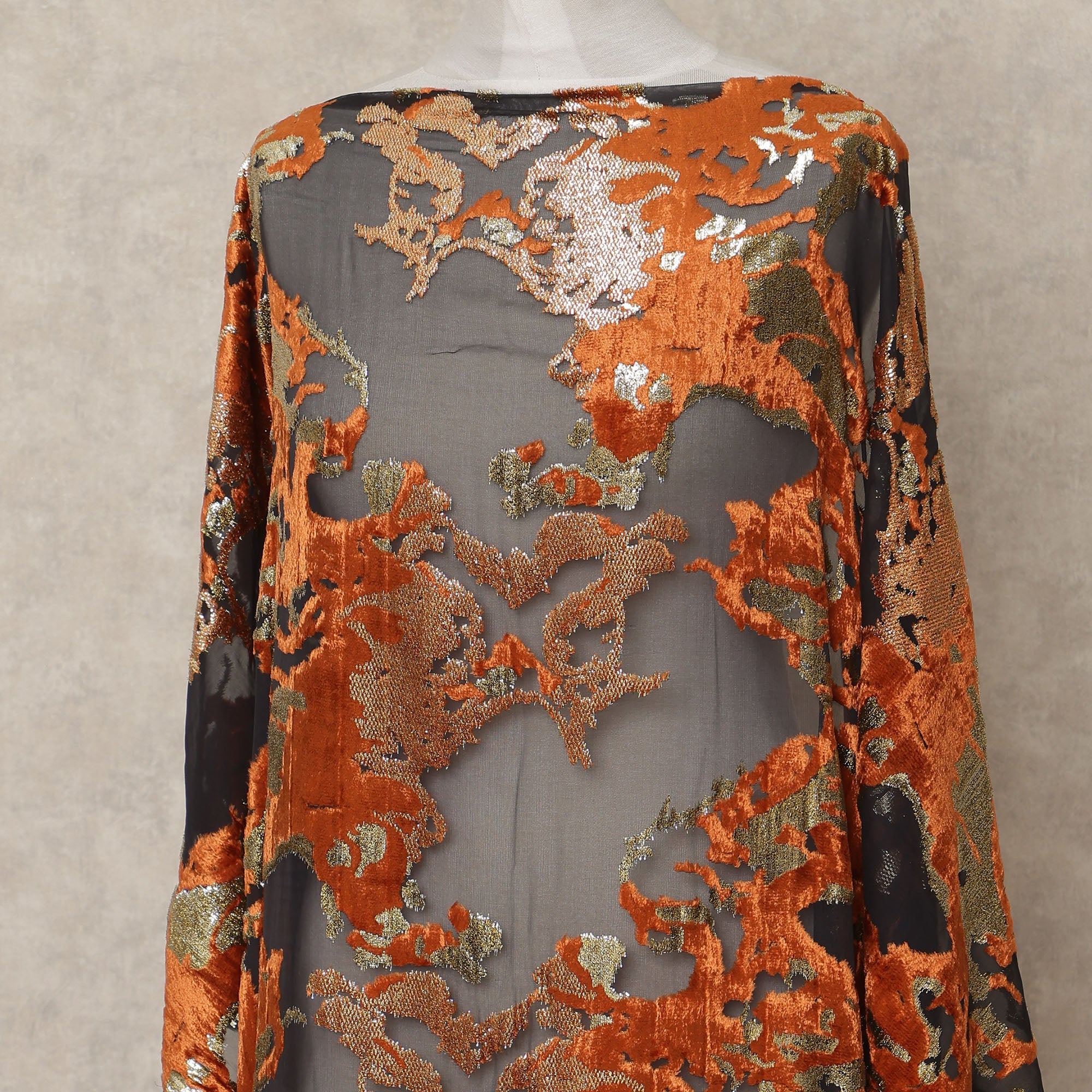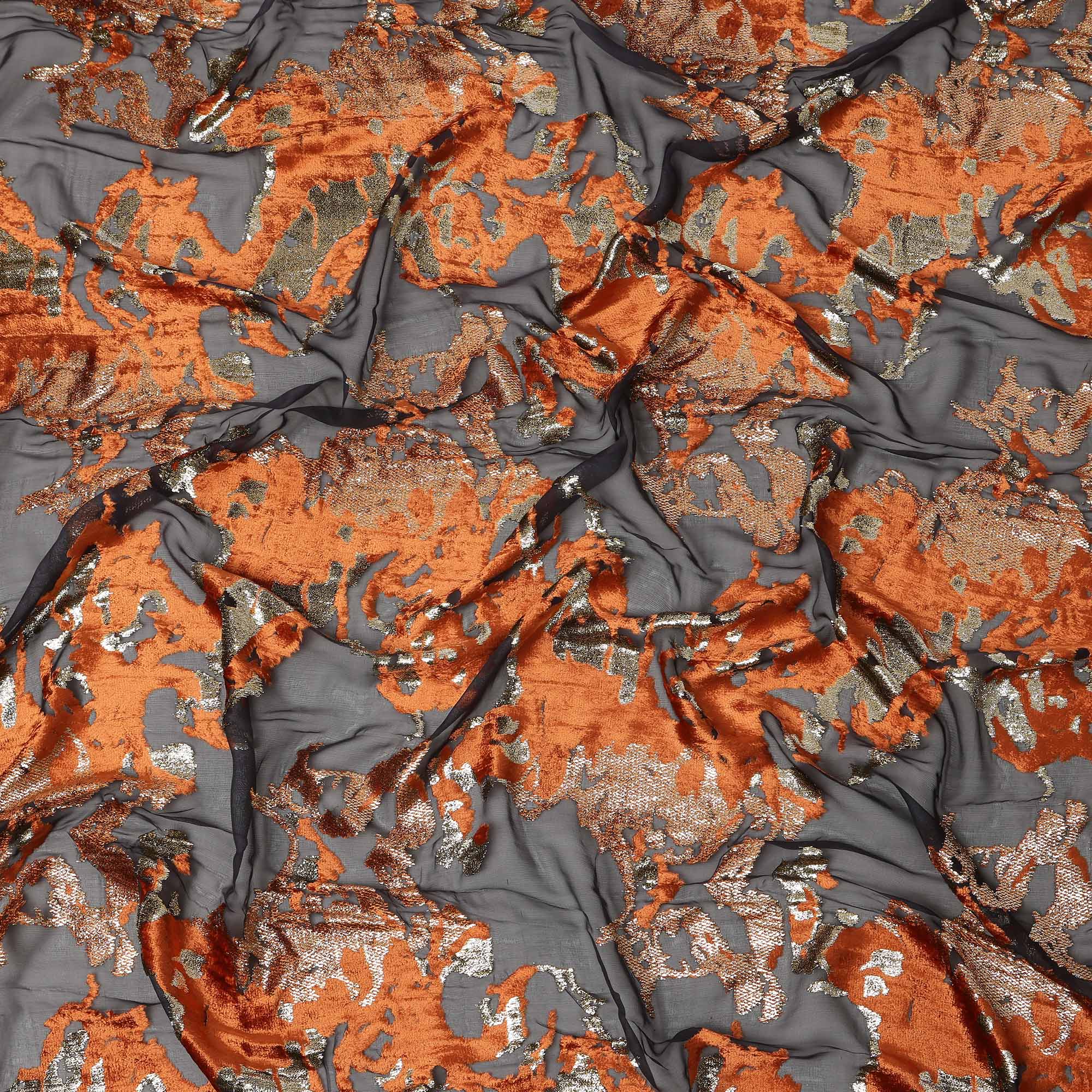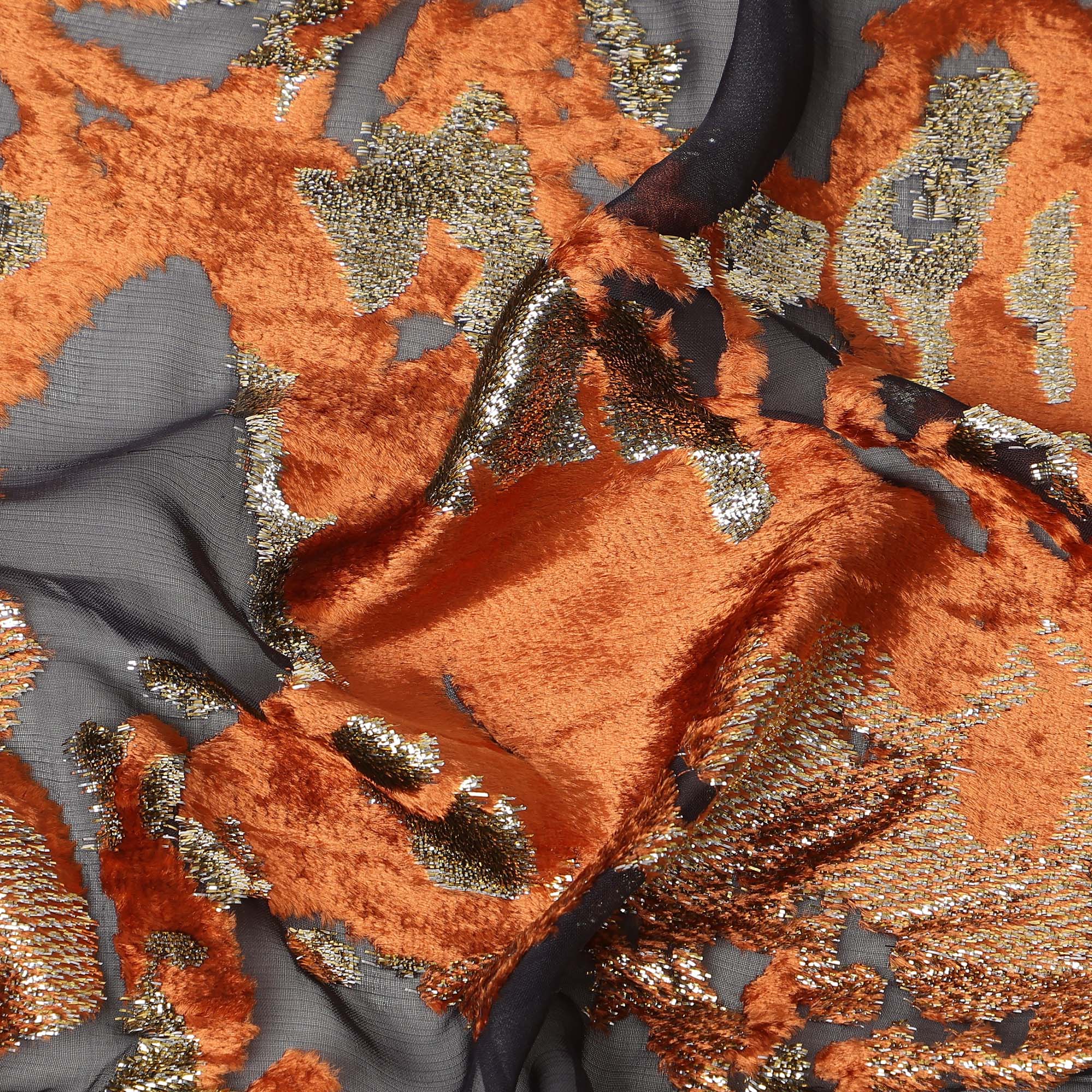 Black and Copper Traditional Somali Silk Chiffon Velvet Makmal Dirac Fabric, 140 Cms Width, 3.5 Mtrs Piece, Made in South Korea-D26162