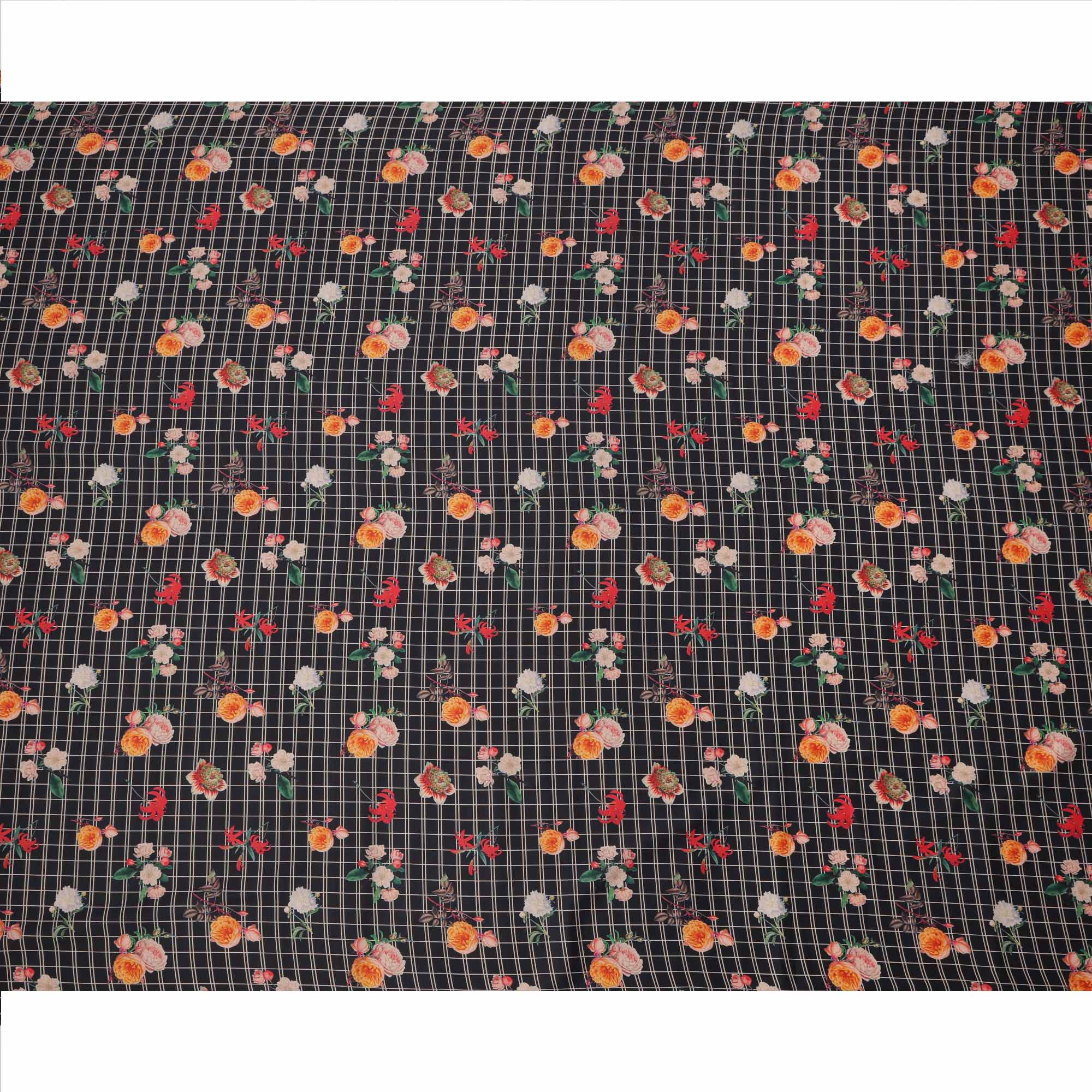 قماش قطني أسود منقوش بنقشة زهور، عرض 110 سم، صنع في الهند - D23536