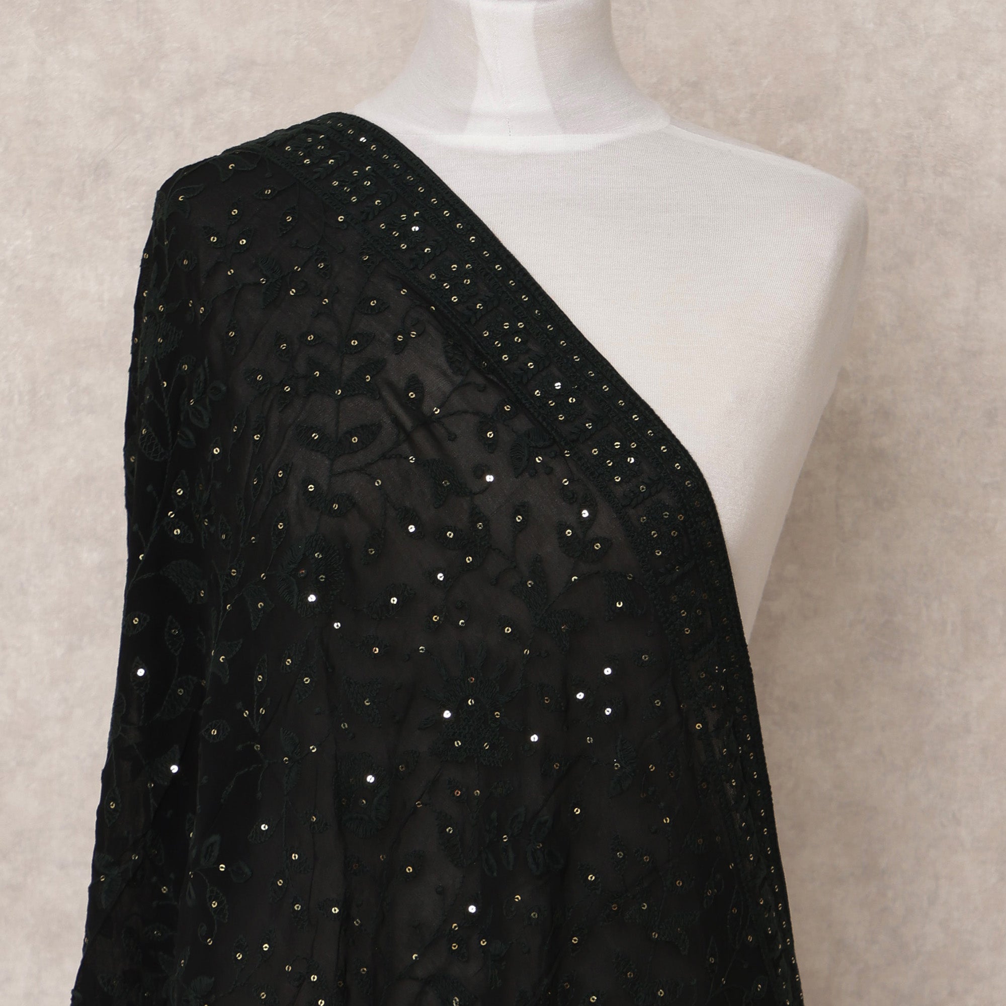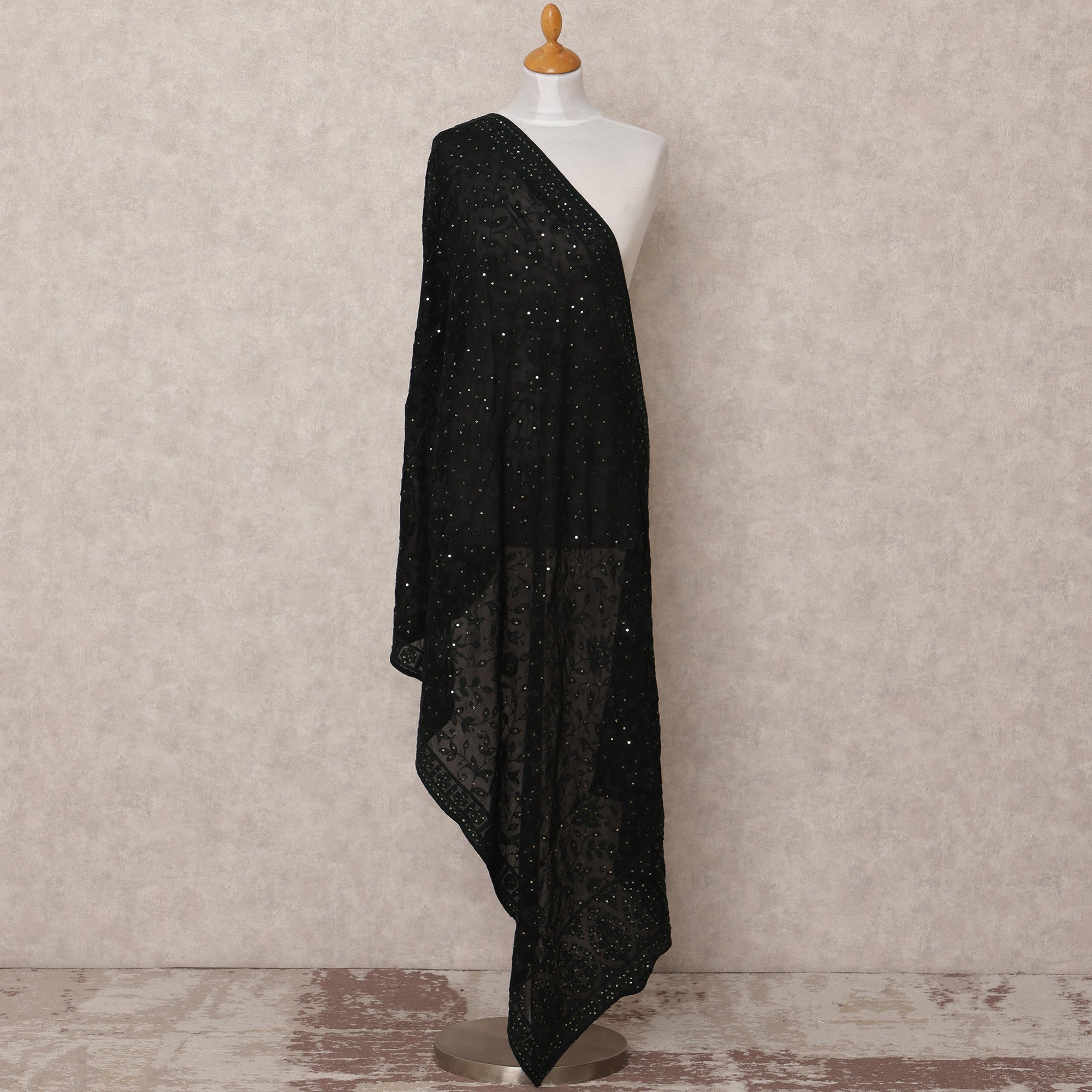 دوباتا جورجيت صناعي مطرز بالترتر باللون الأسود، مقاس 210×90 سم، الهند - D24829