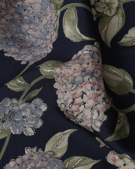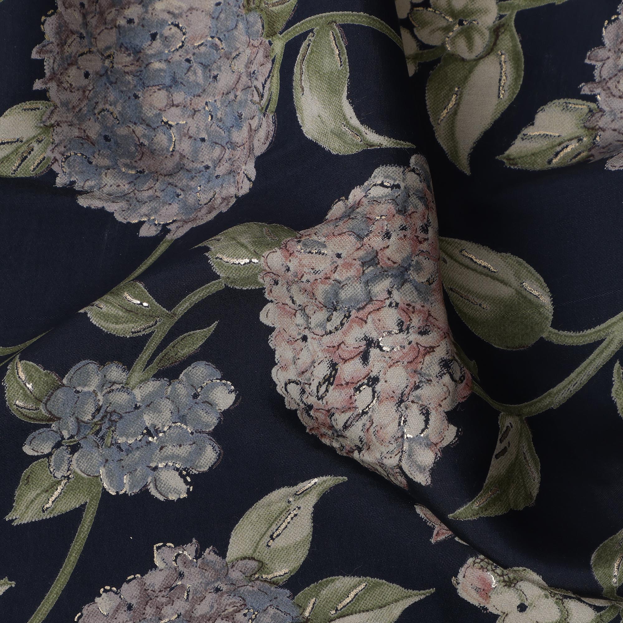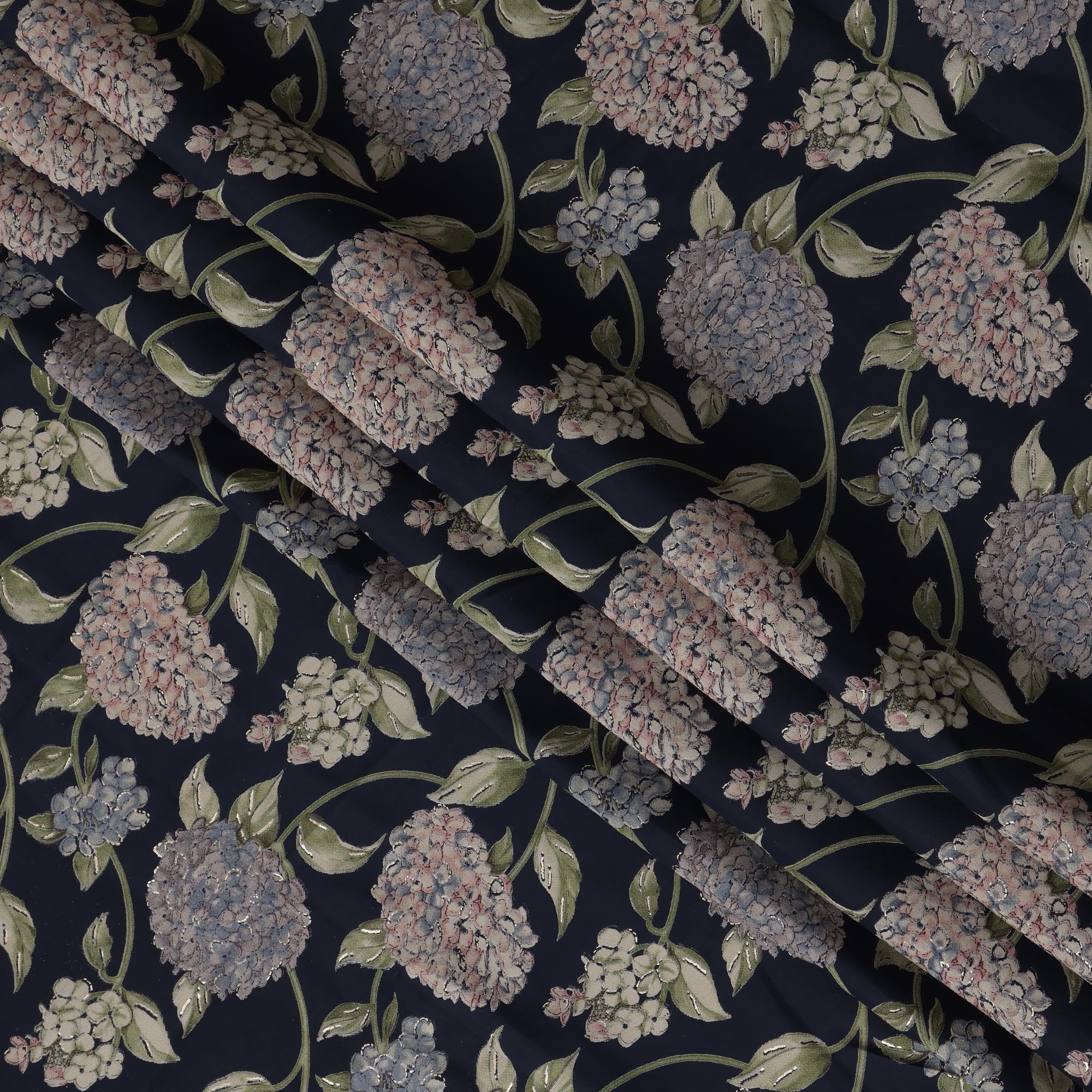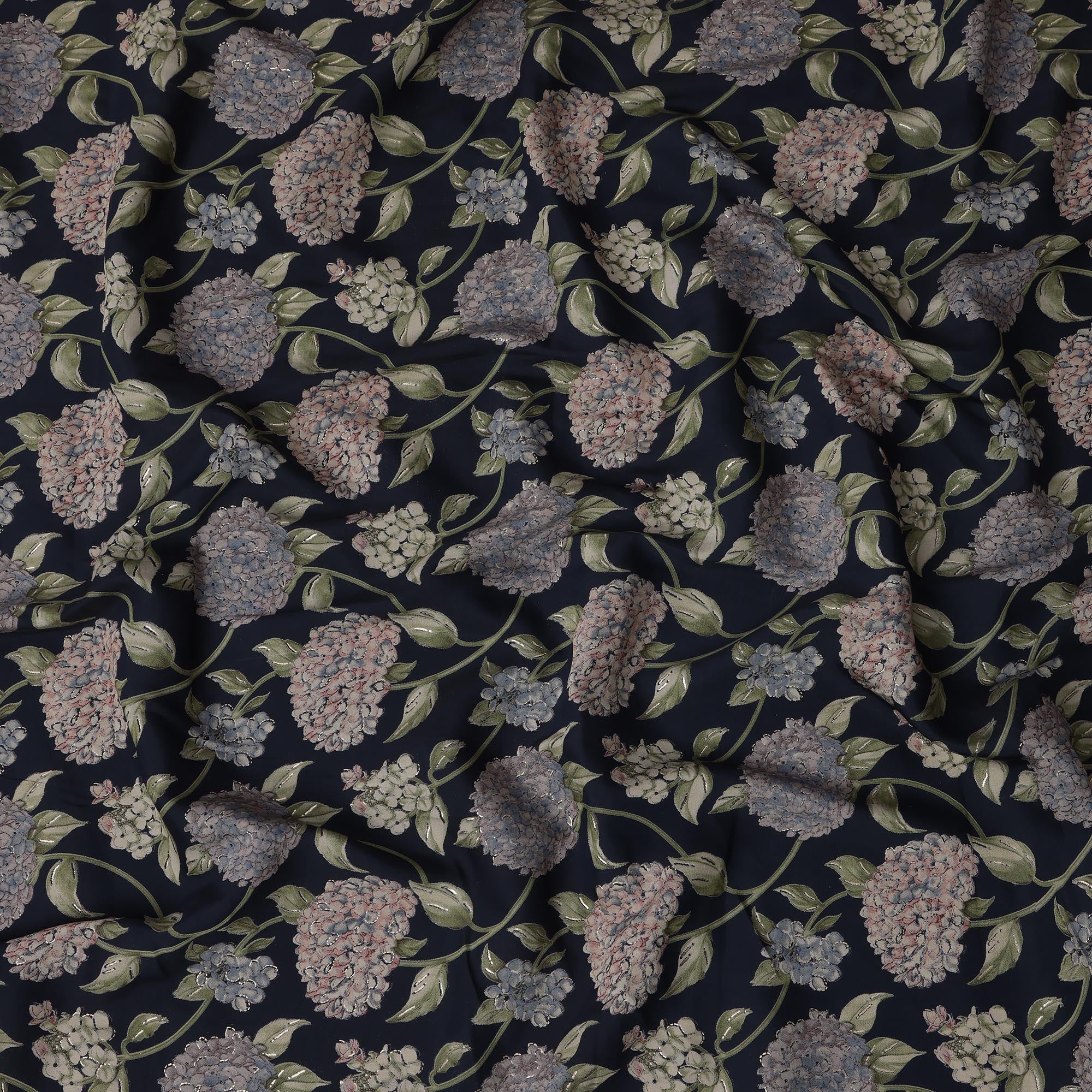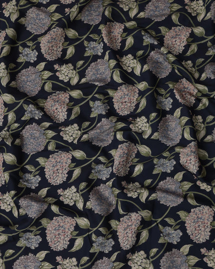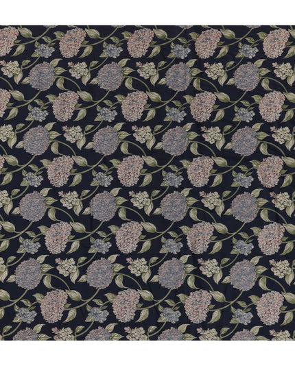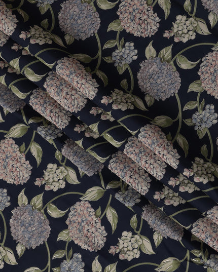 قماش فيسكوز أسود ممزوج بنقشة زهور الكوبية بألوان الباستيل، عرض 110 سم، صنع في الهند - D22802