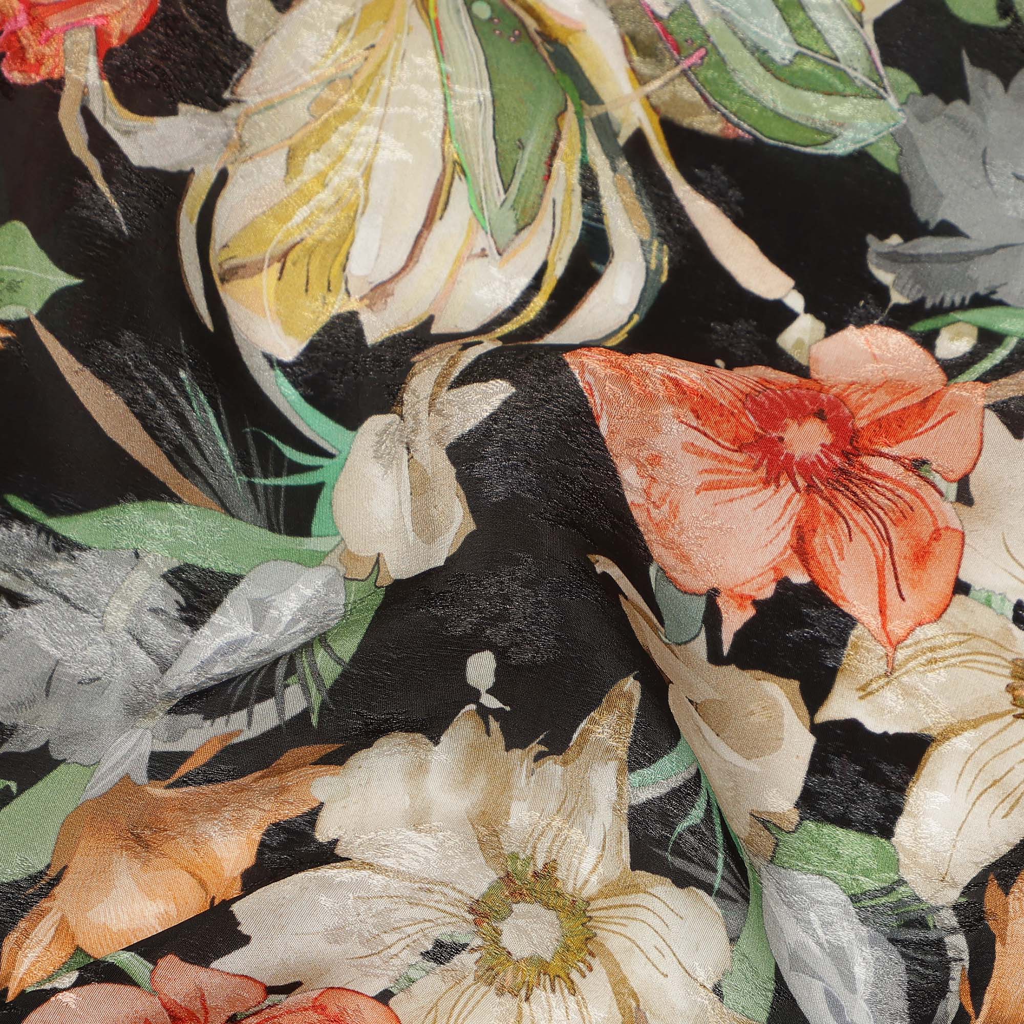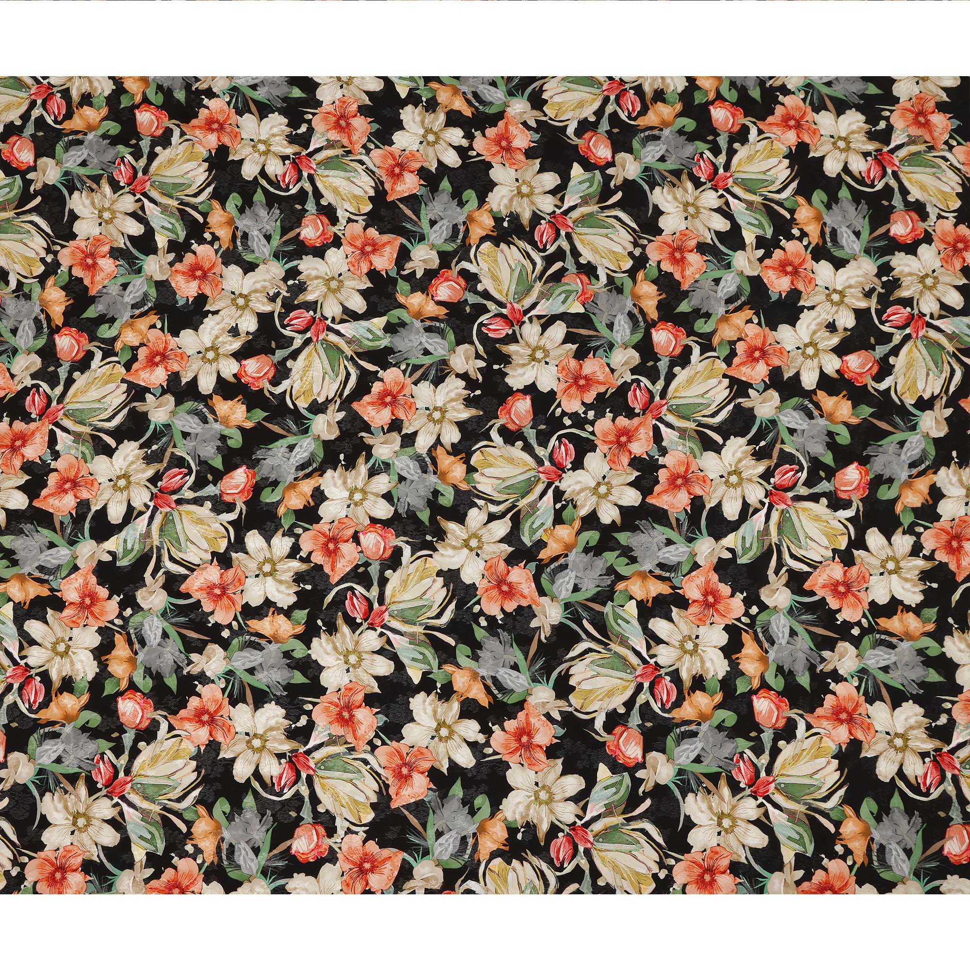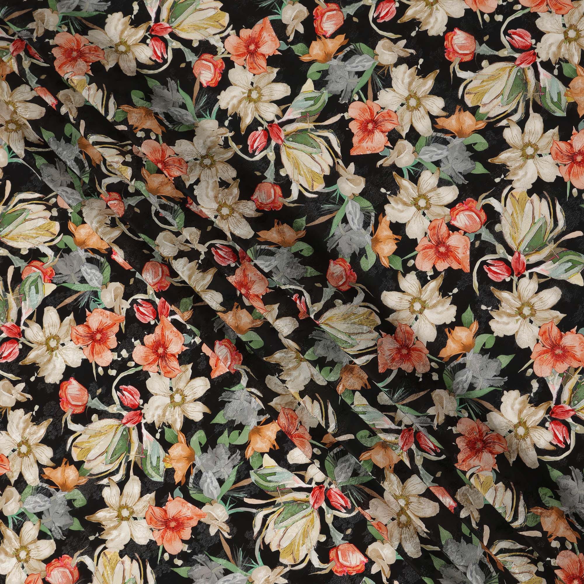 • Black Floral Printed Viscose Fabric Soft Flowing Lightweight Dress Material for Apparel Sewing Craft Use 110 Cms Width India Origin-D27310