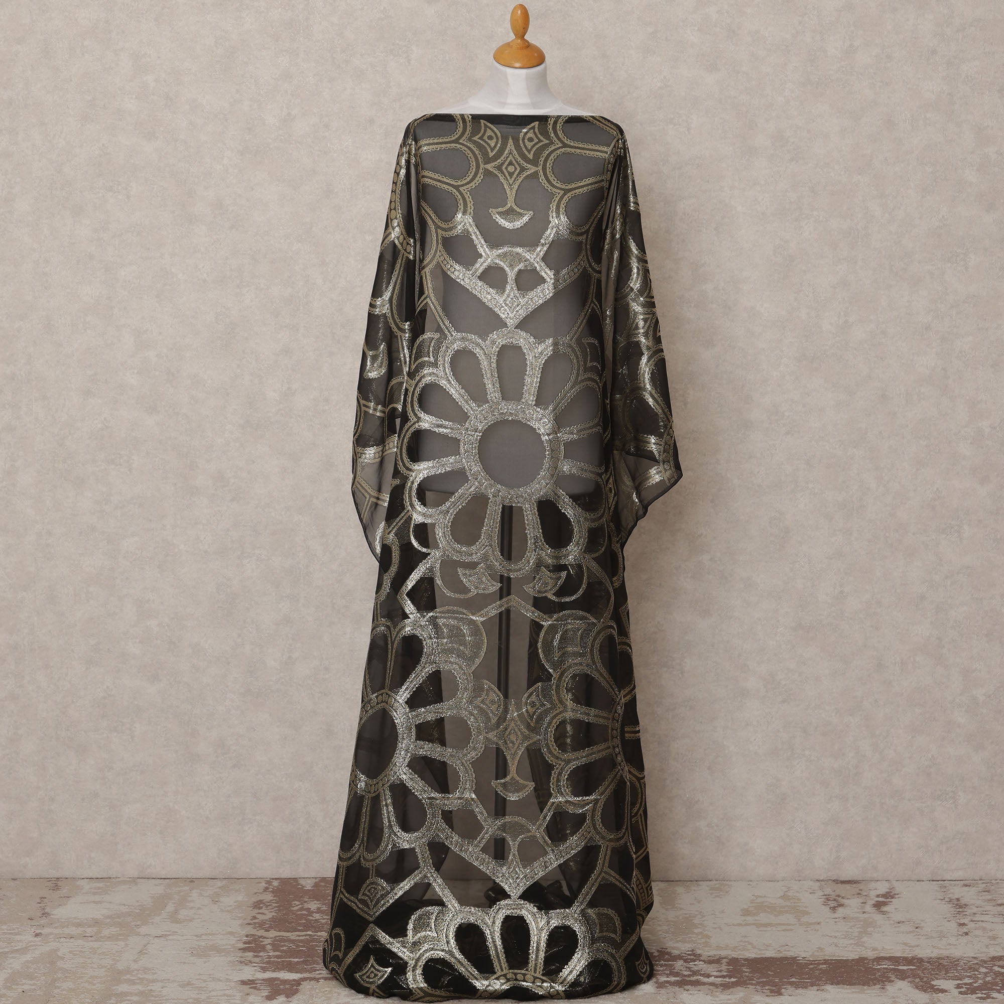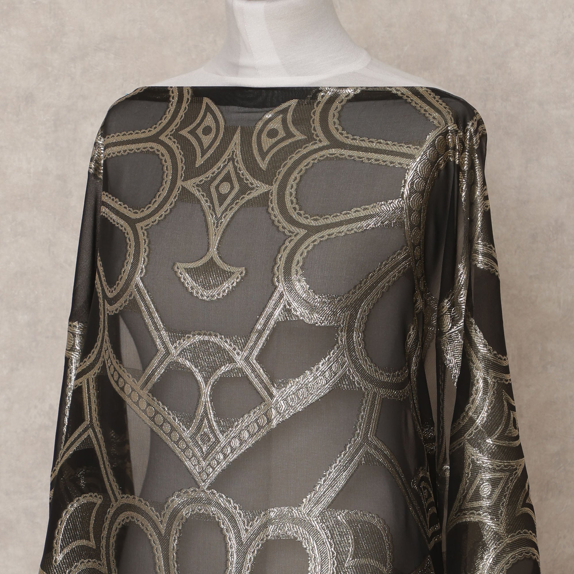 شيفون حرير صومالي أسود فاخر مع لمسة نهائية من اللوريكس المعدني