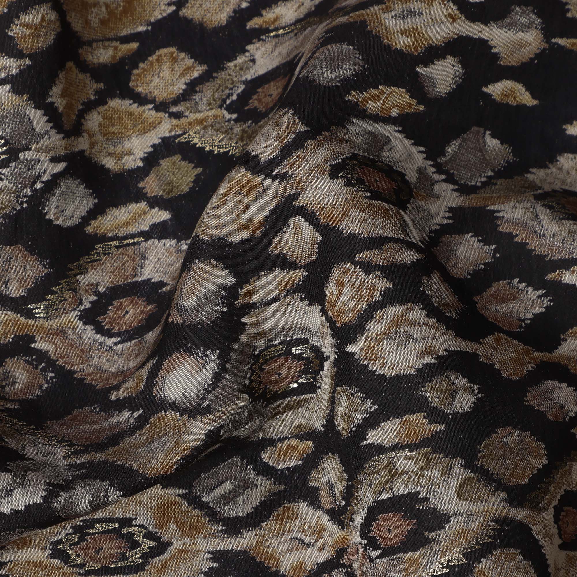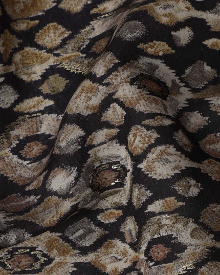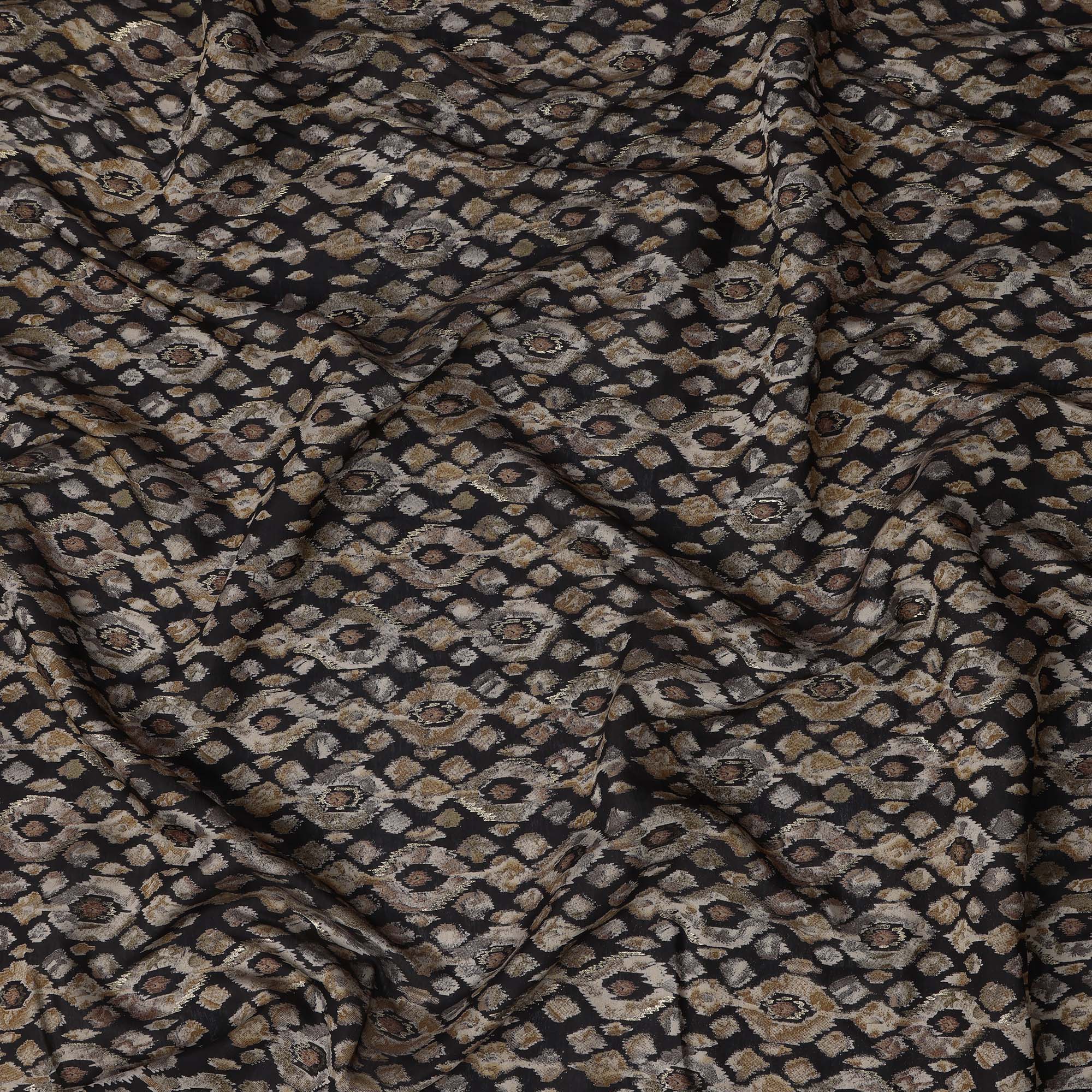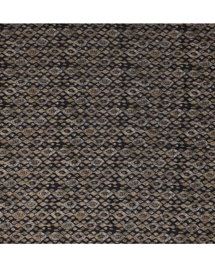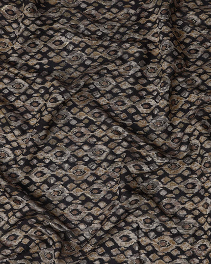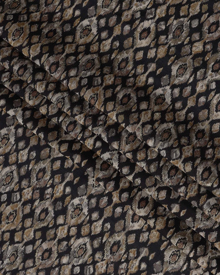 قماش فيسكوز مخلوط مطبوع عليه نقشة ماسية مستوحاة من الإيكات باللون الأسود، بدرجات اللون البيج الترابي والبني الداكن، عرض 110 سم، صنع في الهند - D22806