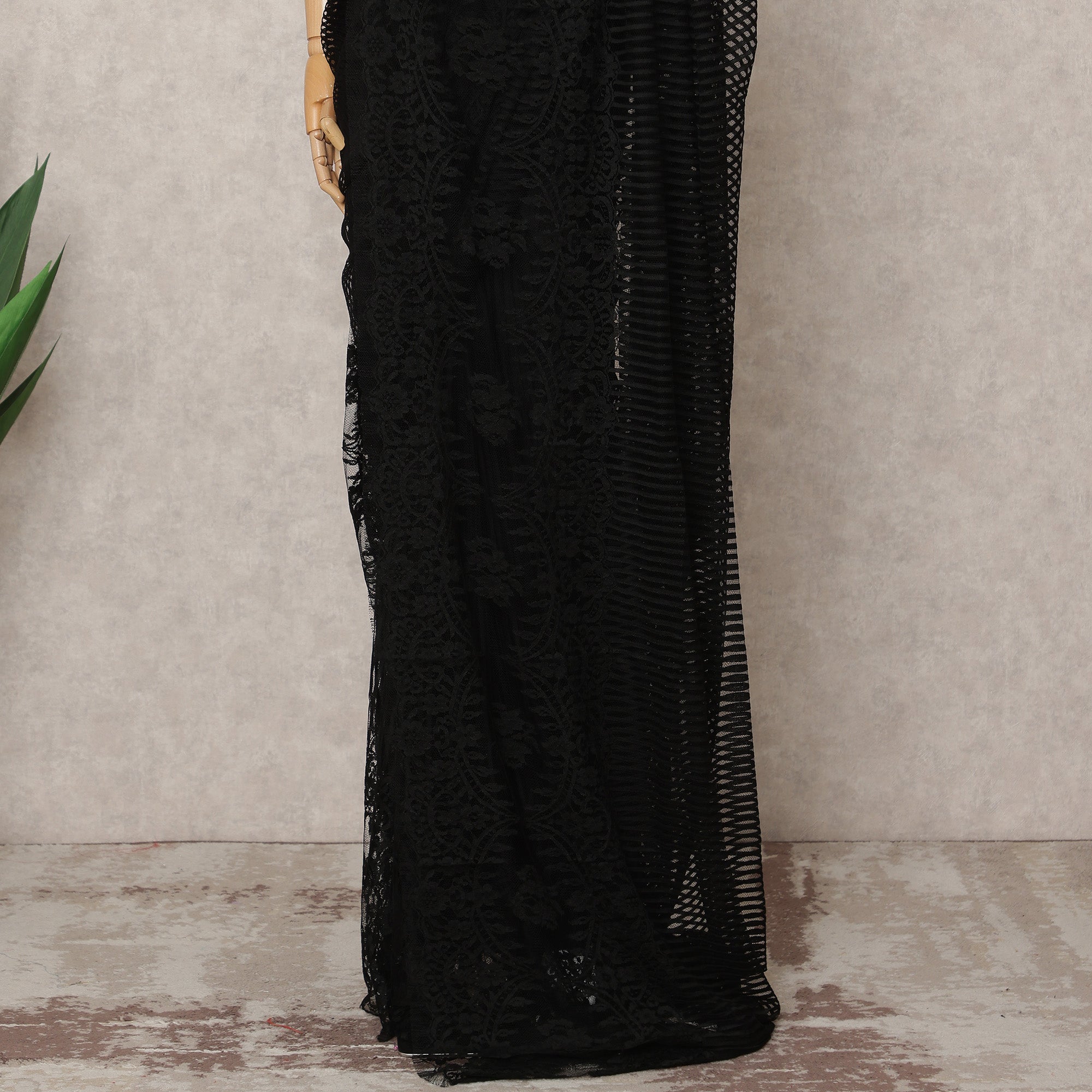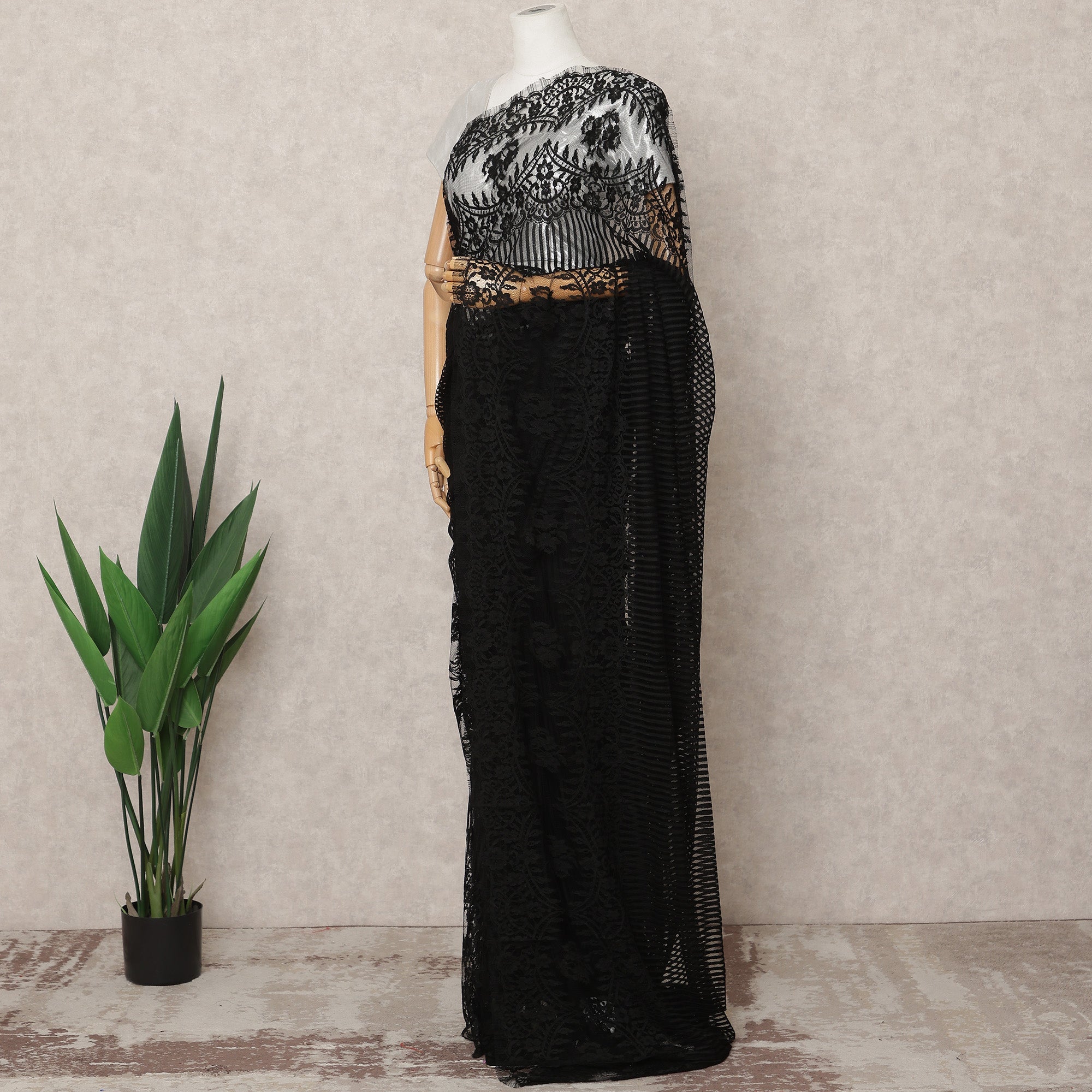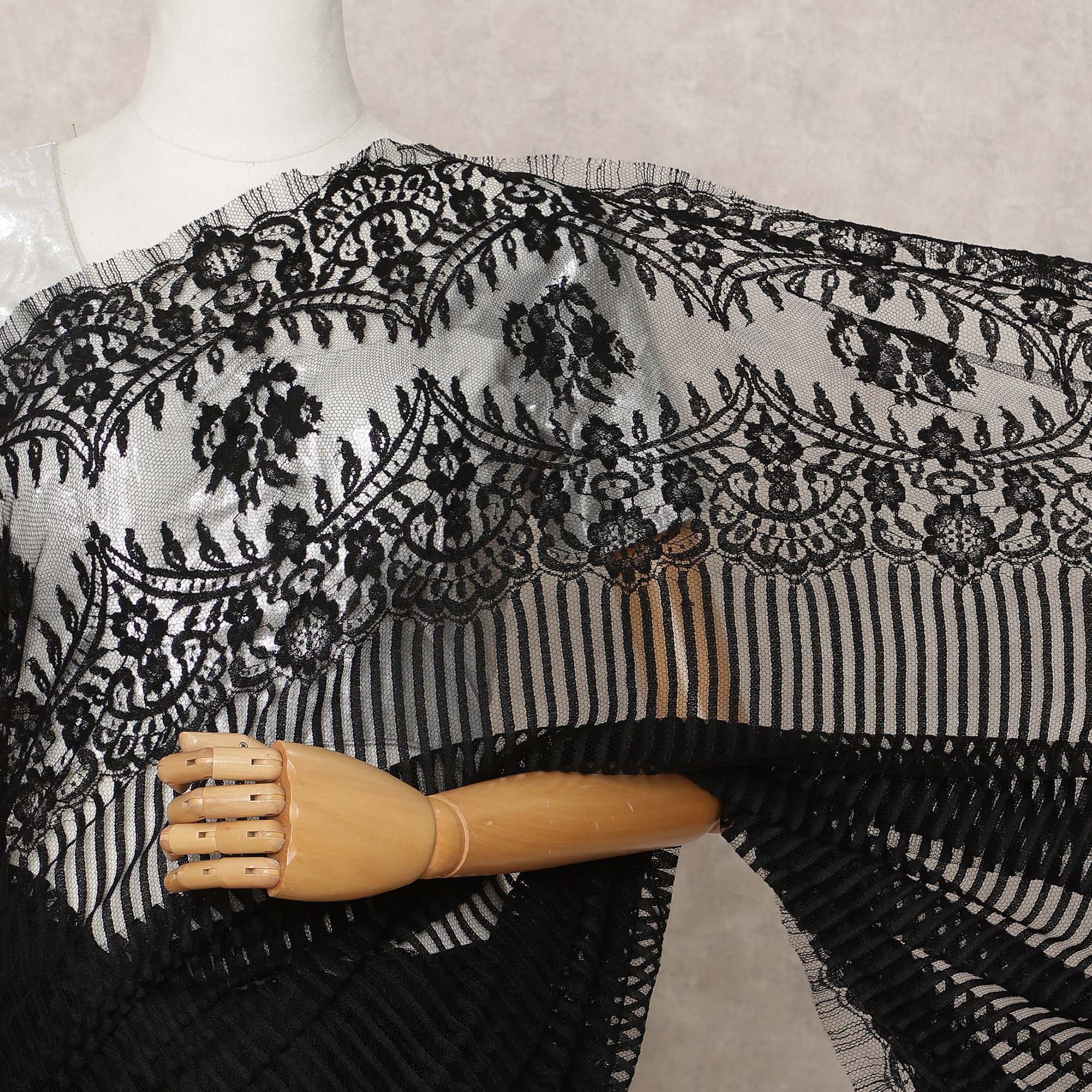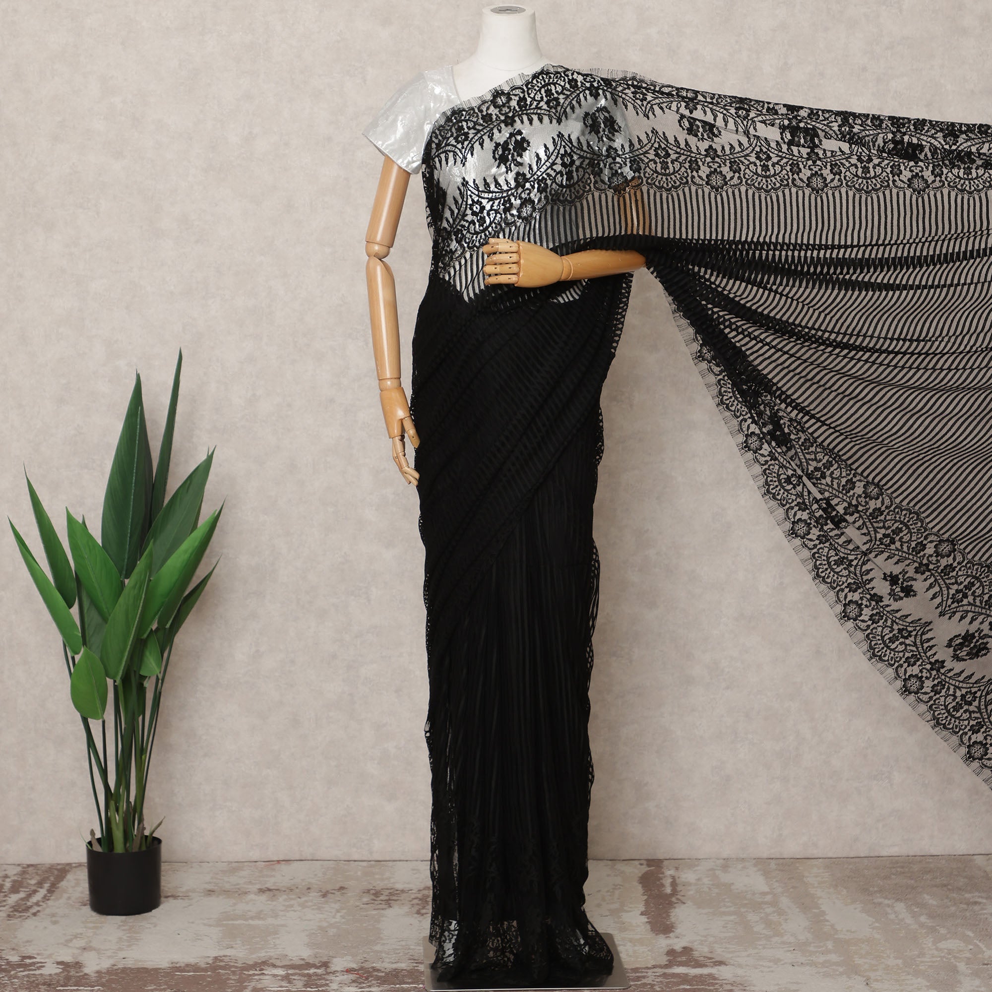 Black Premium French Chantilly Lace Saree Fabric 5.5 Mtrs with 110 Cms Width – Imported from France-D25669