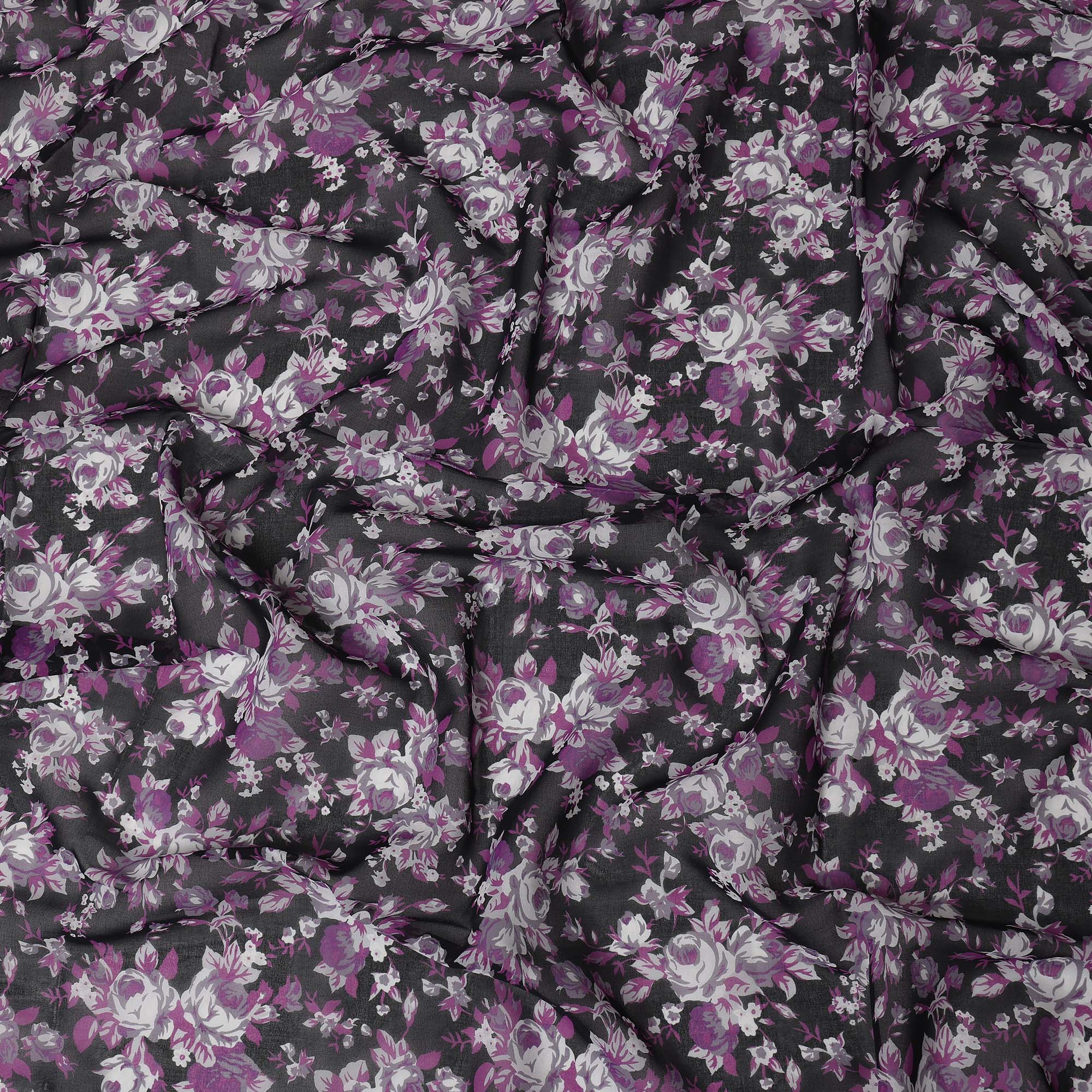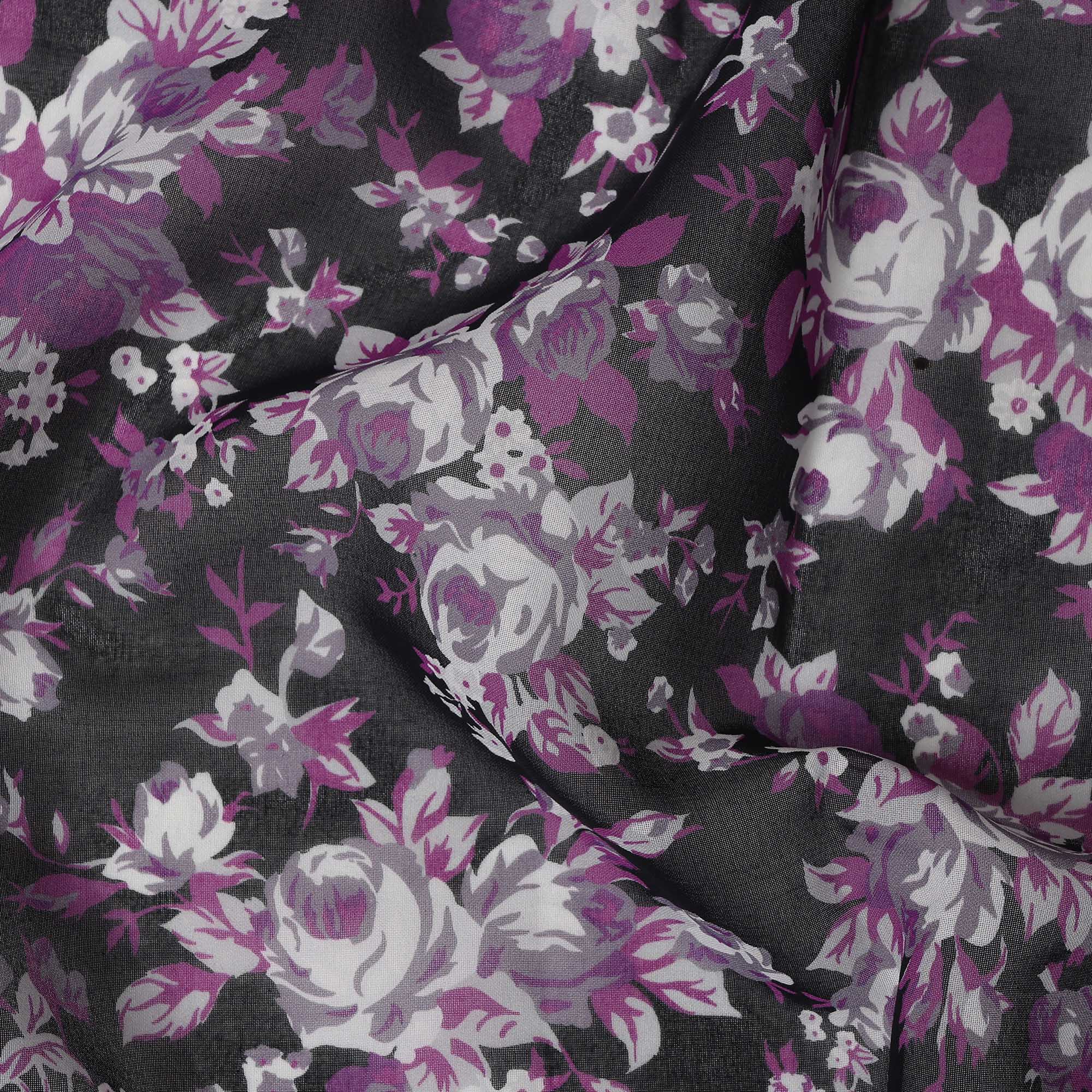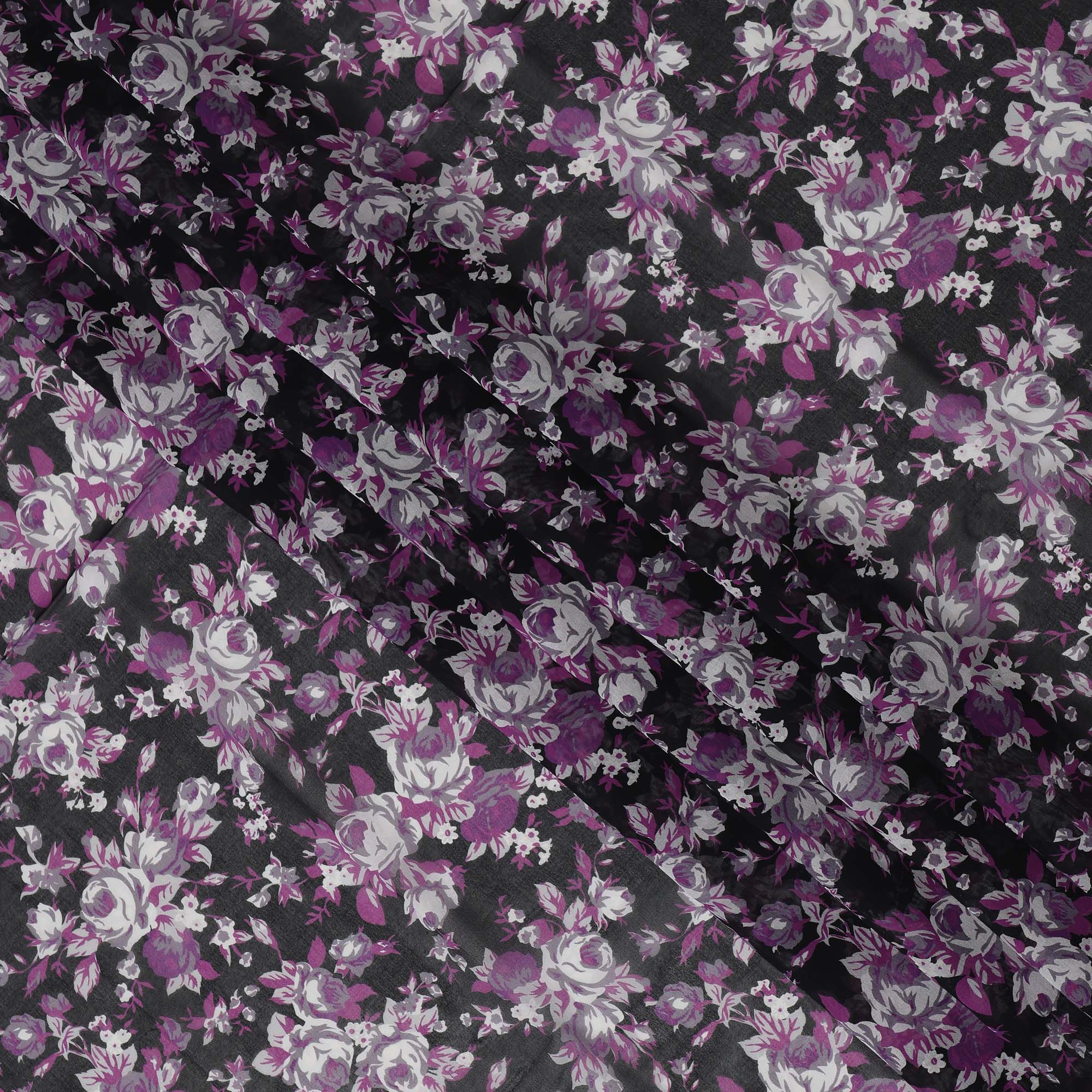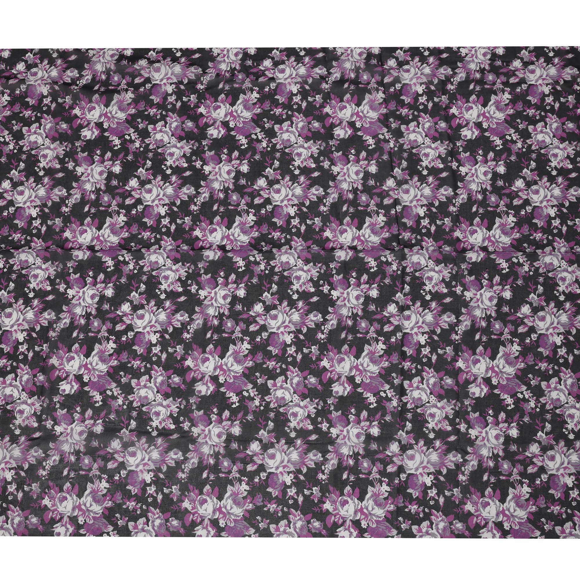 Black & Purple Cotton Voile Traditional Sudanese Thobe with Floral Print, 4.5 Mtrs Piece, Width 140 Cms, Made in India-D26463