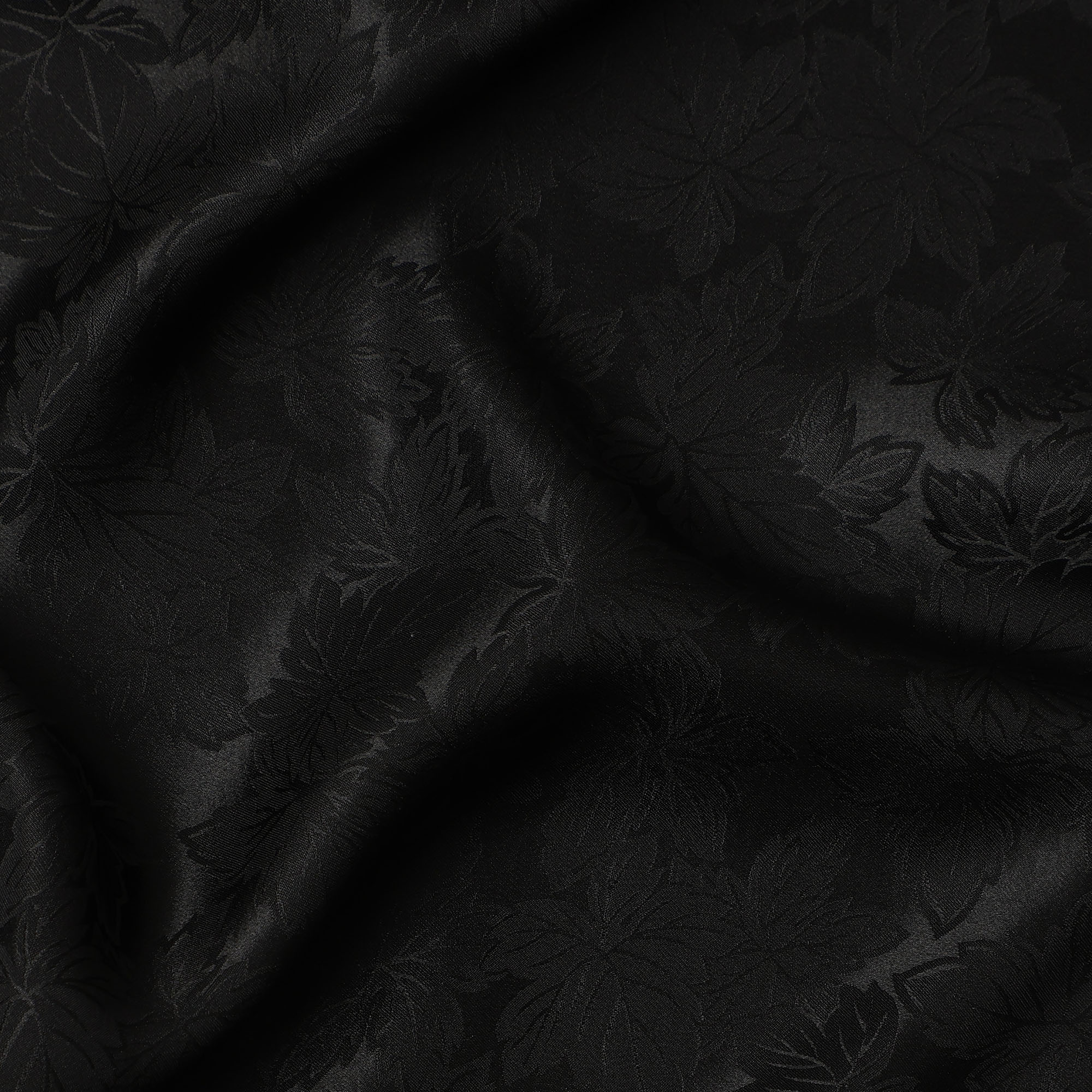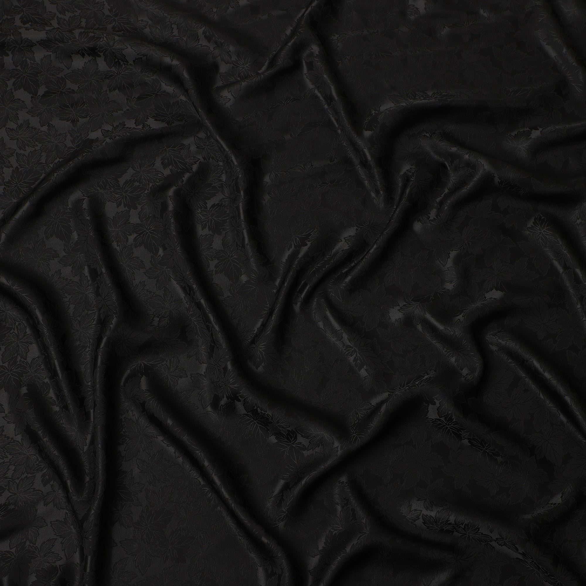 Black Self-Embossed Floral Silk Crepe Fabric with Subtle Gloss Finish and Elegant Textured Weave, 110 Cms Width, Made in China-D25888