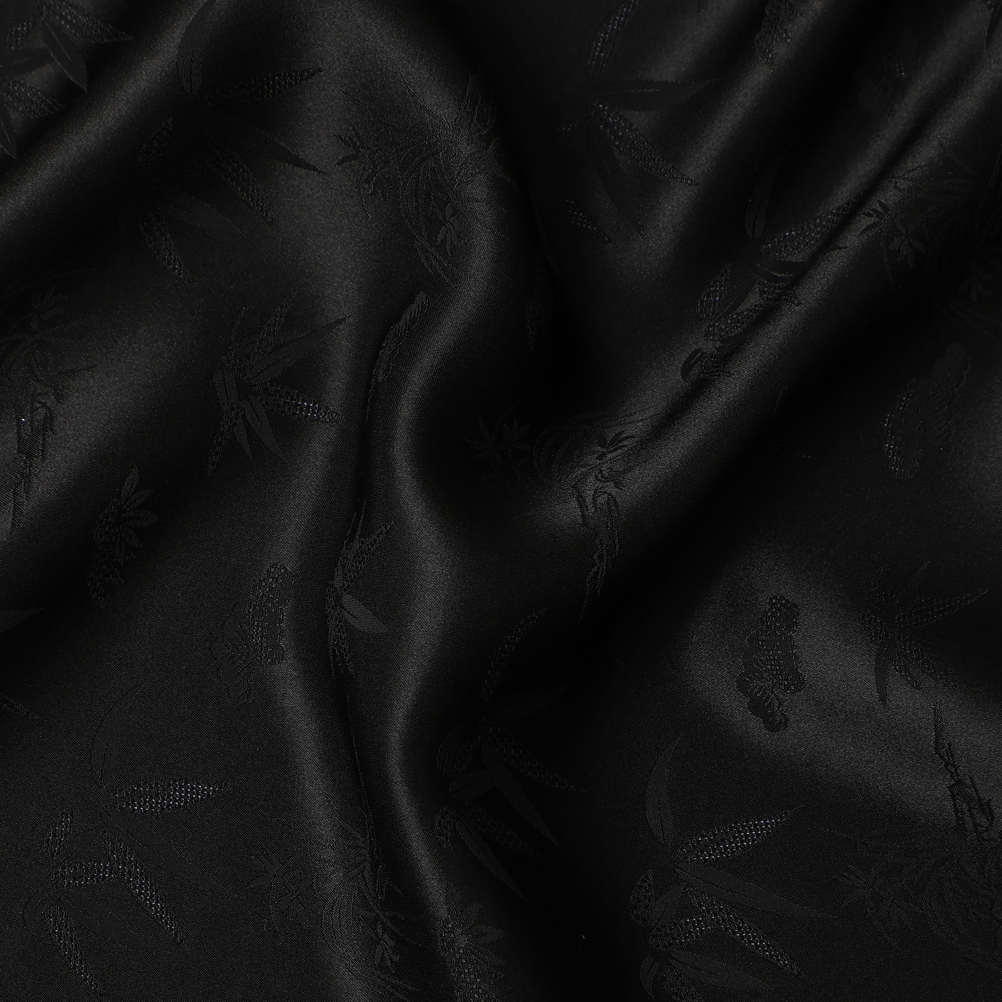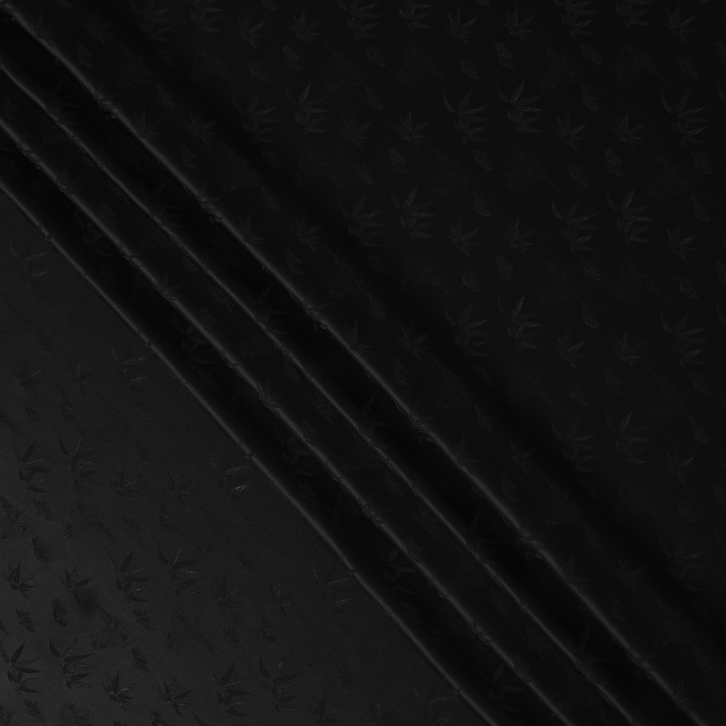 Black silk crepe fabric featuring elegant self-textured leaf motifs