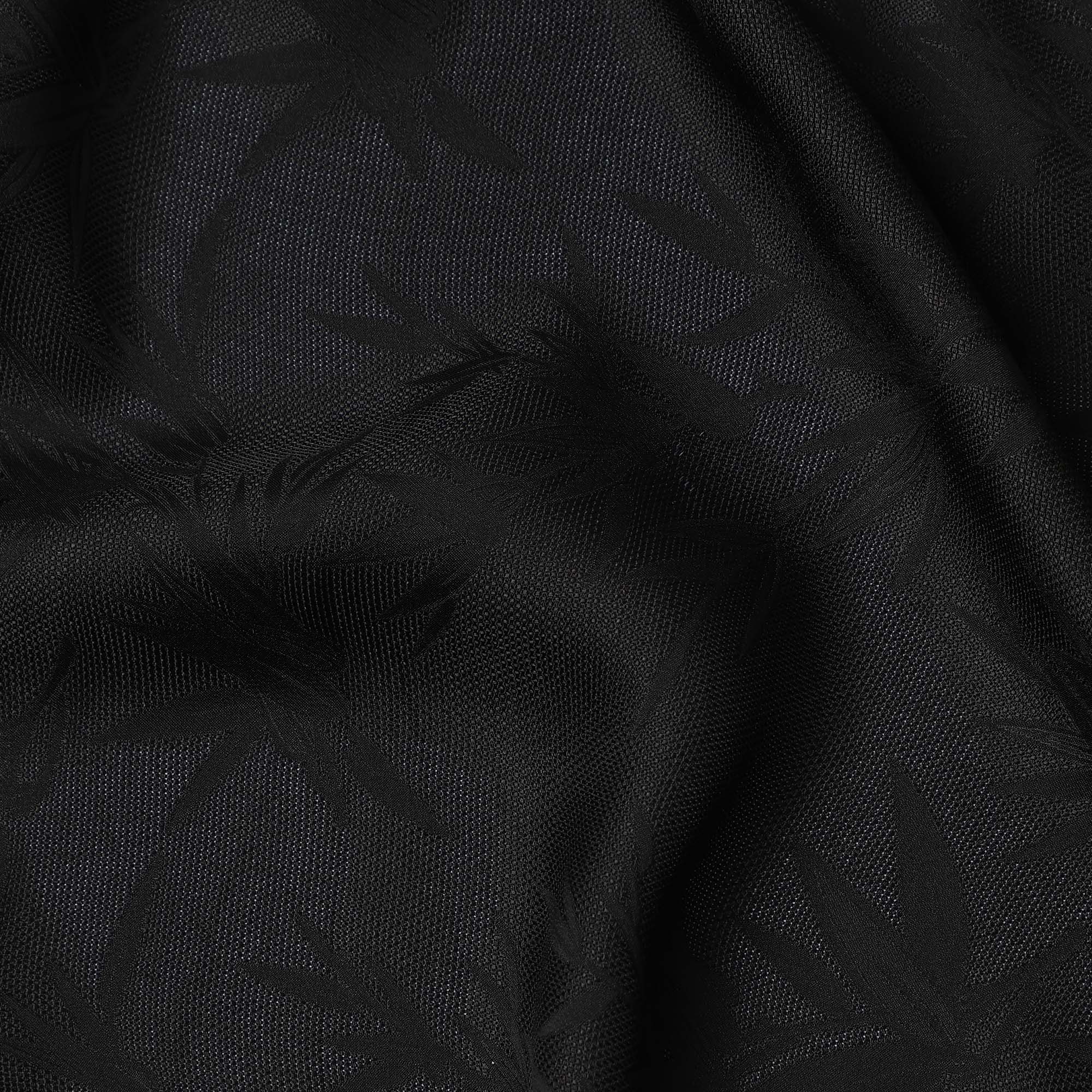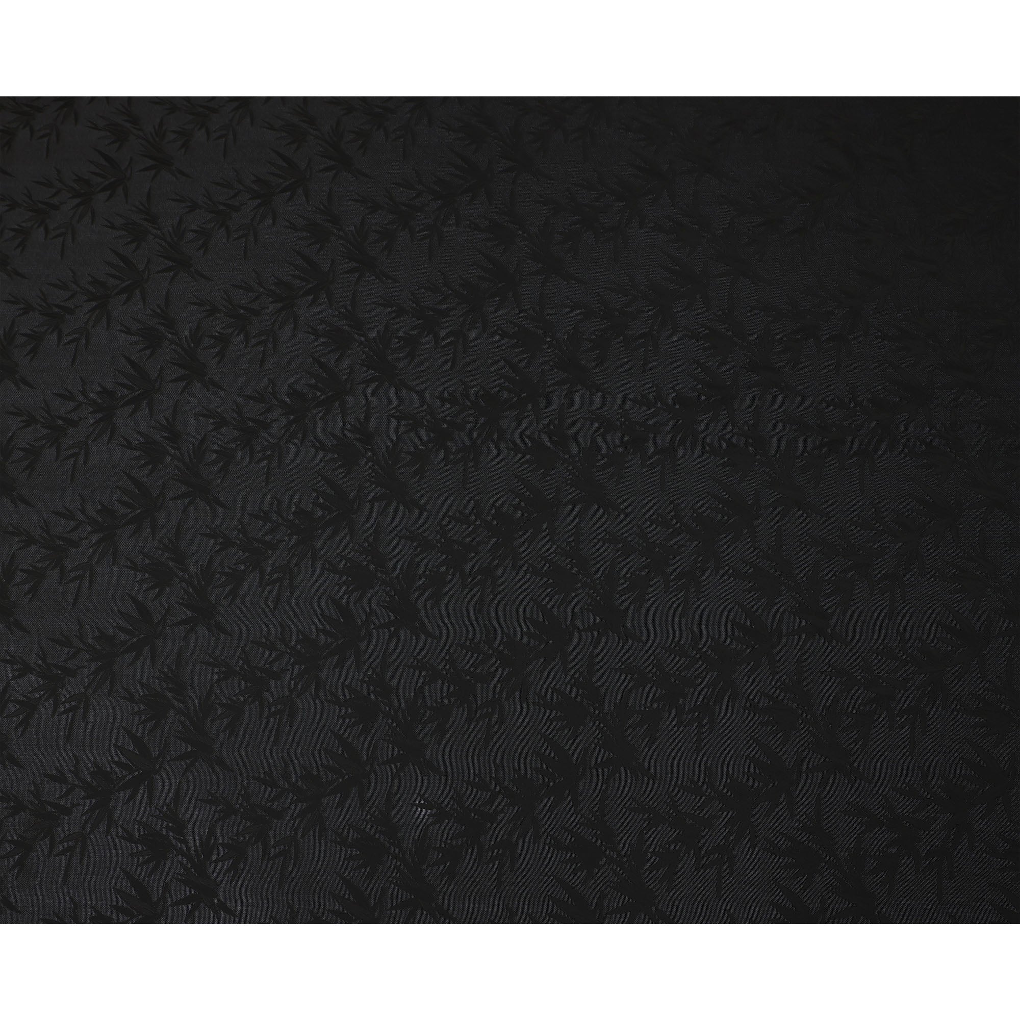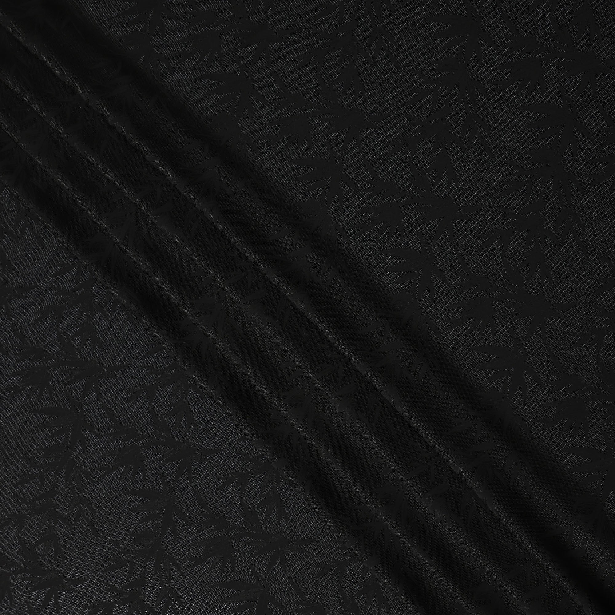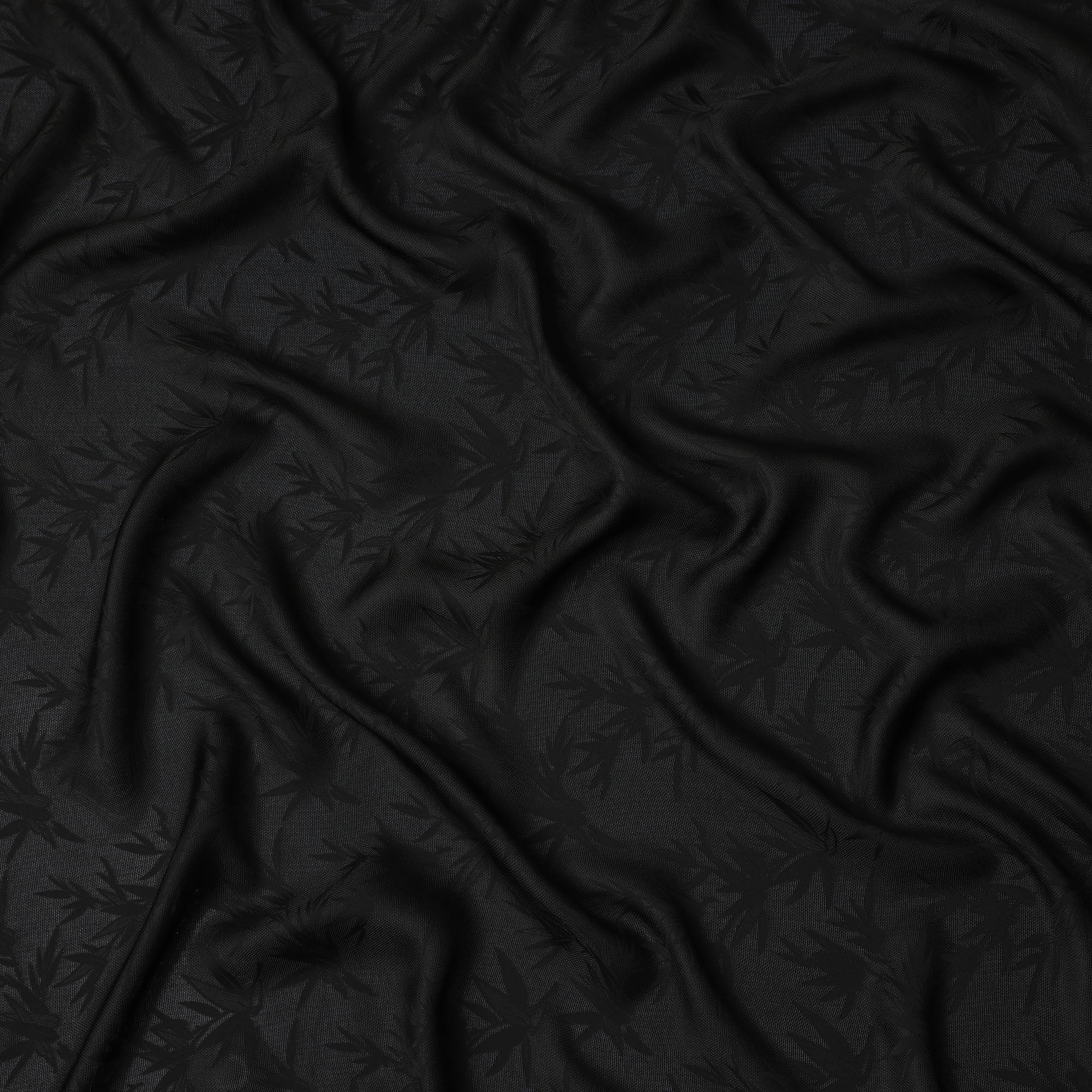 Black silk crepe fabric featuring elegant self-woven leaf patterns