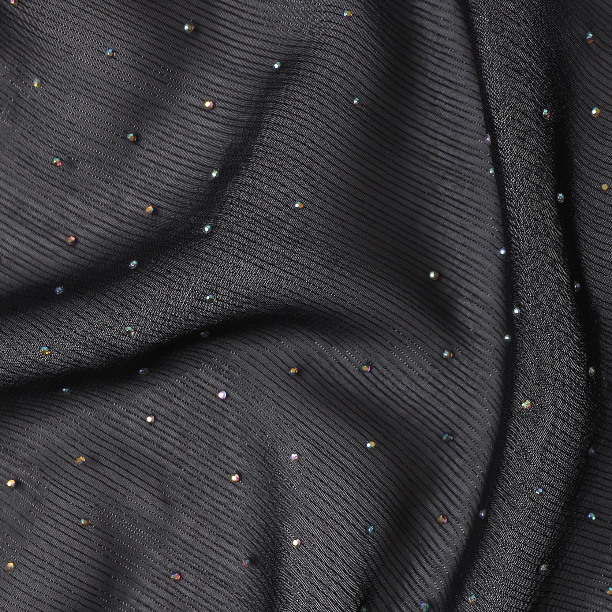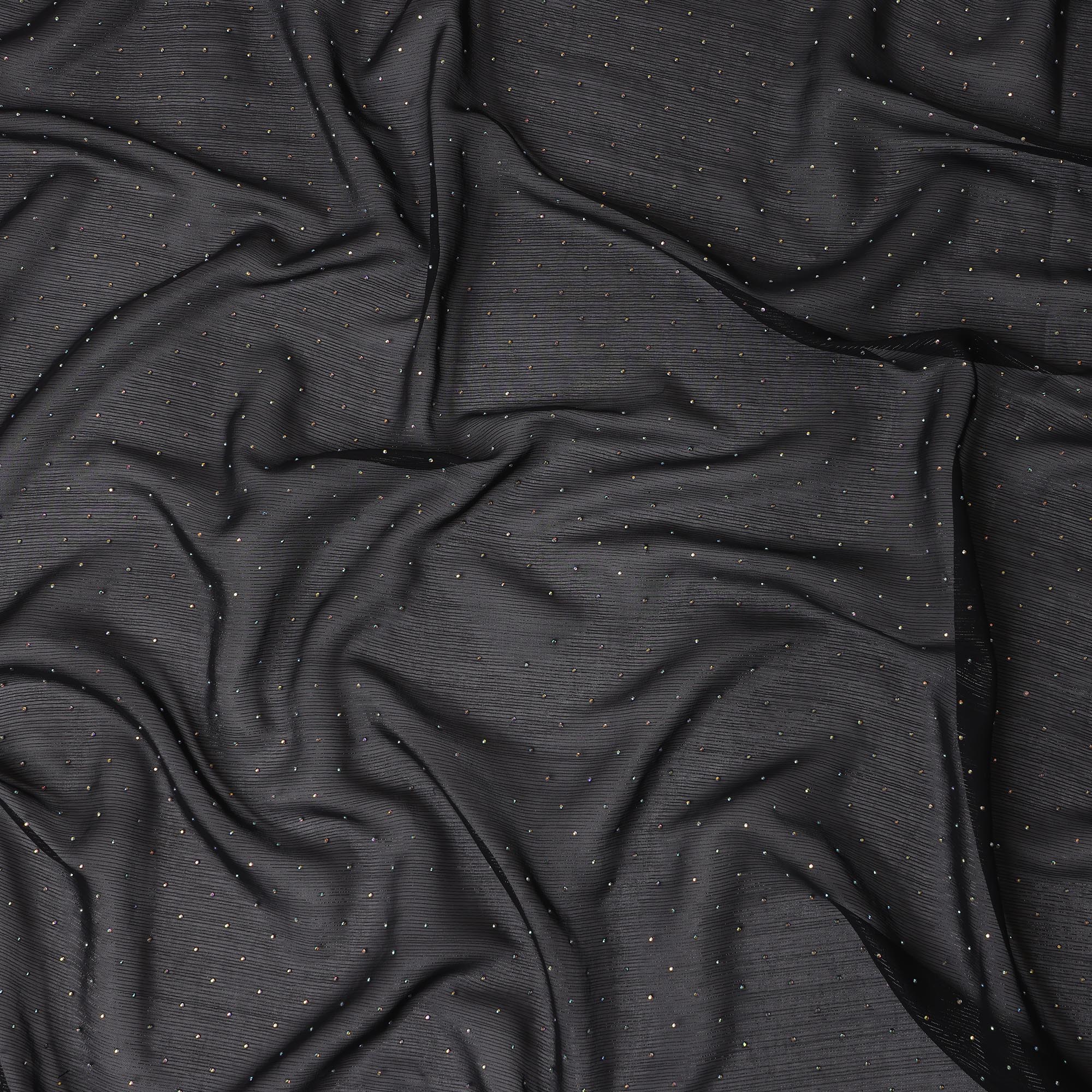 Black Synthetic Chiffon Traditional Sudanese Thobe with Stone Work, 4.5 Mtrs Piece, Width 110 Cms, Made in India-D26443