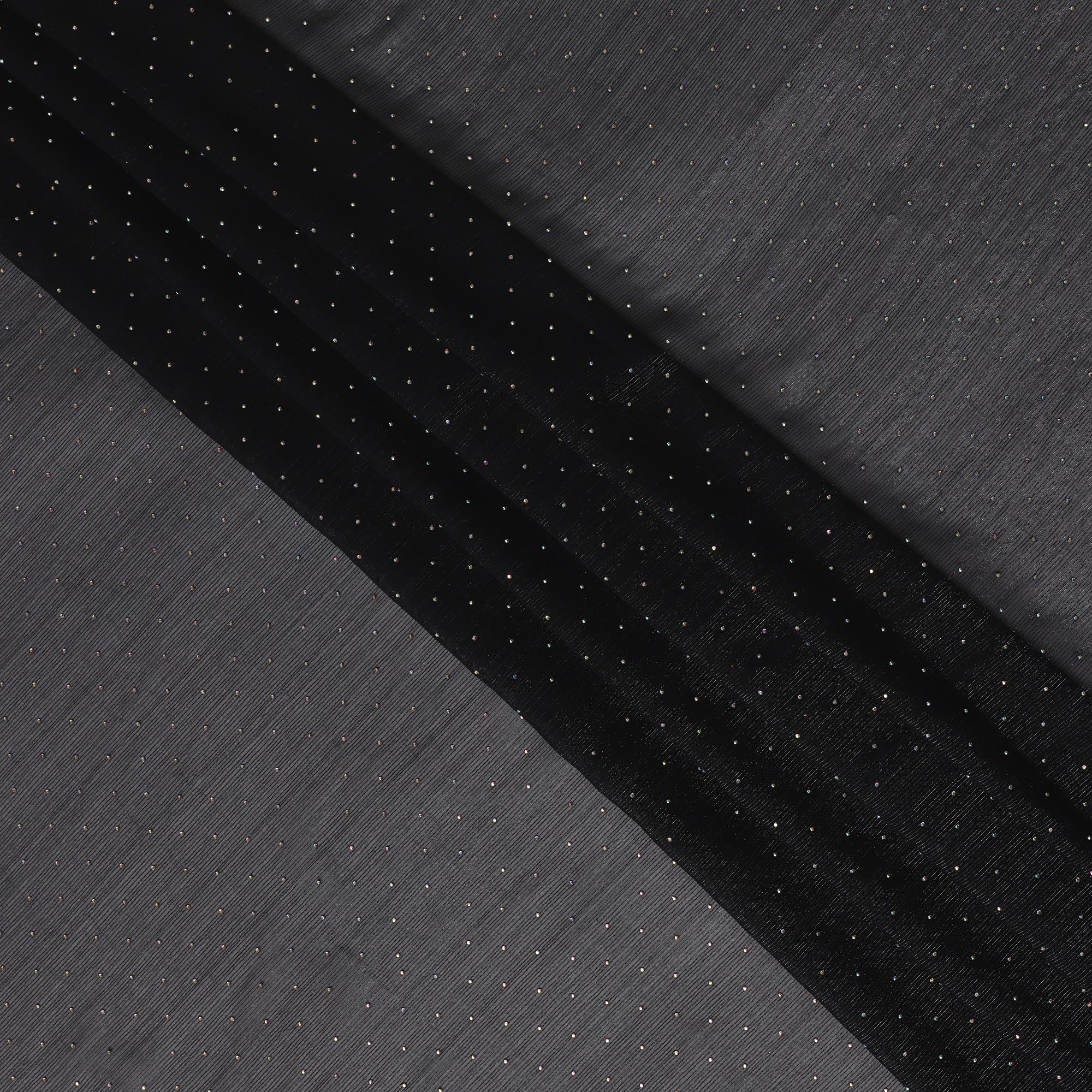 Elegantly crafted in a rich black hue, this Traditional Sudanese Thobe made from premium synthetic chiffon is a timeless expression of cultural grace blended with modern finesse, offering a luxurious drape that enhances every movement with effortless charm. The fabric features fine linear detailing that subtly catches the light, while the scattered multicolored stone work adds a captivating sparkle, creating a refined yet festive appeal perfect for special gatherings, celebrations, and traditional occasions. This 4.5-meter piece is designed to provide ample coverage for versatile draping styles, ensuring a flawless fall with its 110 cm width and lightweight chiffon texture that feels soothing on the skin. Thoughtfully crafted in India, the thobe showcases meticulous stone placement and smooth, breathable fabric that elevates both comfort and style, making it an ideal choice for women looking to buy online premium ethnic wear. Its deep black color exudes sophistication and pairs beautifully with statement jewelry, allowing endless styling possibilities from classic cultural looks to modern festive ensembles. Shop online to experience this blend of artistry and quality, and maintain its lasting beauty with gentle handwashing, ensuring the fabric retains its elegant sheen and stone embellishments for years to come.