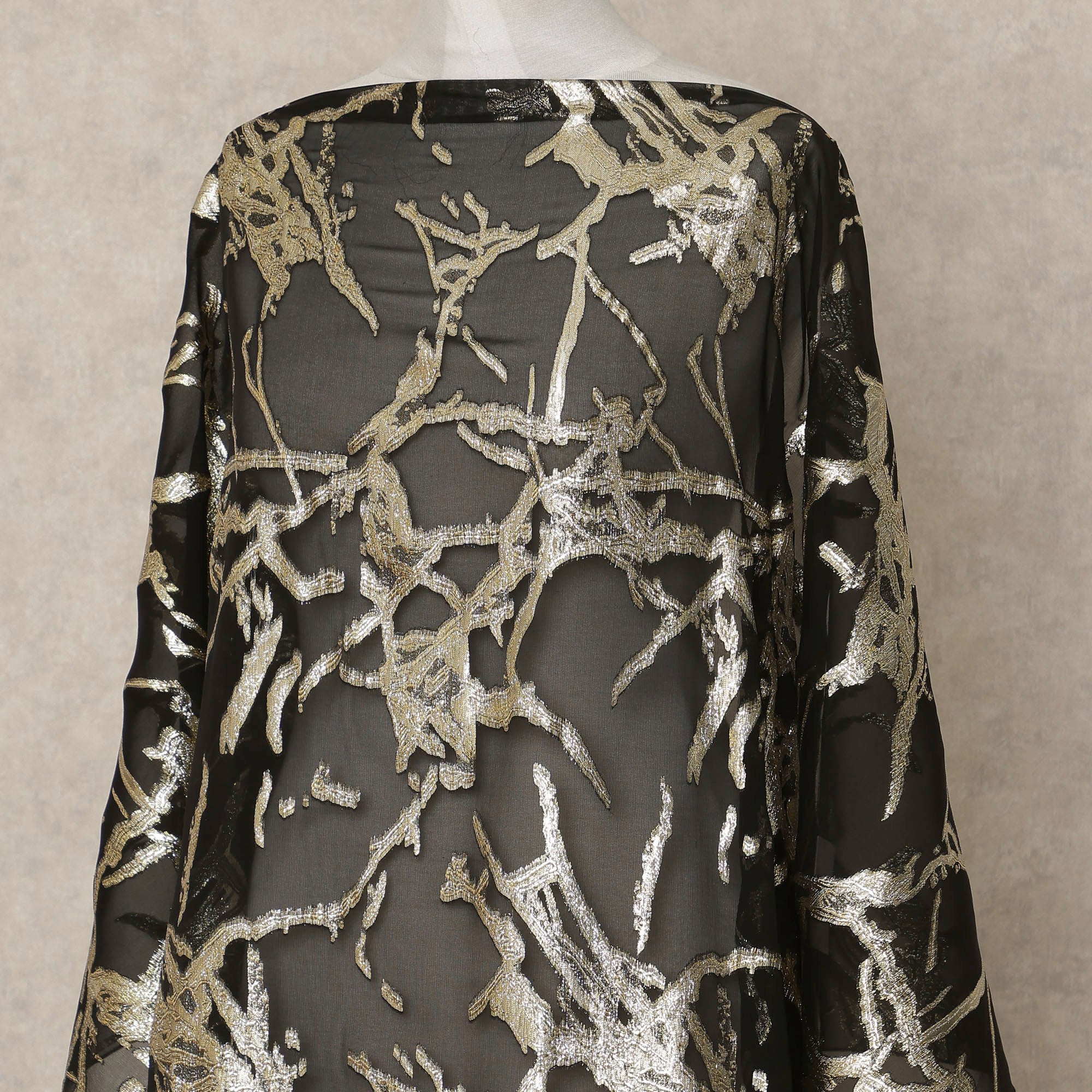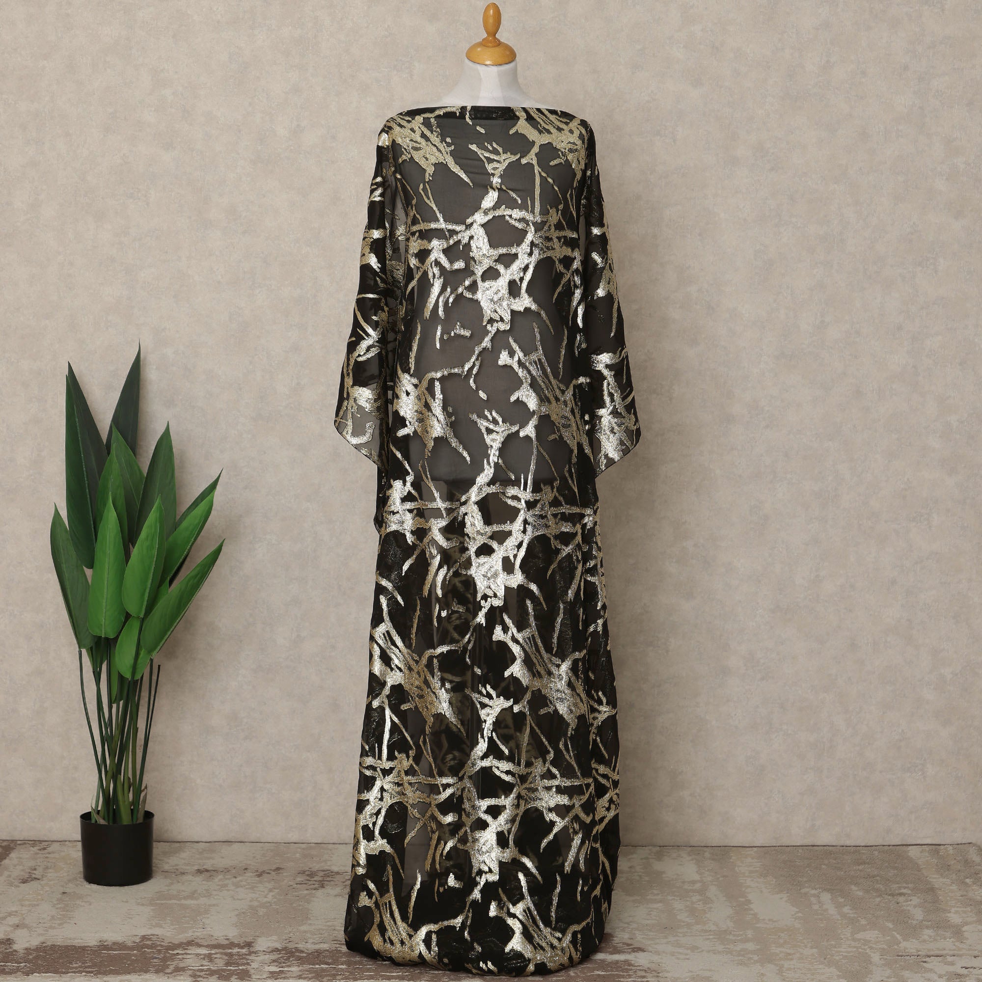 Black Traditional Somali Silk Chiffon Dirac Fabric with Metallic Lurex, 3.5 Mtrs Piece, Width 140 Cms, Made in South Korea-D26483