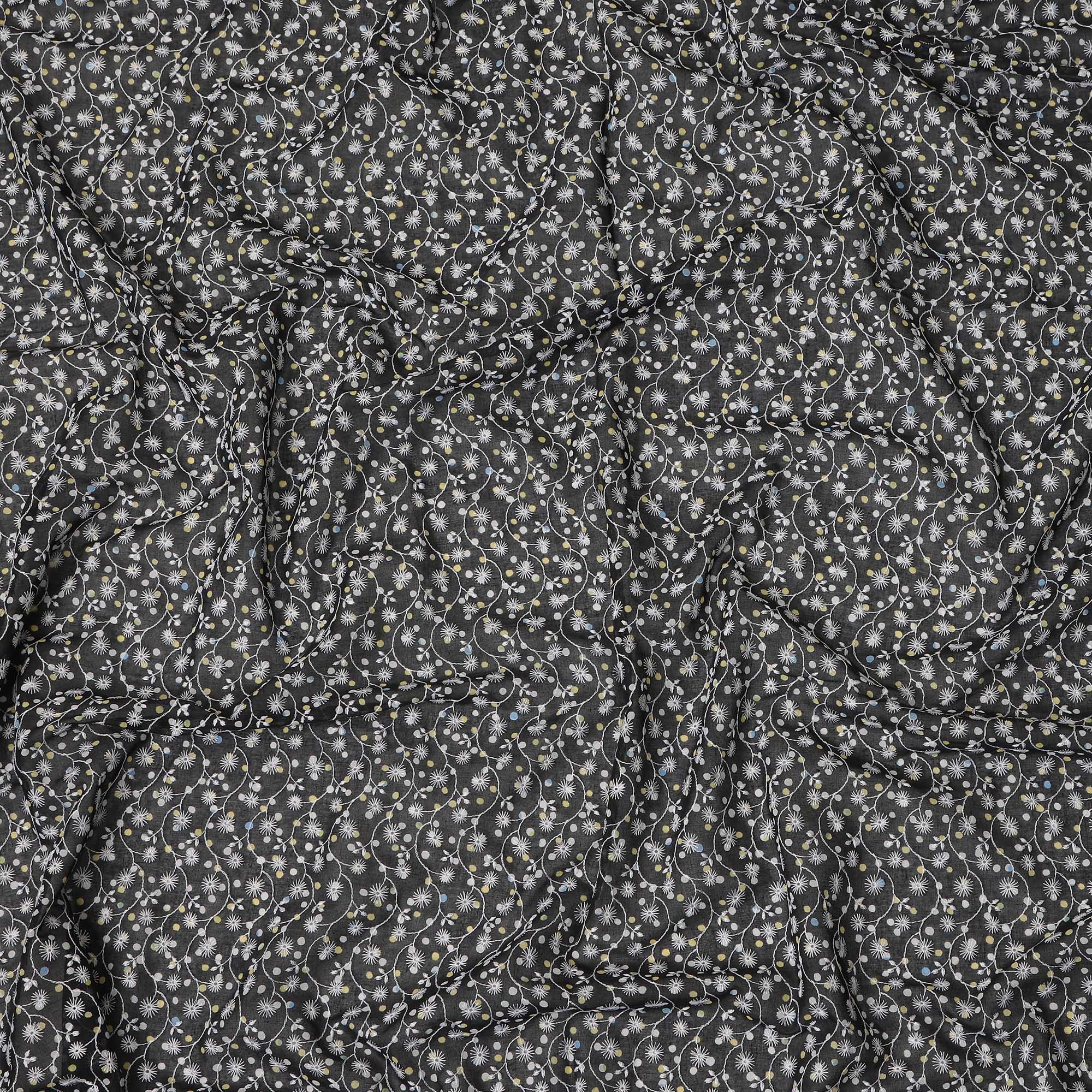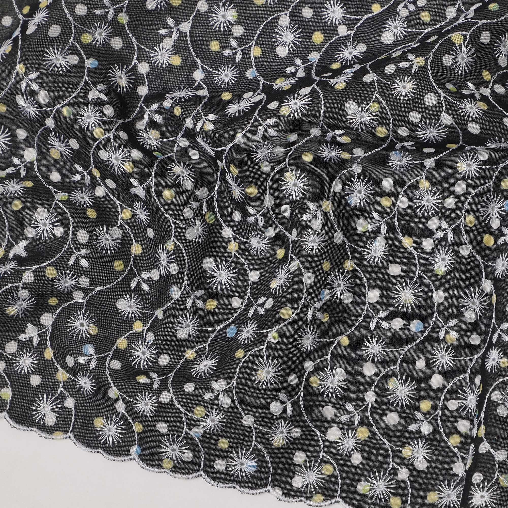Black Traditional Sudanese Thobe Premium Swiss Cotton Voile Embroidery Fabric 4.5 Mtrs Piece, 140 Cms, Switzerland-D27031