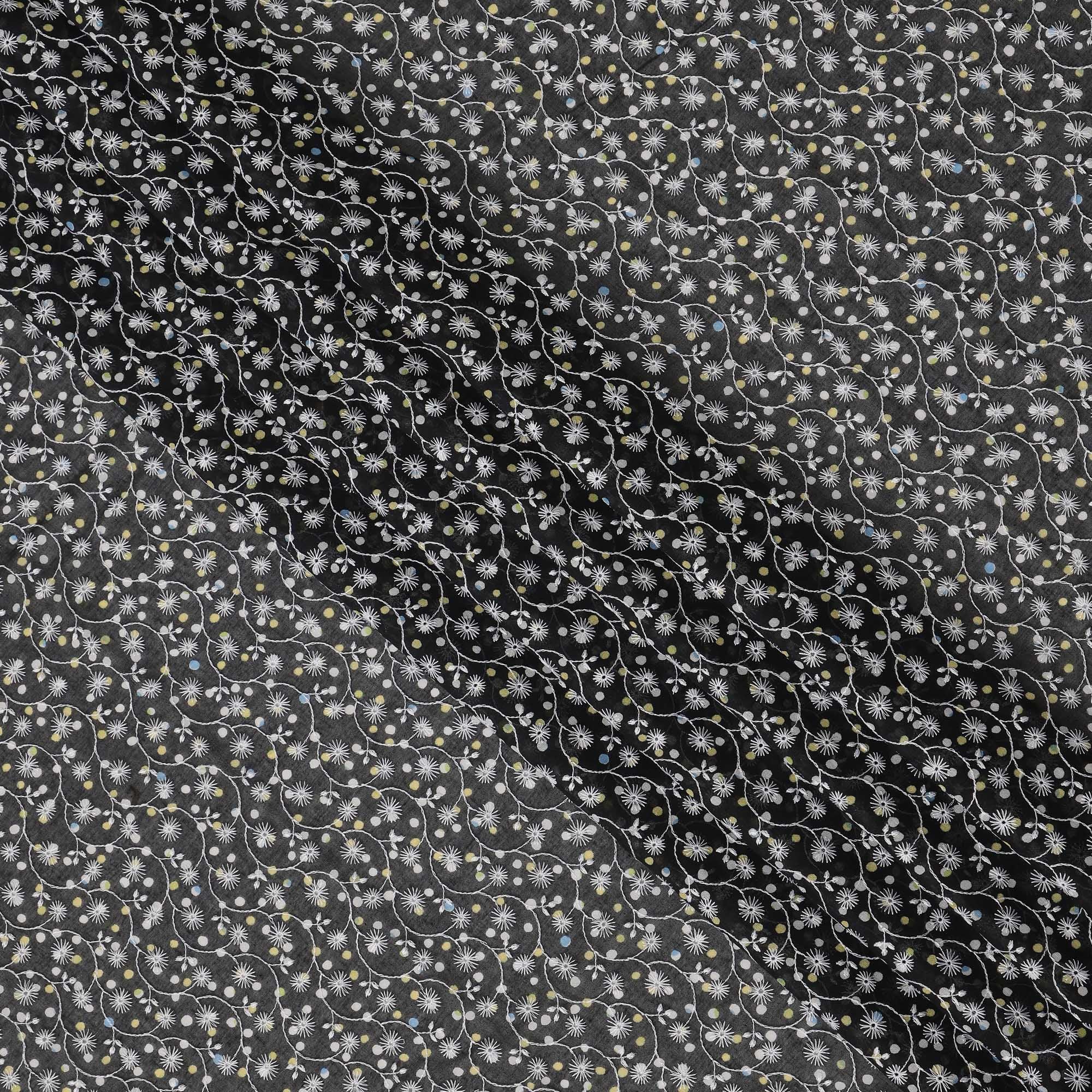 Classic black color with elegant white embroidered floral patterns.
